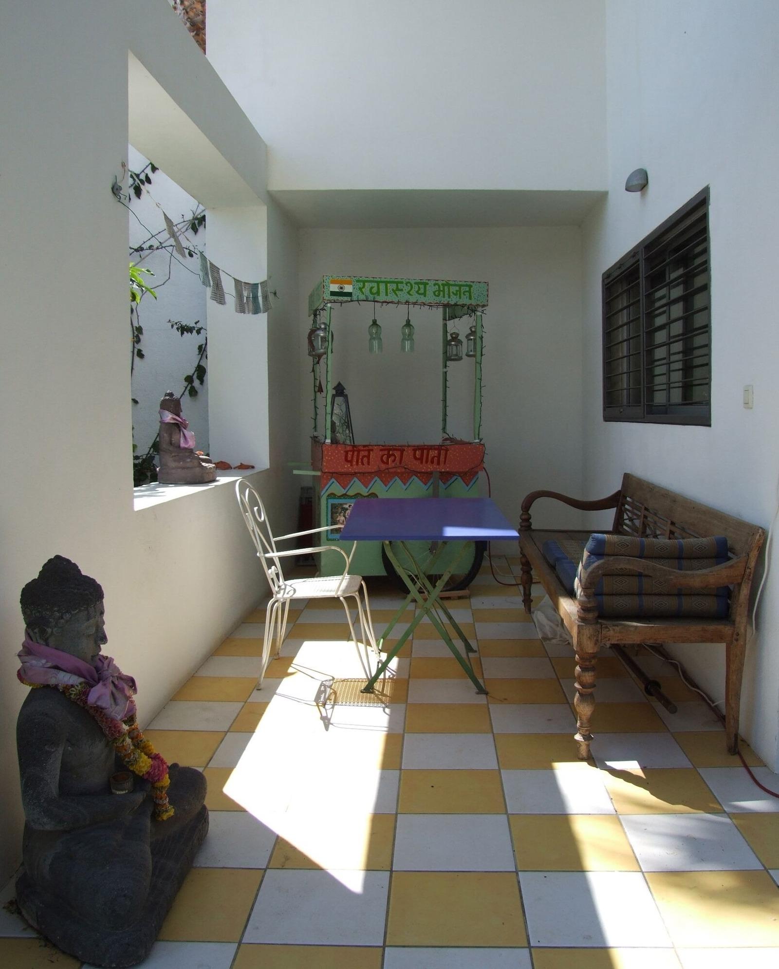 Im Patio steht ein Indischer Imbisswagen, der als Außenküche verwendet werden kann.