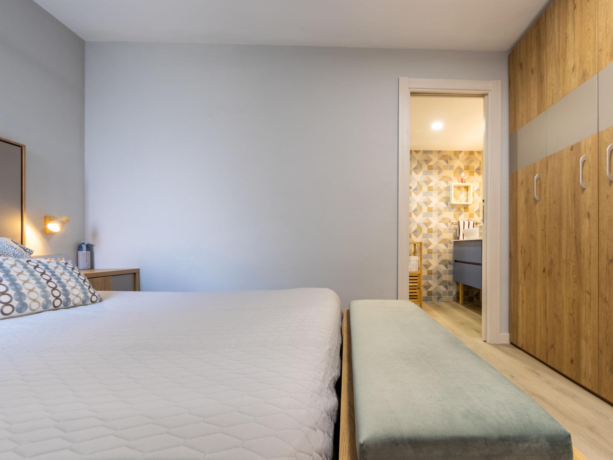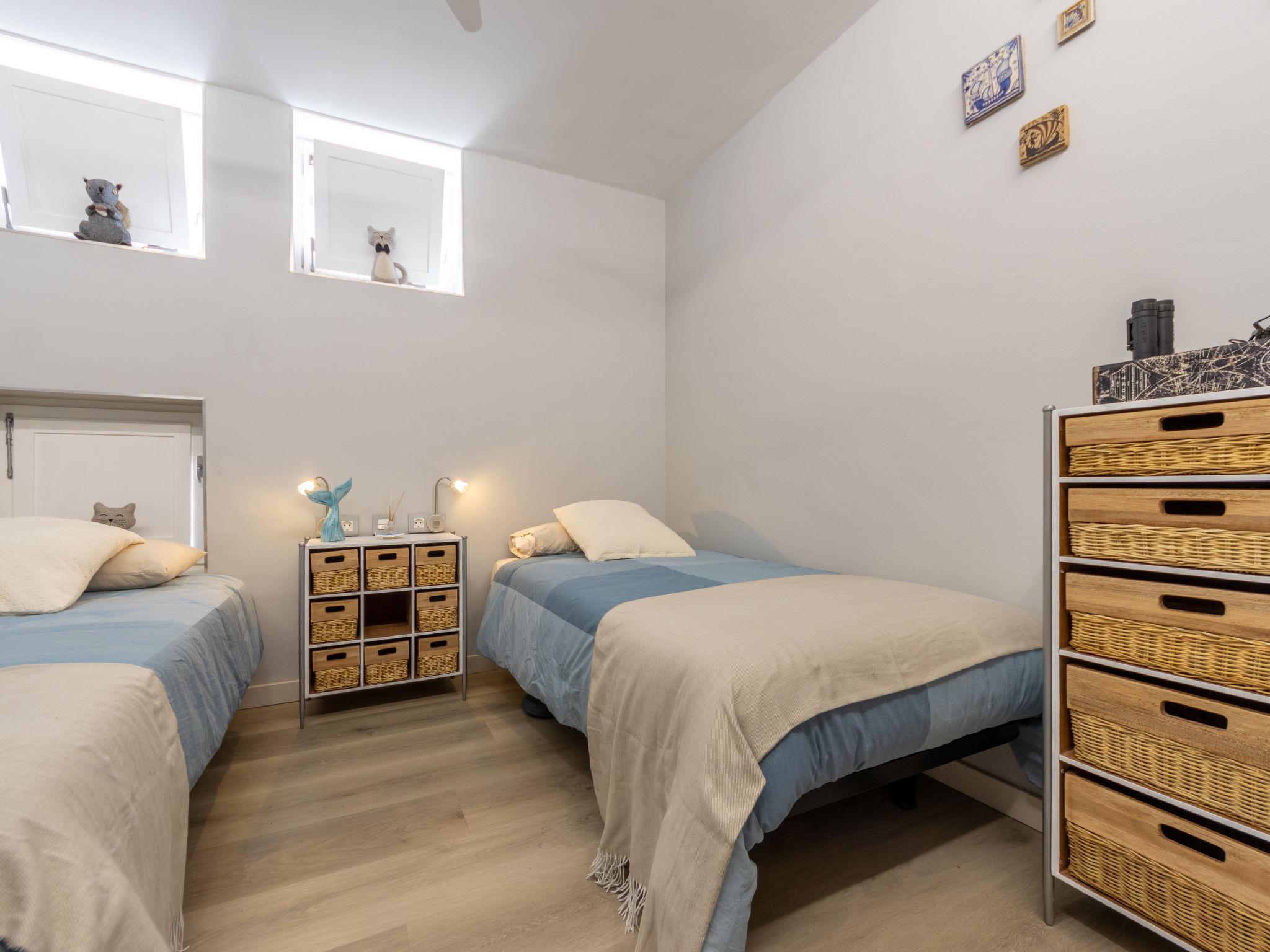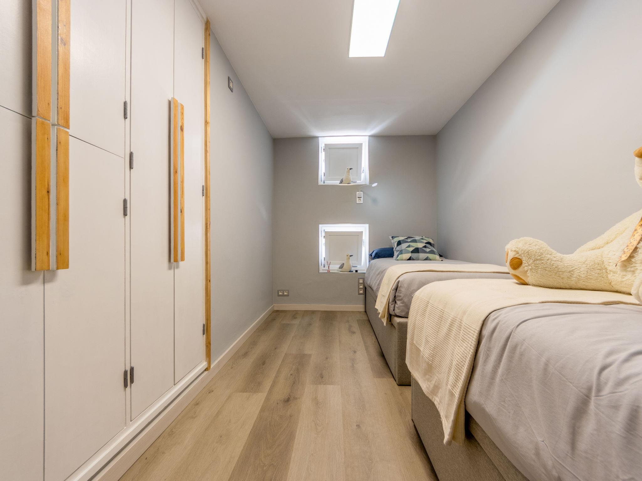 "Ancla Roja", 3-room apartment 119 m2 on 1st floor. Modern and cosy furnishings: living/dining room with sliding door with digital TV and air conditioning. Exit to the terrace, to the loggia. 1 room with 1 french bed (150 cm, length 190 cm), bath/shower and fan. 1 room with 2 beds (90 cm, length 190 cm), fan. 1 room with 2 pull-out beds (4 pers. 2 x 90 cm, length 190 cm). Kitchen (oven, dishwasher, 4 ceramic glass hob hotplates, toaster, kettle, microwave, electric coffee machine, Capsules for coffee machine (Delonghi Nespresso)). Shower/WC. Heating not available in all rooms. Terrace. Terrace furniture, balcony furniture. Very beautiful view of the sea. Facilities: washing machine, iron, hair dryer. Internet (WiFi, free). Suitable for families. HUTT-073166 // Reg. Nr.: ESFCTU00004302400017963900000000000000HUTT-073166-794