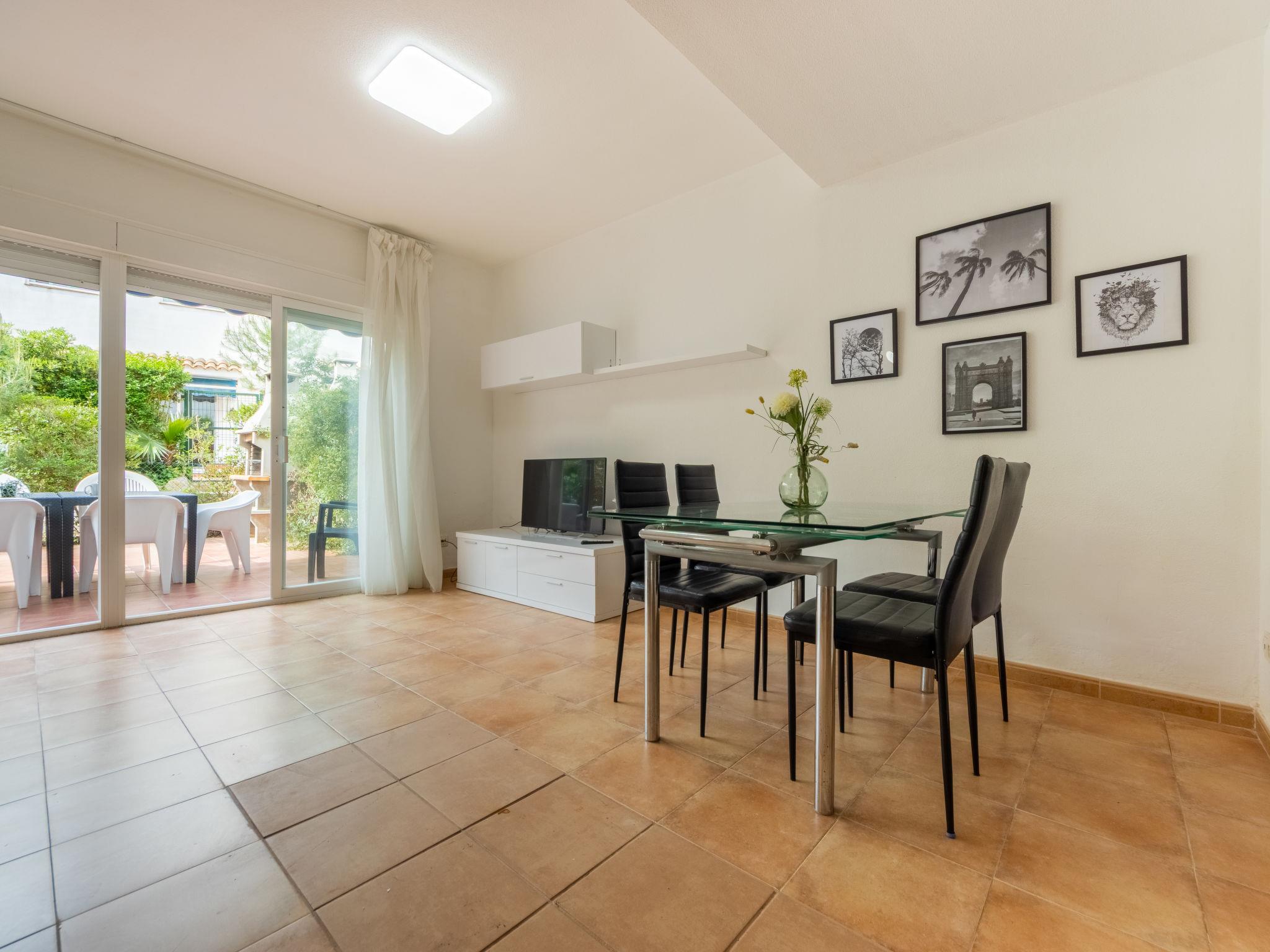 "Zona Estival", 4-room terraced house 120 m2 on 3 levels. Object suitable for 6 adults. Practical furnishings: living/dining room 20 m2 with dining table, digital TV and flat screen. Exit to the terrace. Kitchen (oven, dishwasher, 4 ceramic glass hob hotplates, microwave, freezer). Shower/WC. Heating, air-conditioning. Upper floor: 3 rooms, each room with 2 beds (90 cm). Bath/bidet/WC. Terrace 27 m2. Terrace furniture, barbecue. Facilities: washing machine, iron. Parking space n 82. Please note: non-smoking house. TV only ES. HUTT006505 // Reg. Nr.: ESFCTU000043024000670327000000000000000000HUTT0065051