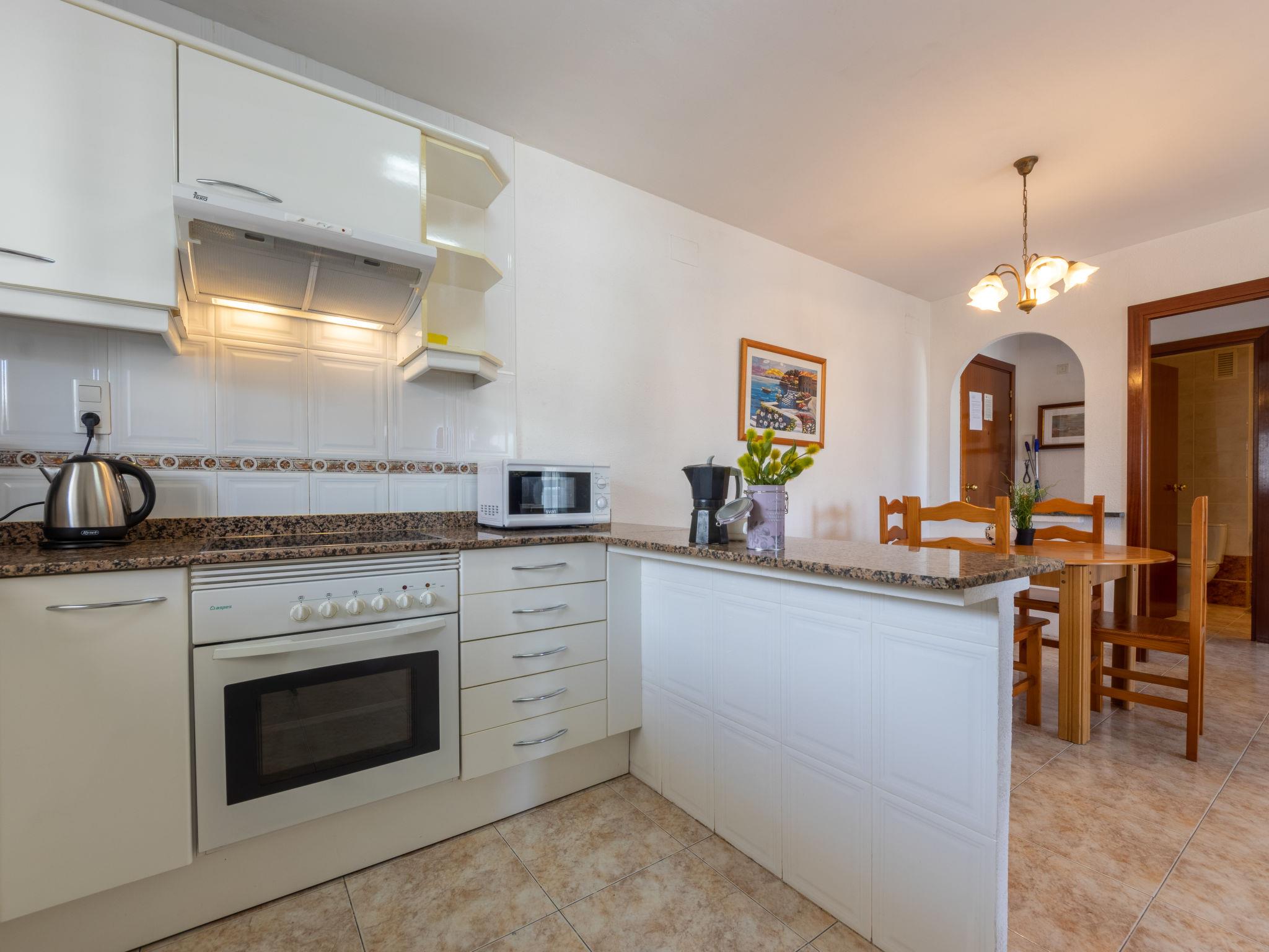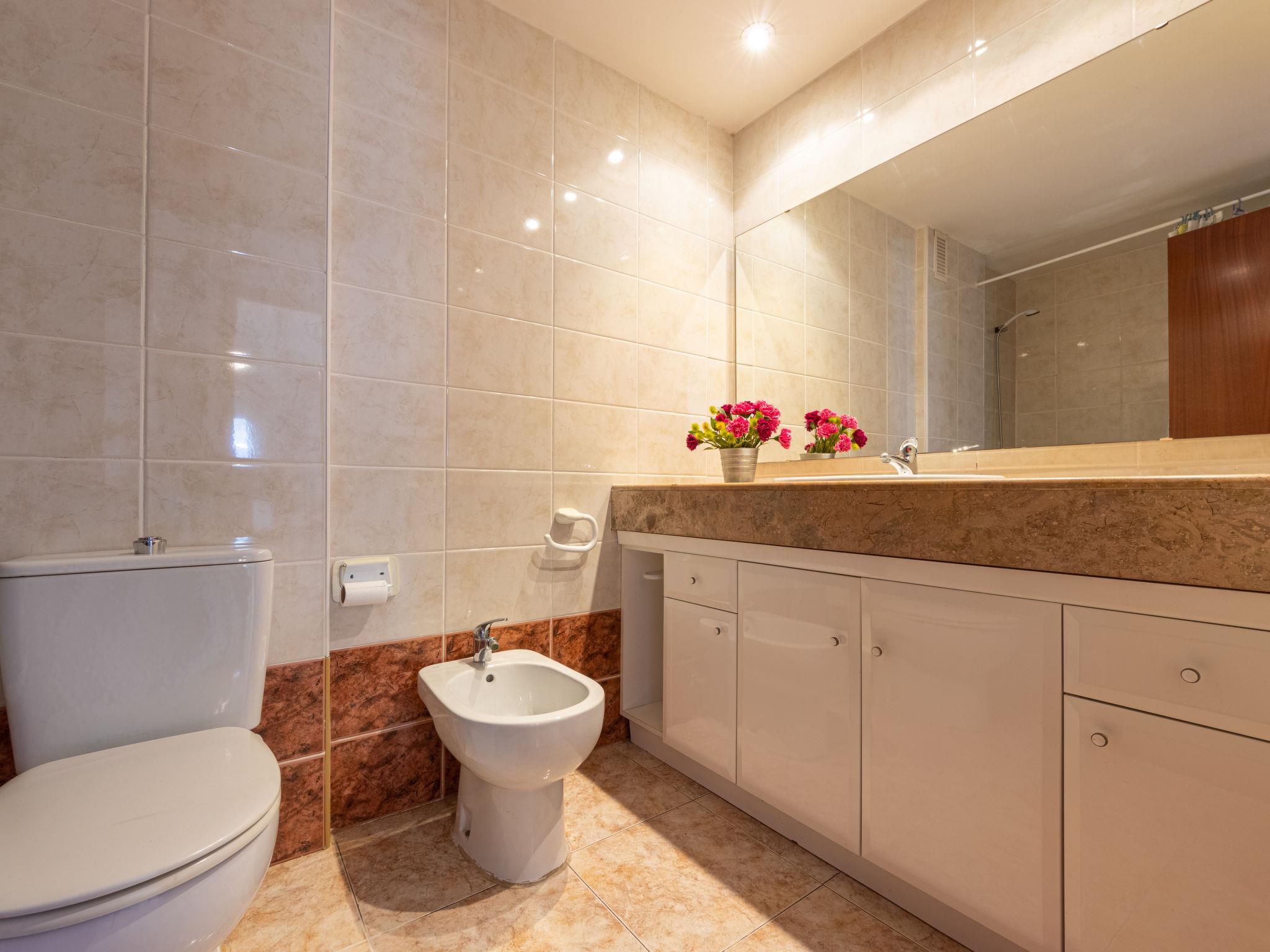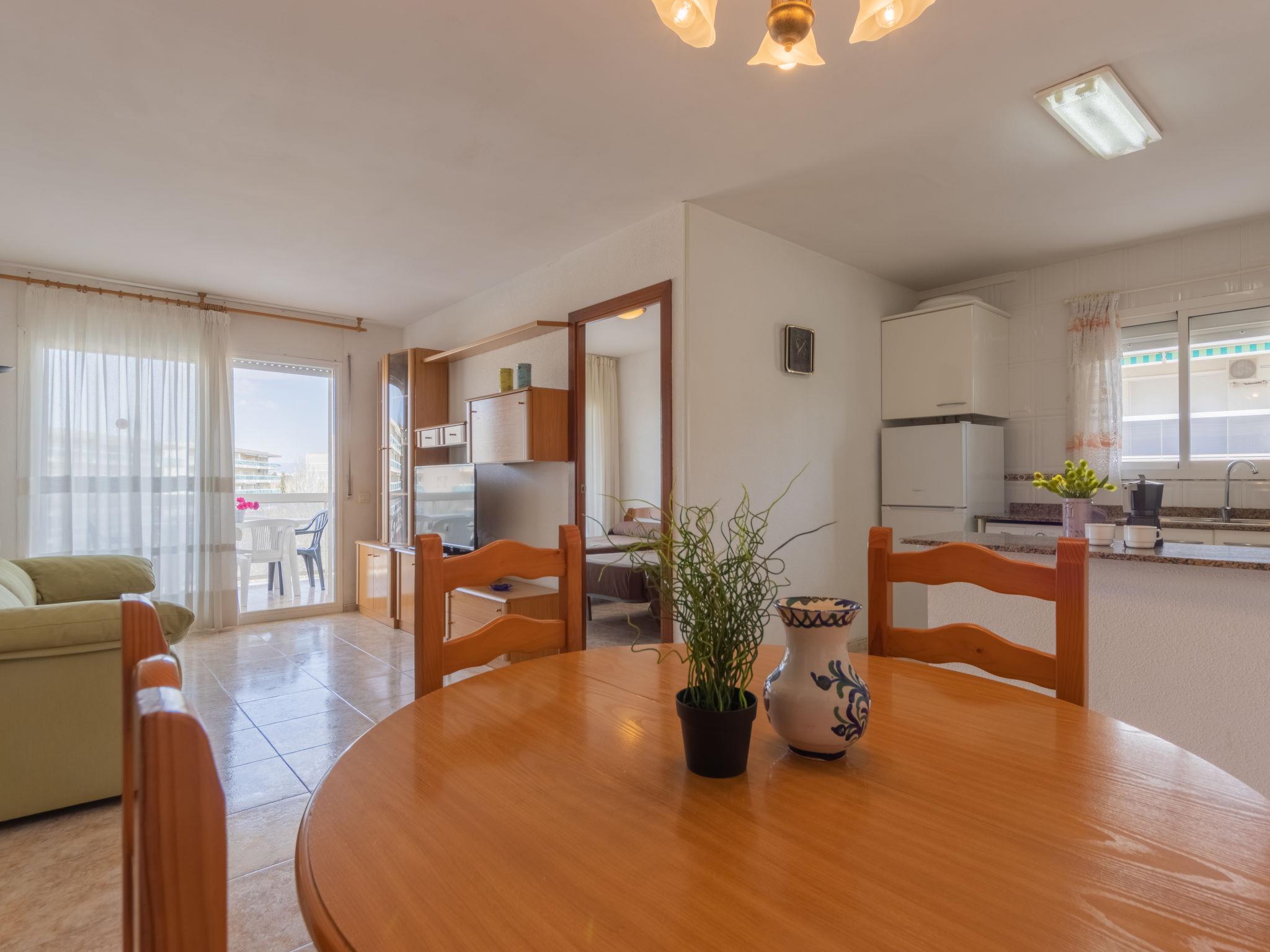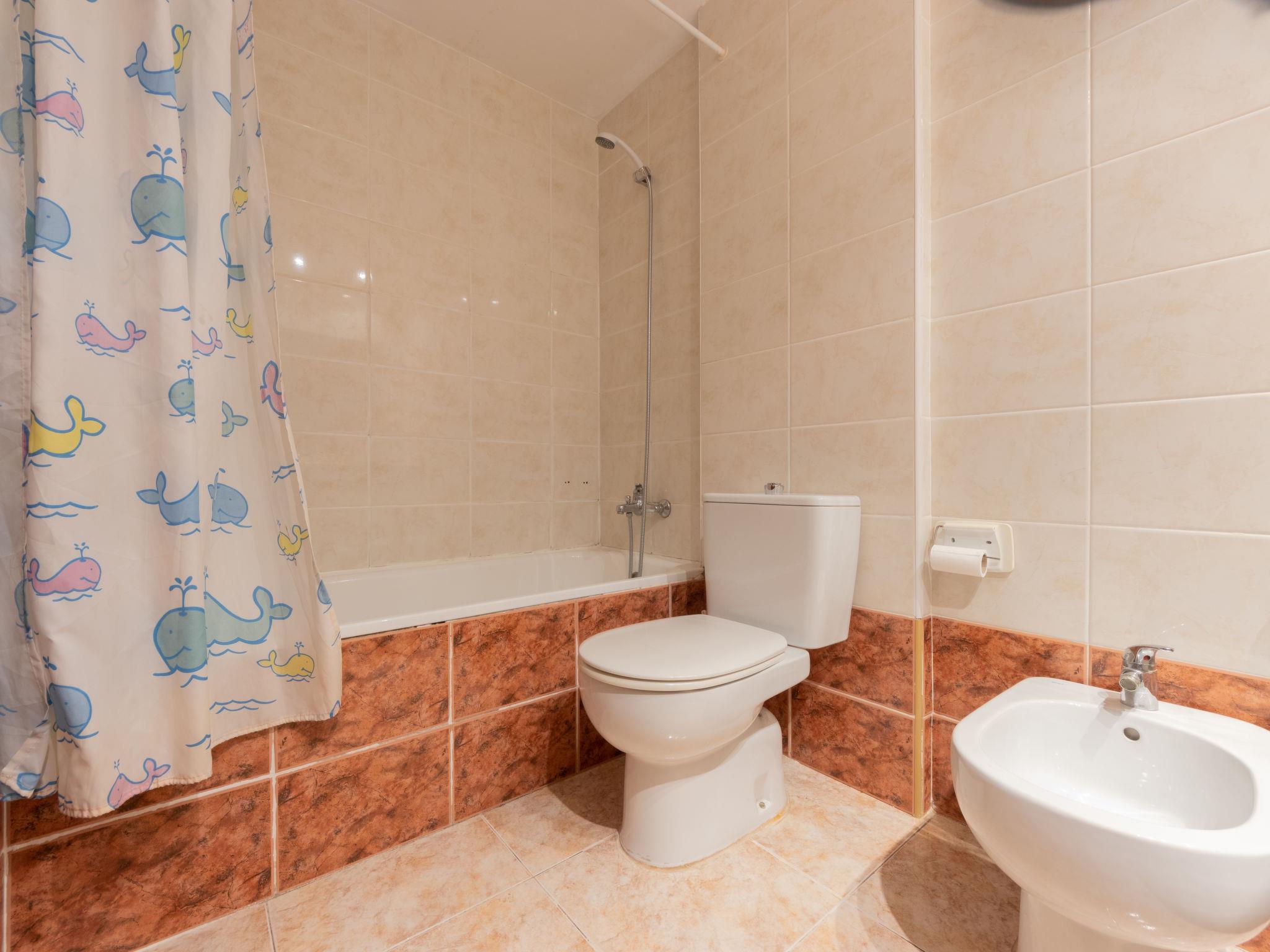 "Living Park", 3-room apartment 65 m2 on 5th floor. Simple and practical furnishings: living/dining room with sliding door with 1 sofabed (135 cm, length 190 cm), digital TV. Exit to the terrace. 1 room with 1 french bed (135 cm, length 190 cm). Exit to the terrace. 1 room with 2 beds (90 cm, length 180 cm). Exit to the terrace. Open kitchen (oven, 4 ceramic glass hob hotplates, toaster, kettle, microwave, electric coffee machine). Bath/WC. No heating option. Large terrace 20 m2. Terrace furniture. View of the resort. Facilities: washing machine, iron, hair dryer. Internet (WiFi, free). Parking space n 276 (roofed) at 50 m. HUTT-001445 // Reg. Nr.: ESFCTU00004302400057183900000000000000000HUTT-0014458