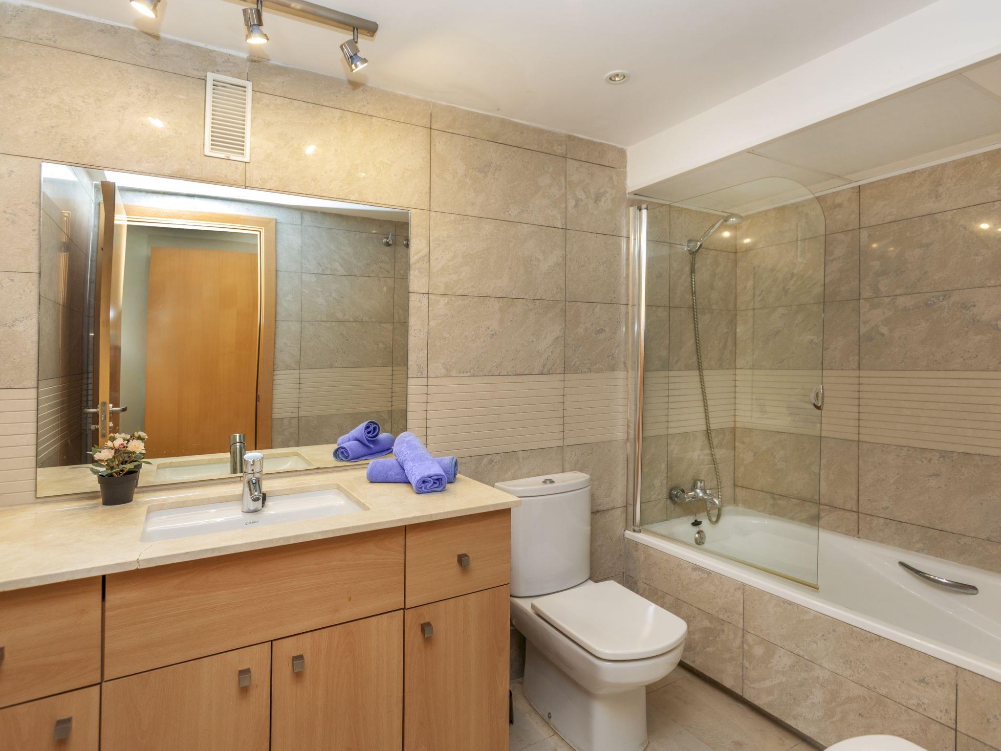 "Aquaria Atico", 4-room penthouse 108 m2 on 4th floor. Spacious and bright, comfortable furnishings: living/dining room with digital TV. Exit to the terrace. 1 room with 1 french bed (150 cm, length 190 cm), bath/bidet/WC. Exit to the terrace. 1 room with 1 pull-out bed (2 pers. 2 x 90 cm, length 190 cm). 1 room with 3 beds (90 cm, length 190 cm). Kitchen (oven, dishwasher, 3 ceramic glass hob hotplates, toaster, kettle, microwave, electric coffee machine). Exit to the terrace. Shower/WC. Air-conditioning, forced-air heating. 2 terraces. Terrace furniture, deck chairs (4). Facilities: washing machine, iron, hair dryer. Internet (WiFi, free). Parking space n 13. Please note: non-smokers only. TV only ES. HUTT-045743 // Reg. Nr.: ESFCTU00004302400083037000000000000000000HUTT-0457437