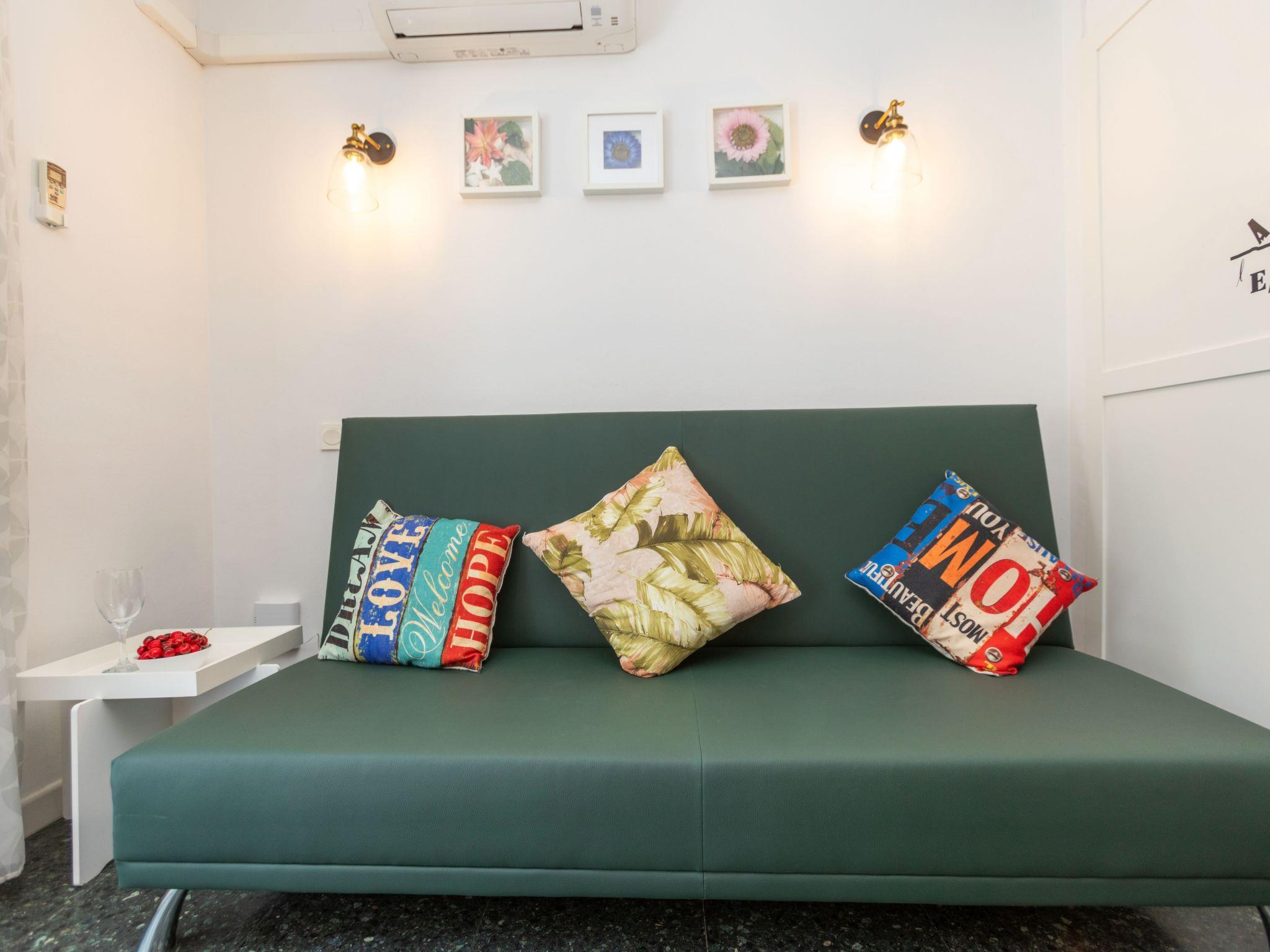 "Alexis", 1-room studio 35 m2. Object suitable for 2 adults + 2 children. Practical and cosy furnishings: living/sleeping room with 2 beds (90 cm, length 190 cm), 1 sofabed (150 cm, length 190 cm), digital TV and flat screen. Kitchen (2 ceramic glass hob hotplates, kettle, microwave, electric coffee machine). Shower/WC. Electric heating, air-conditioning, boiler (50 litres). Small terrace. Terrace furniture. Side view of the sea. Facilities: washing machine, iron, hair dryer. Internet (WiFi, free). Please note: non-smokers only. HUTT-004344 // Reg. Nr.: ESFCTU00004302400020928200000000000000000HUTT-0043441