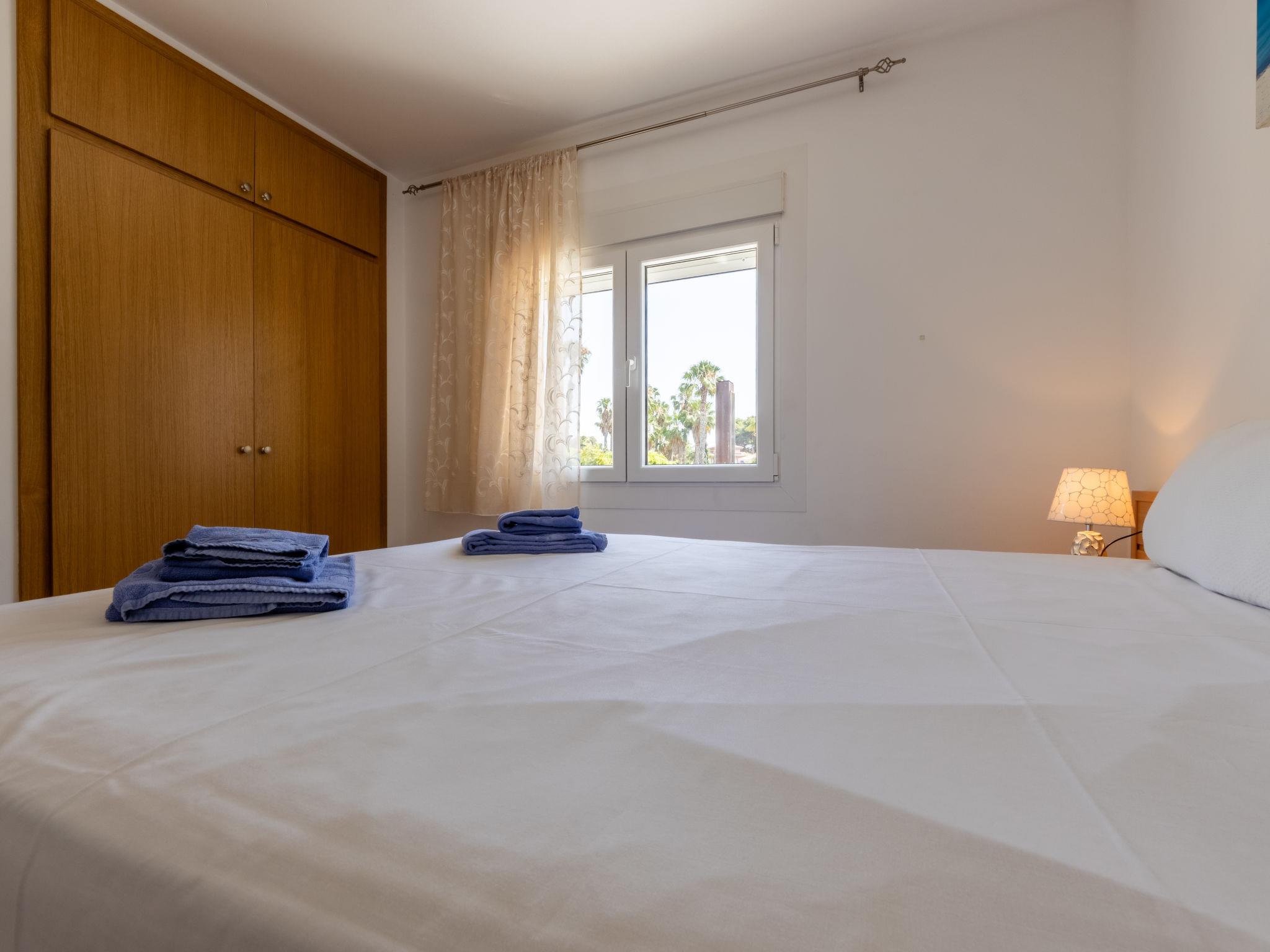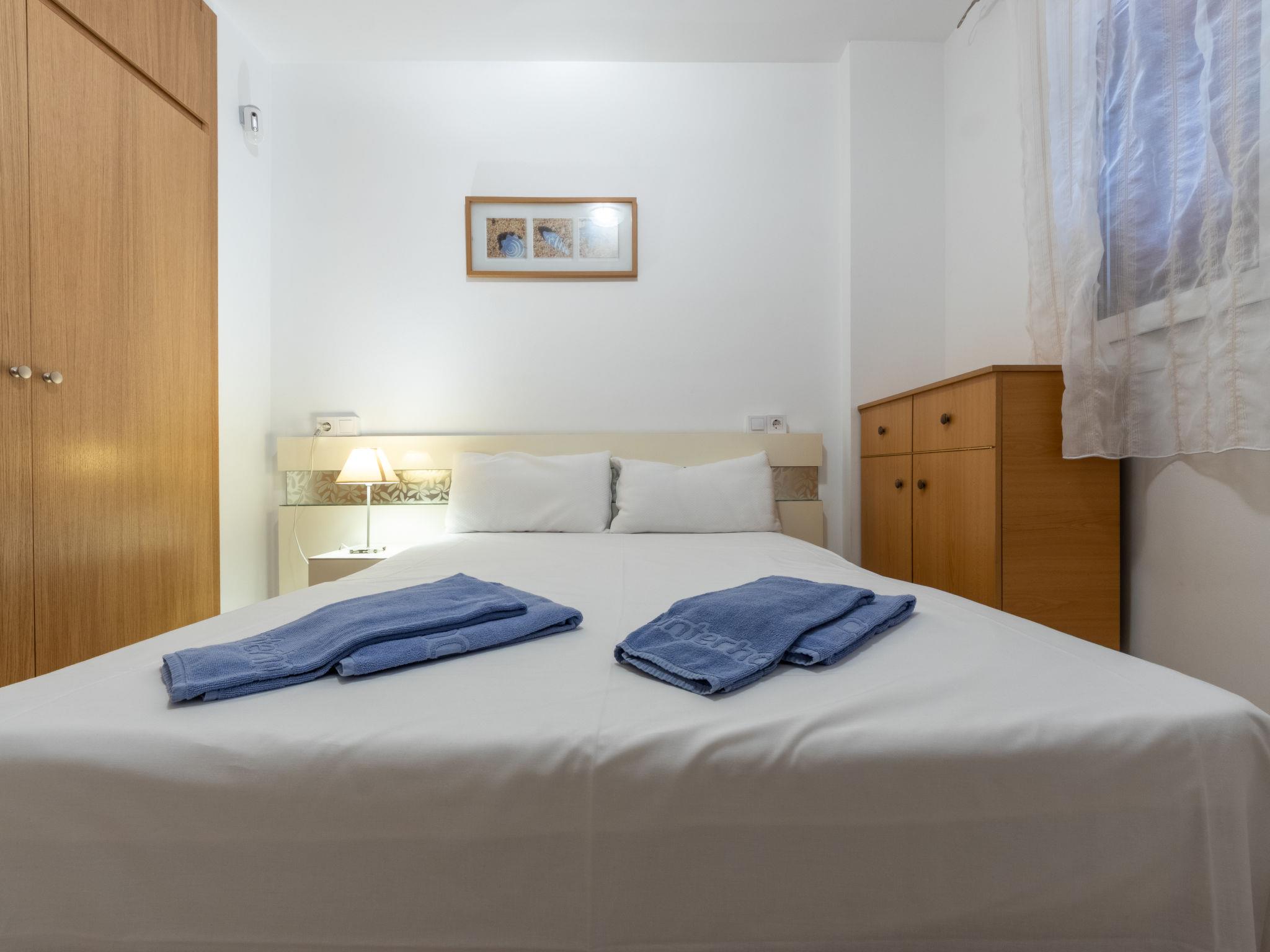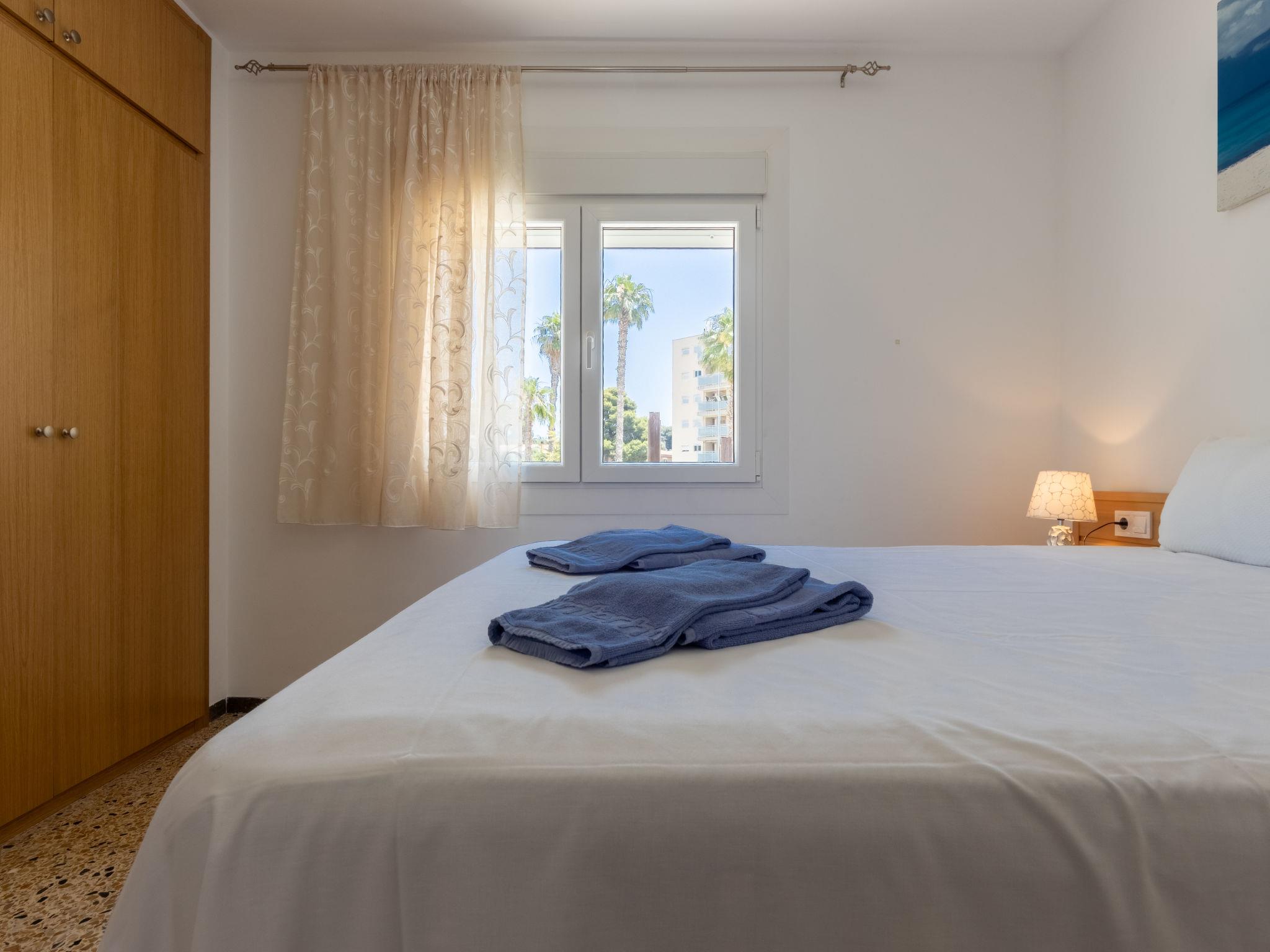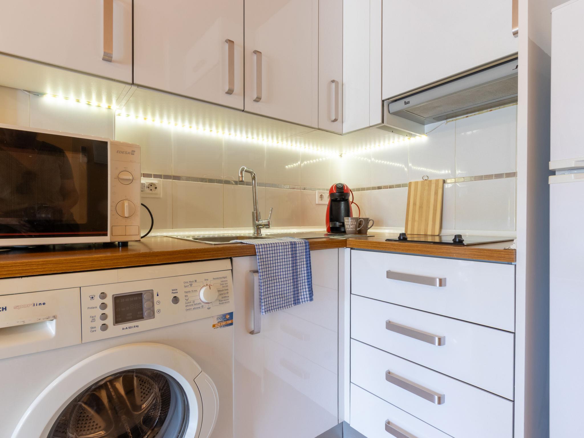 "California 2", 3-room apartment 50 m2. Practical furnishings: living/dining room with digital TV and air conditioning. Exit to the balcony. 1 room with 1 french bed (150 cm, length 190 cm). 1 room with 1 french bed (135 cm, length 190 cm). Open kitchen (2 ceramic glass hob hotplates, toaster, kettle, microwave, electric coffee machine, Capsules for coffee machine (Dolce Gusto) extra). Shower/bidet/WC. Forced-air heating, boiler (50 litres). Heating not available in all rooms. Balcony. Balcony furniture. View of the town. Facilities: washing machine, iron, hair dryer. Please note: non-smokers only. TV only ES. HUTT-033355 // Reg. Nr.: ESFCTU0000430240002693850000000000000000HUTT-33355397