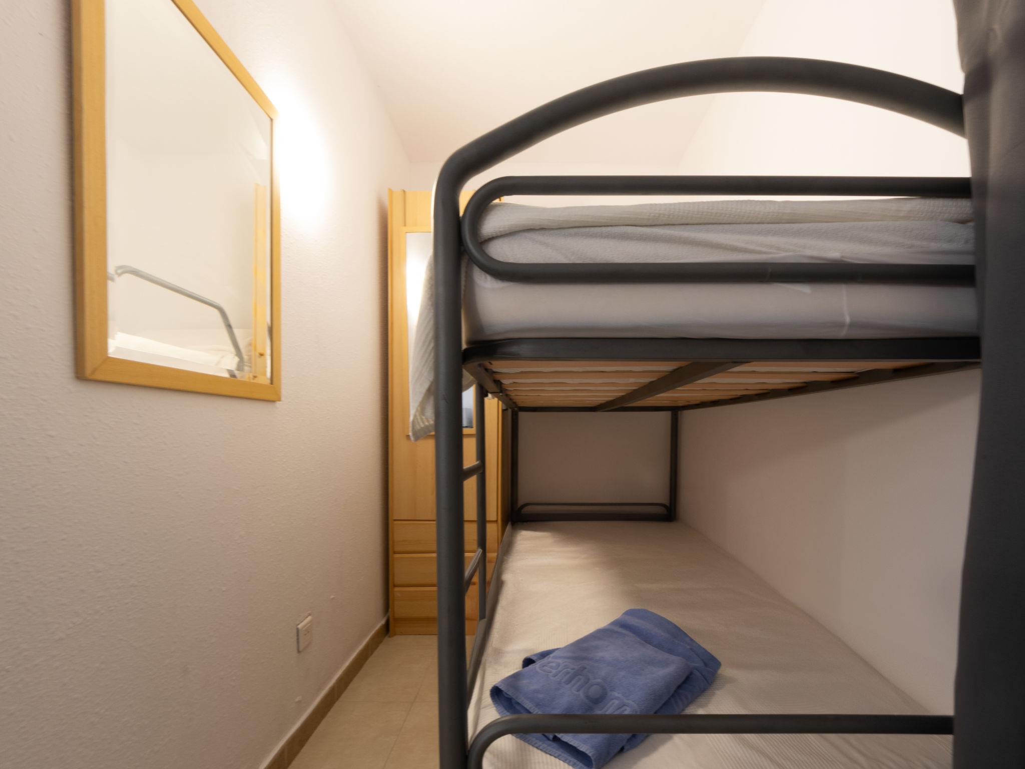 "Catalunya 92", 3-room apartment 40 m2 on 4th floor. Object suitable for 2 adults + 2 children. Fully renovated in 2025, cosy furnishings: living/dining room with digital TV. 1 room with 1 french bed (150 cm, length 190 cm). Exit to the terrace. 1 room with 1 x 2 bunk beds (90 cm, length 190 cm). Open kitchen (oven, 2 ceramic glass hob hotplates, toaster, kettle, microwave, electric coffee machine) with boiler (80 litres). Bath/shower. Air-conditioning, forced-air heating, boiler (80 litres). Terrace furniture. View of the swimming pool. Facilities: washing machine. Internet (WiFi, free). Please note: non-smokers only. TV only ES. HUTT-005999 // Reg. Nr.: ESFCTU00004302400037854400000000000000HUTT-005999-708