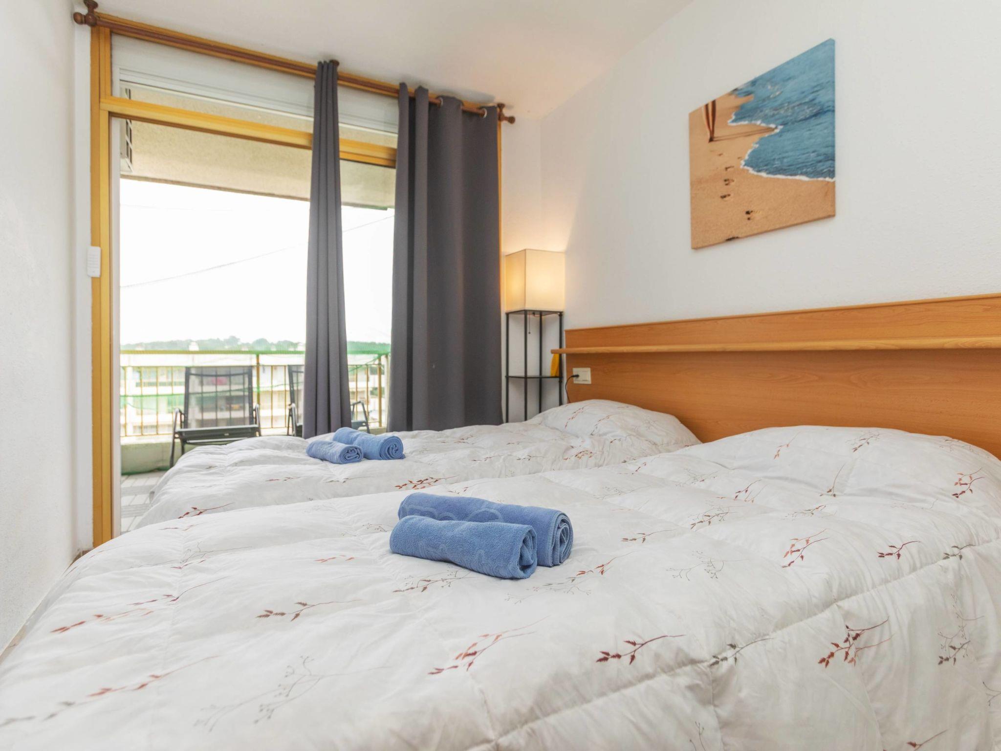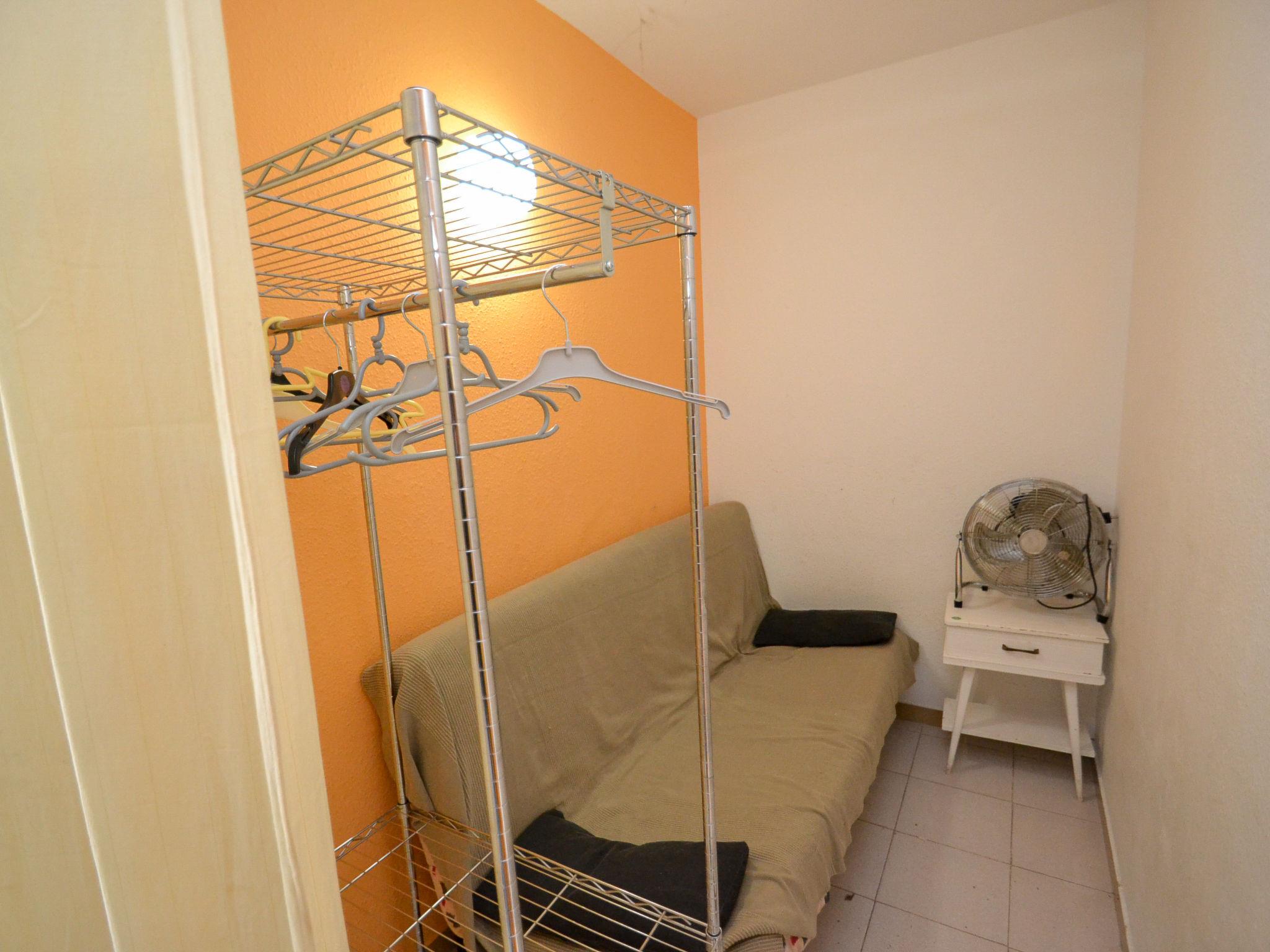 2-room apartment 42 m2 on 5th floor. Practical furnishings: living/dining room with 1 sofabed (130 cm, length 190 cm), digital TV, international TV channels, air conditioning, forced-air heating and electric shutters. Exit to the terrace. 1 room with 2 beds (90 cm, length 190 cm), boiler (50 litres), electric shutters. Exit to the terrace. 1 room, without window with 1 double sofabed (130 cm, length 190 cm). Kitchenette (2 hot plates, toaster, kettle, microwave, electric coffee machine, Capsules for coffee machine (Krups Dolce Gusto)). Shower/WC. Heating, air-conditioning. Heating not available in all rooms. Carpet. Terrace. Terrace furniture, deck chairs (2). View of the swimming pool. Facilities: washing machine, iron, hair dryer. Internet (WiFi, free). Parking space n 4 (roofed). HUTT-008398 // Reg. Nr.: ESFCTU00004302400041430300000000000000000HUTT-0083982