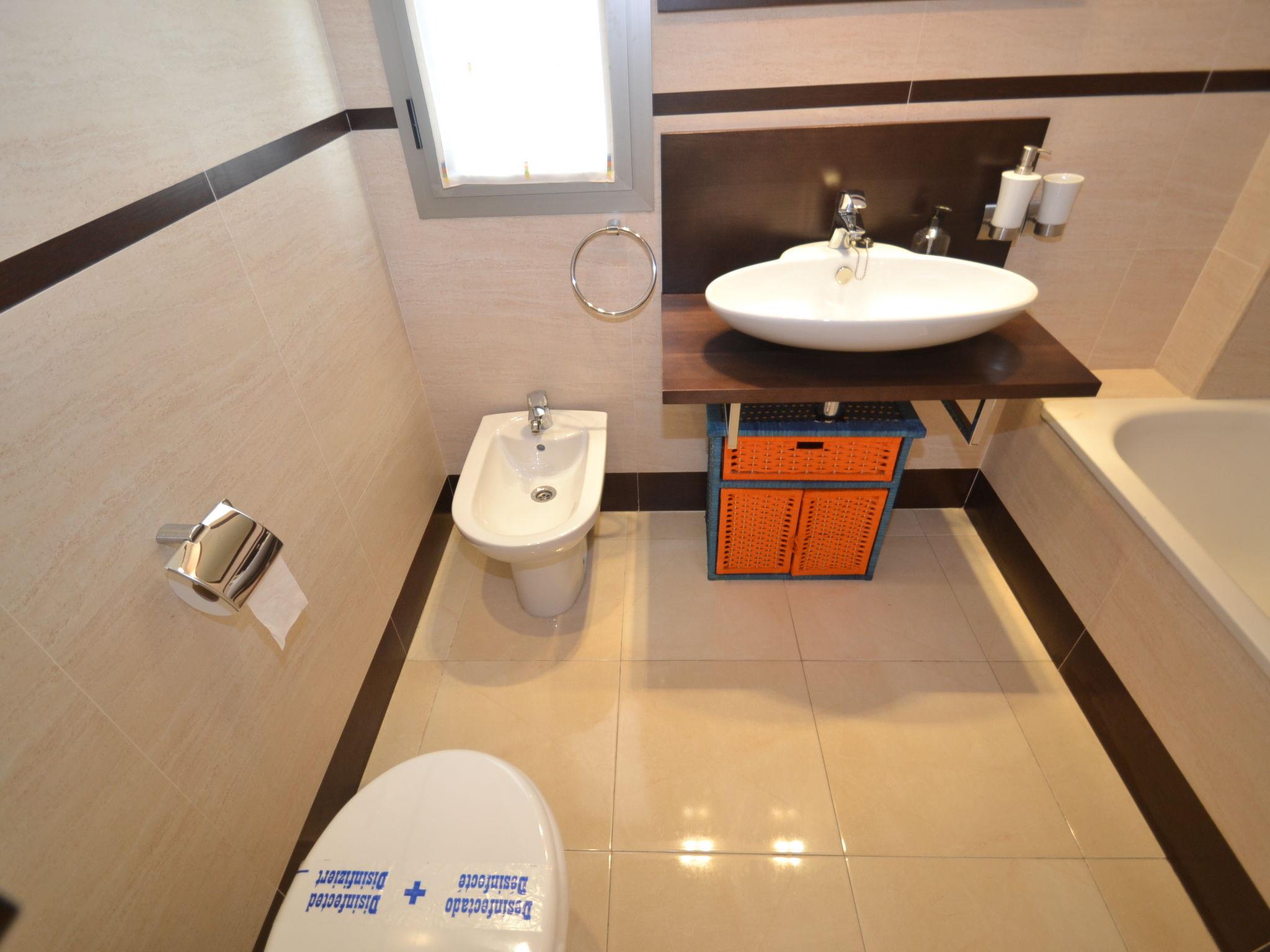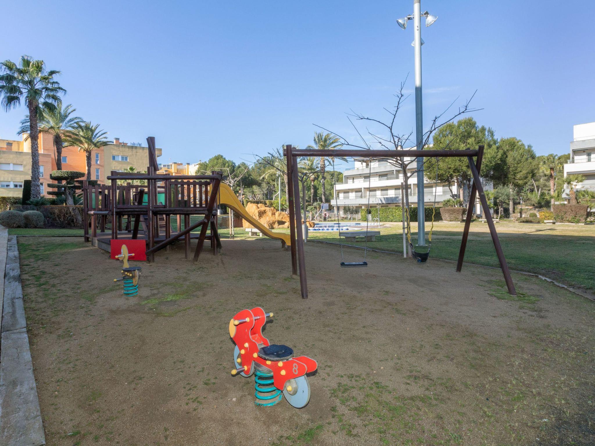Very modern, beautiful resort "Tramontana". In the resort Cap Salou, in a quiet, sunny position, 300 m from the sea, 300 m from the beach. For shared use: property (fenced), beautiful, well-kept garden with lawn, 2 swimming pools (10 x 10 m, depth 100 - 160 cm, seasonal availability: 01.Jun. - 30.Sep.). Children's pool, outdoor shower, tennis, children's playground. In the house: lift. Shop, grocery 600 m, supermarket 300 m, shopping centre 12 km, restaurant, bar 200 m, bakery 600 m, café 200 m, bicycle rental 300 m, pub garden 200 m, bus stop "Bus La Plana parada El Raco" 250 m, railway station "Estación Camp Tarragona" 25 km. Sports harbour 3 km, marina 3 km, golf course (18 hole) 6 km, surf school 500 m, sailing school 3 km, riding stable 8 km. Nearby attractions: Port Aventura 2 km, Aquopolis 2 km, Aquum Spa 2 km. Hiking paths: La Mussara 35 km. The owner does not accept any youth groups. Neighbourhood highly sensitive to noise. Quietness and good behaviour expected.