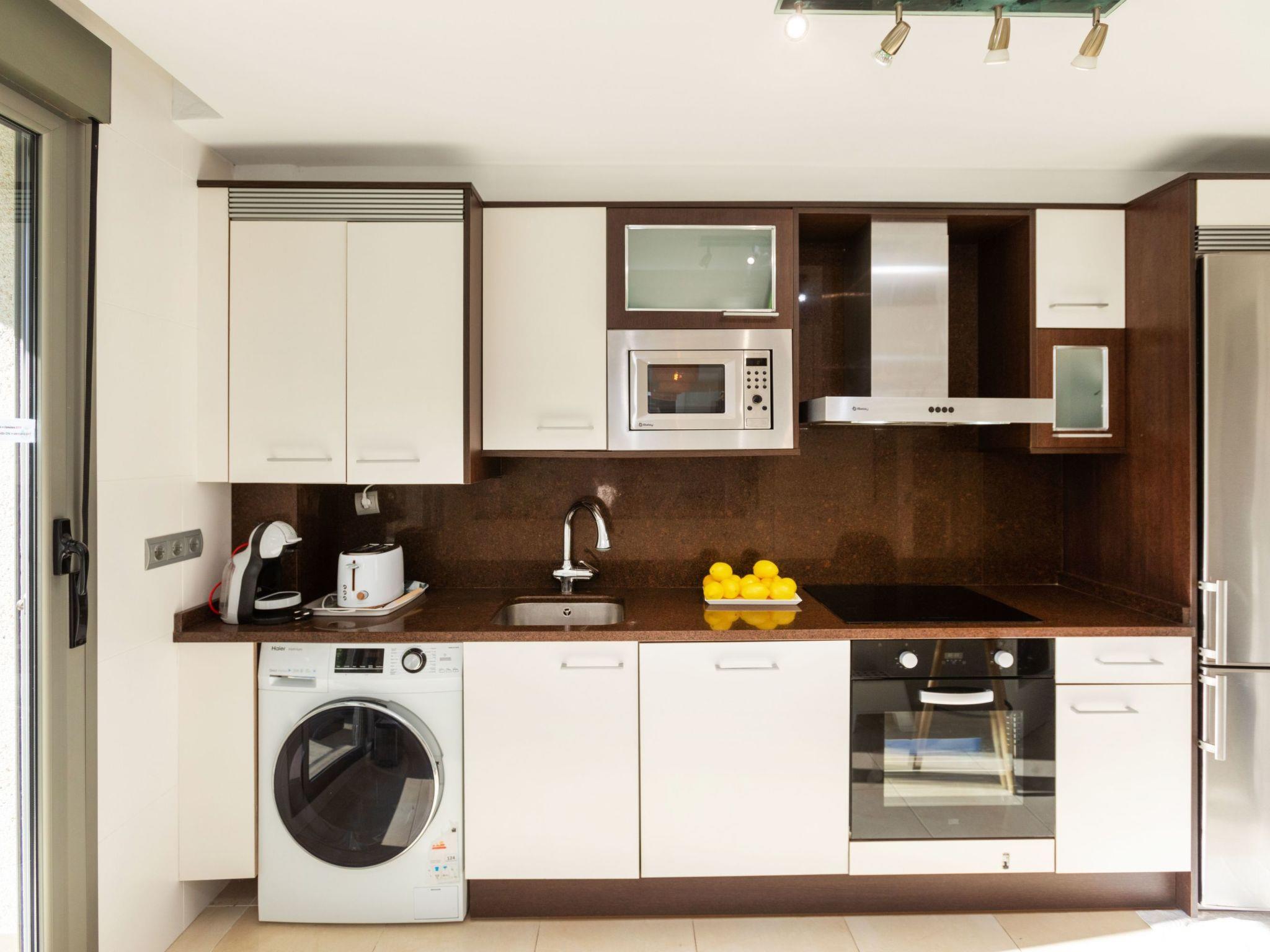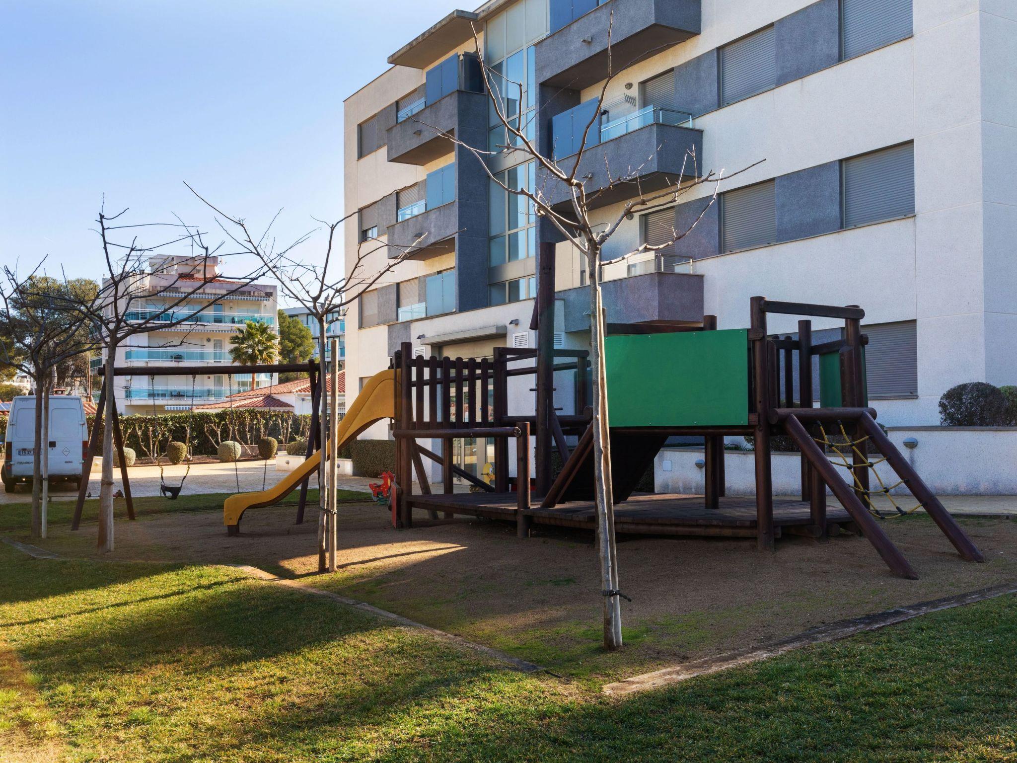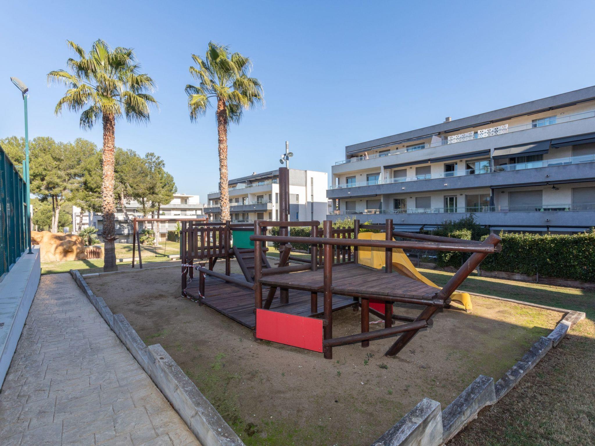 Very modern, beautiful resort "Tramontana". In the resort Cap Salou, in a quiet, sunny position, 300 m from the sea, 300 m from the beach. For shared use: property (fenced), beautiful, well-kept garden with lawn, 2 swimming pools (10 x 10 m, depth 100 - 160 cm, seasonal availability: 01.Jun. - 30.Sep.). Children's pool, outdoor shower, tennis, children's playground. In the house: lift. Shop, grocery 600 m, supermarket 300 m, shopping centre 12 km, restaurant, bar 200 m, bakery 600 m, café 200 m, bicycle rental 300 m, pub garden 200 m, bus stop "Bus La Plana parada El Raco" 250 m, railway station "Estación Camp Tarragona" 25 km. Sports harbour 3 km, marina 3 km, golf course (18 hole) 6 km, surf school 500 m, sailing school 3 km, riding stable 8 km. Nearby attractions: Port Aventura 2 km, Aquopolis 2 km, Aquum Spa 2 km. Hiking paths: La Mussara 35 km. The owner does not accept any youth groups. Neighbourhood highly sensitive to noise. Quietness and good behaviour expected.