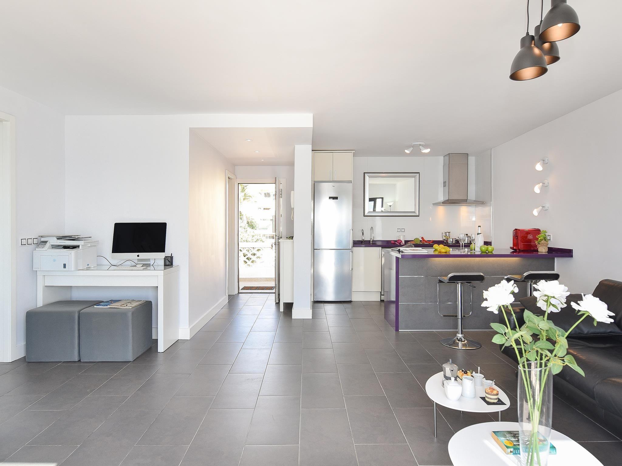 2-room apartment 60 m2, on the upper floor. Comfortable and cosy furnishings: living room with dining nook, satellite TV, cable TV, digital TV and air conditioning. Exit to the balcony. 1 room with 1 french bed and air conditioning. Open kitchen (oven, dishwasher, 3 ceramic glass hob hotplates, toaster, kettle, microwave, freezer, electric coffee machine). Shower/WC, sep. WC. Small balcony. Marvellous view of the sea. Facilities: washing machine, safe, iron, children's high chair, baby cot for up to 2 year olds, hair dryer. Internet (WiFi, free). Please note: non-smokers only. 2021-T6528 // Reg. Nr.: ESFCTU0000350120005022130000000000000VV-35-1-00161343