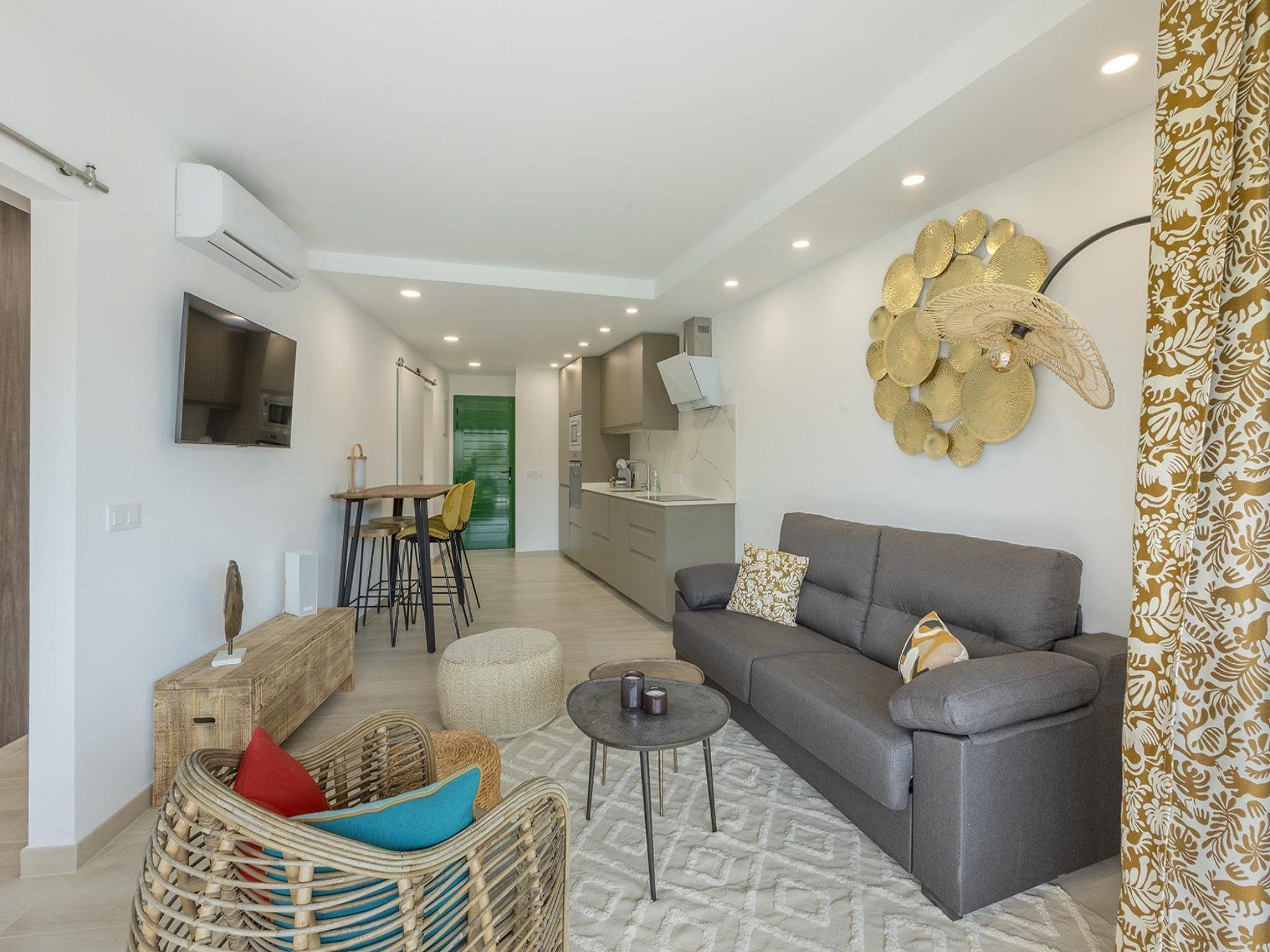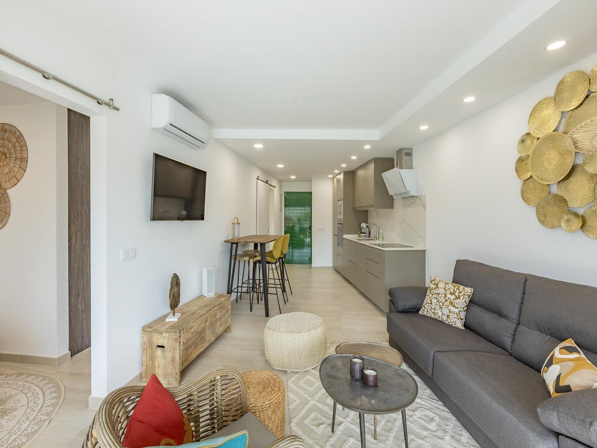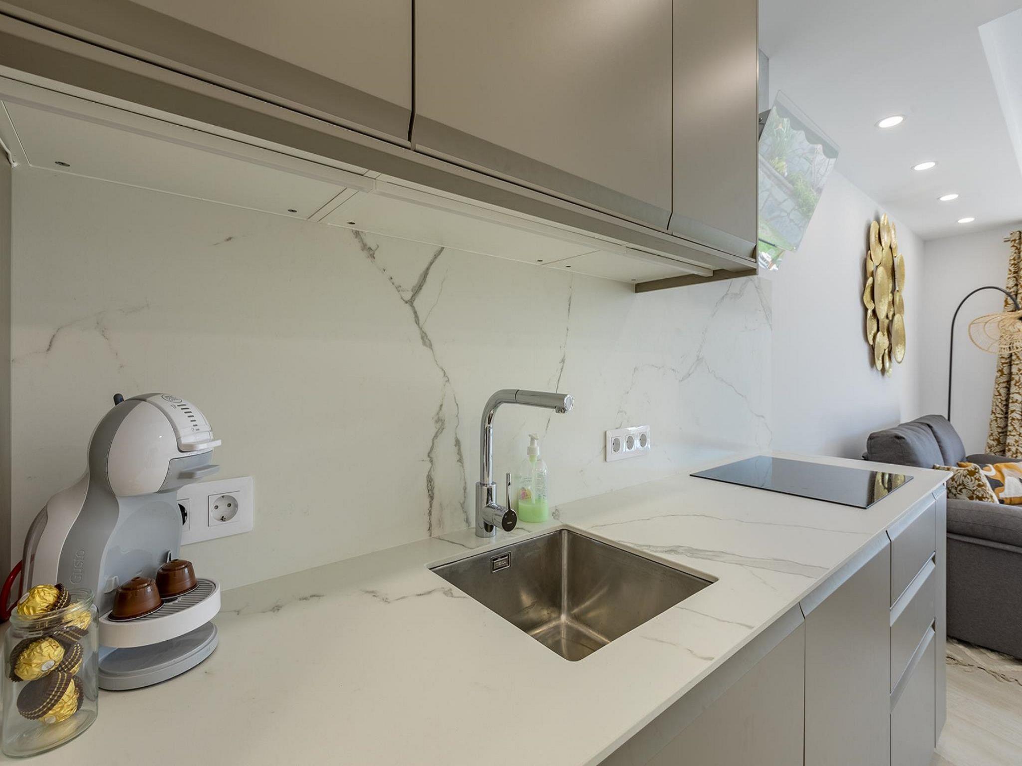"Aquarius 4", 2-room apartment 65 m2. Object suitable for 2 adults. Bright, modern and luxurious furnishings: open living room with 1 sofabed, TV, flat screen and air conditioning. Exit to the patio. 1 room with 1 french bed and air conditioning. Open kitchen (oven, dishwasher, 4 ceramic glass hob hotplates, toaster, kettle, microwave, freezer, electric coffee machine). Shower, 2 bidets, bath/WC or shower/WC. Natural stone floors. Small terrace. View of the swimming pool and the garden. Facilities: washing machine, dryer, safe, iron, children's high chair, baby cot for up to 2 year olds. Internet (WiFi). Please note: suitable for families. Non-smokers only. 2024-T1282