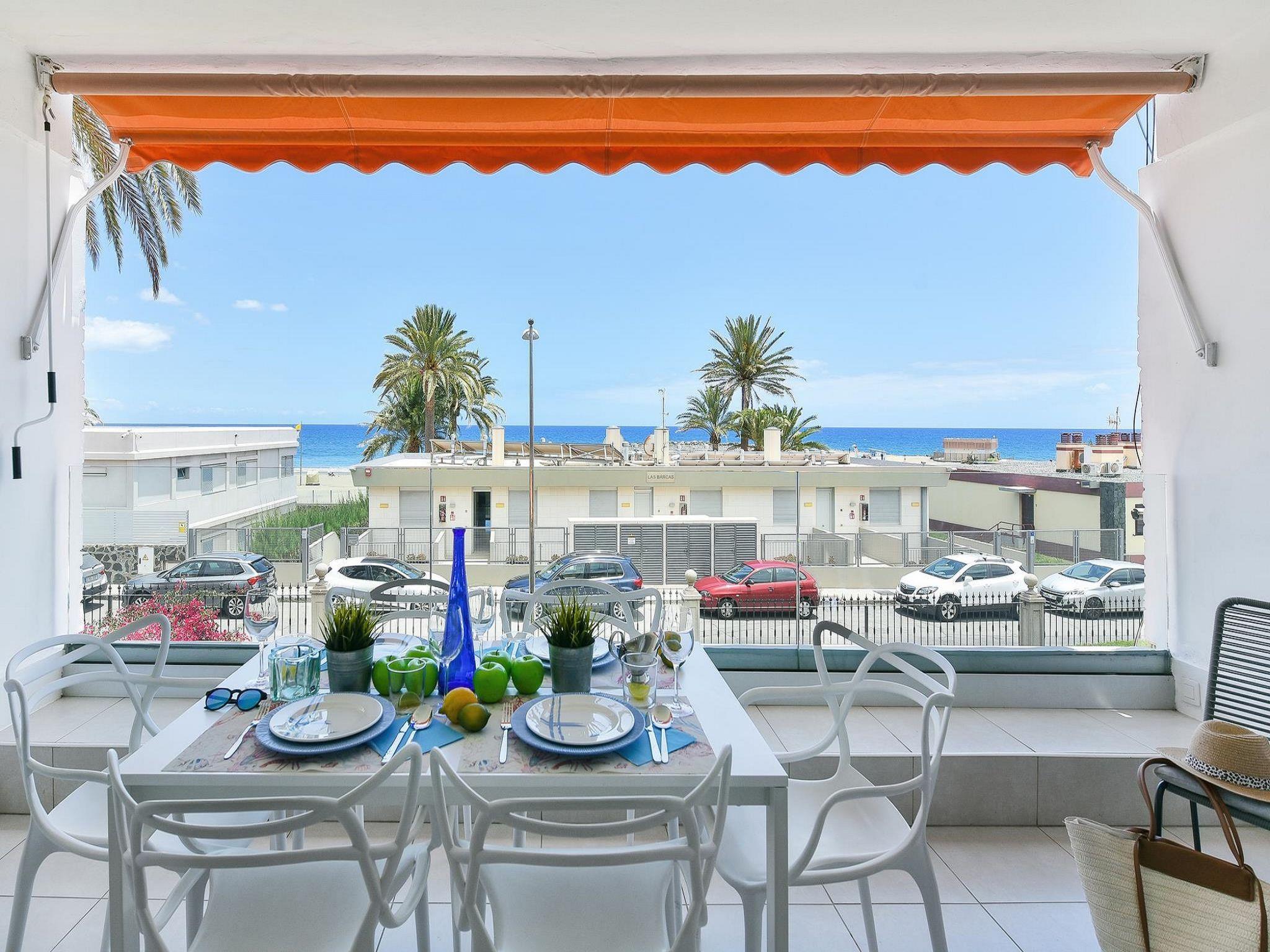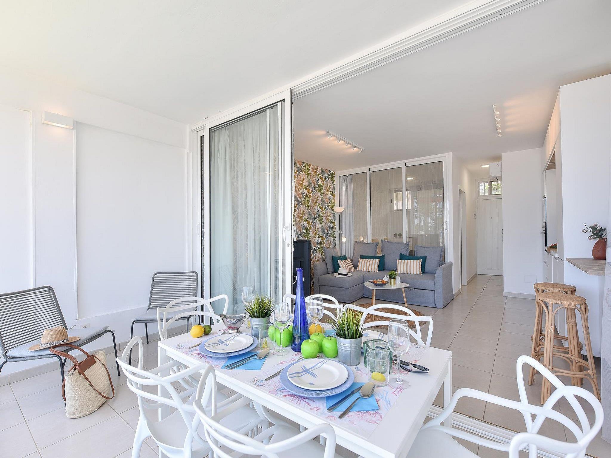 Modern, very comfortable apartment block "Puerto Chico 30". In the centre of Las Burras, on the beach, road to cross. For shared use: swimming pool angular (seasonal availability: 01.Jan. - 31.Dec.). Private: arbour, terrace, garden furniture. In the house: internet access, WiFi, air conditioning, washing machine, tumble dryer. Bus stop "San Agustín" 350 m. Object suitable for 2 adults. Neighbourhood highly sensitive to noise. Quietness and good behaviour expected. Late arrivals will have an extra cost to be paid in cash: 20:30-22:00: 30€, 22:00-00:00: 50€, 00:00-01:30: 80€.