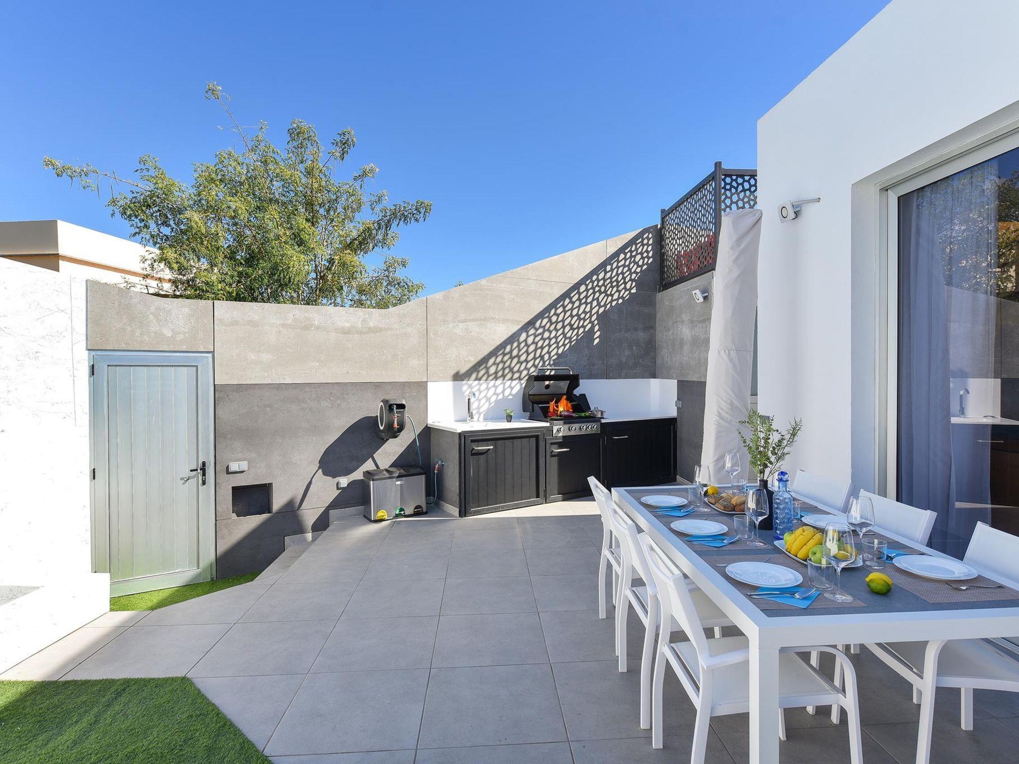 Modern, comfortable villa "Joviano". Above Maspalomas, in the centre of El Salobre. Private: property (fenced), swimming pool angular (7 x 3 m, depth 130 - 130 cm, seasonal availability: 01.Jan. - 31.Dec.). Outdoor shower, barbecue. In the house: sun terrace, air conditioning. Parking, public parking on the road. Shop 2 km, supermarket 2 km, restaurant 2 km, bus stop "Tablero de Maspalomas" 1.2 km. The owner does not accept any youth groups. Please note: airfield 35 km from the property. Neighbourhood highly sensitive to noise. Quietness and good behaviour expected.