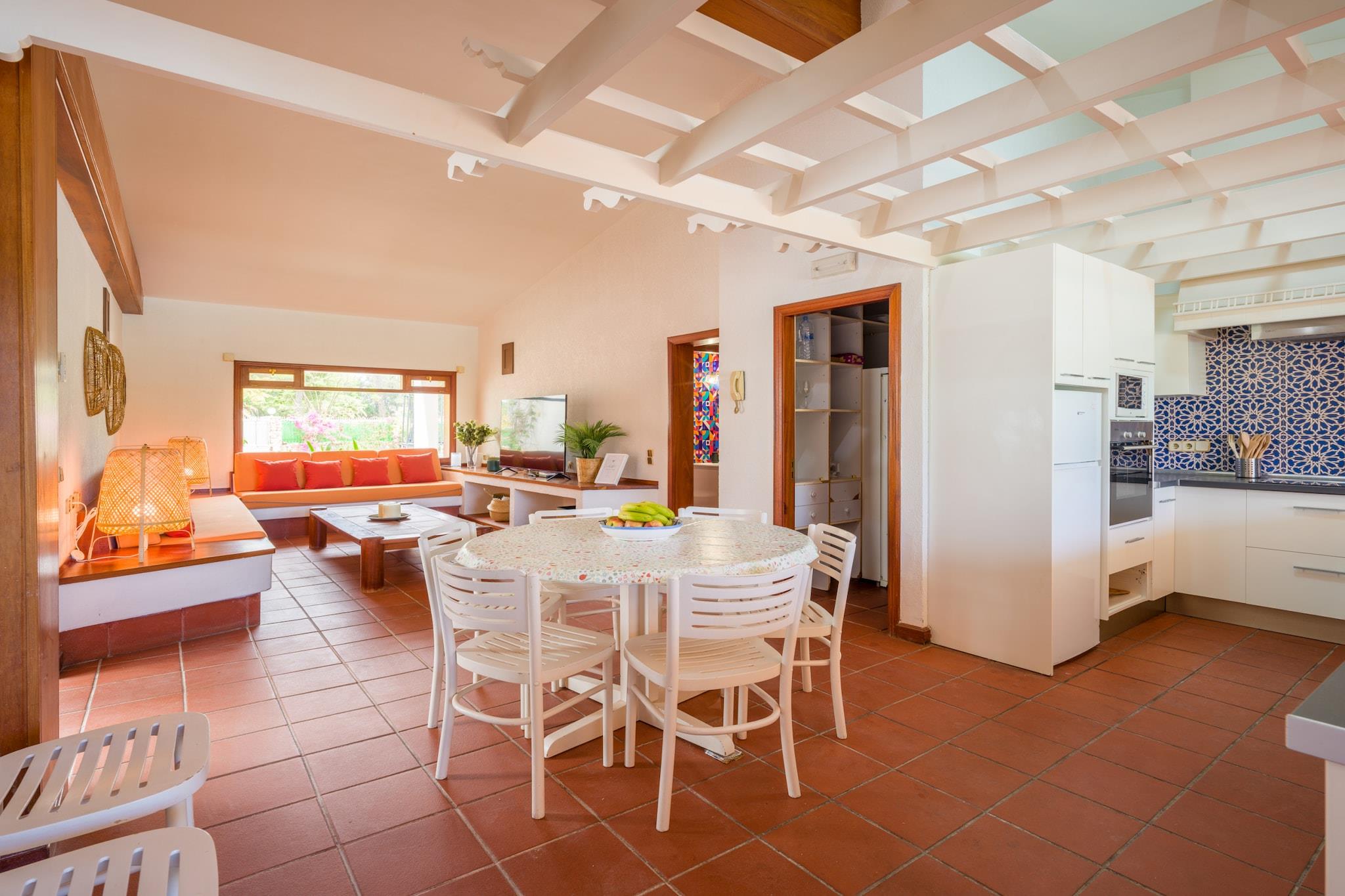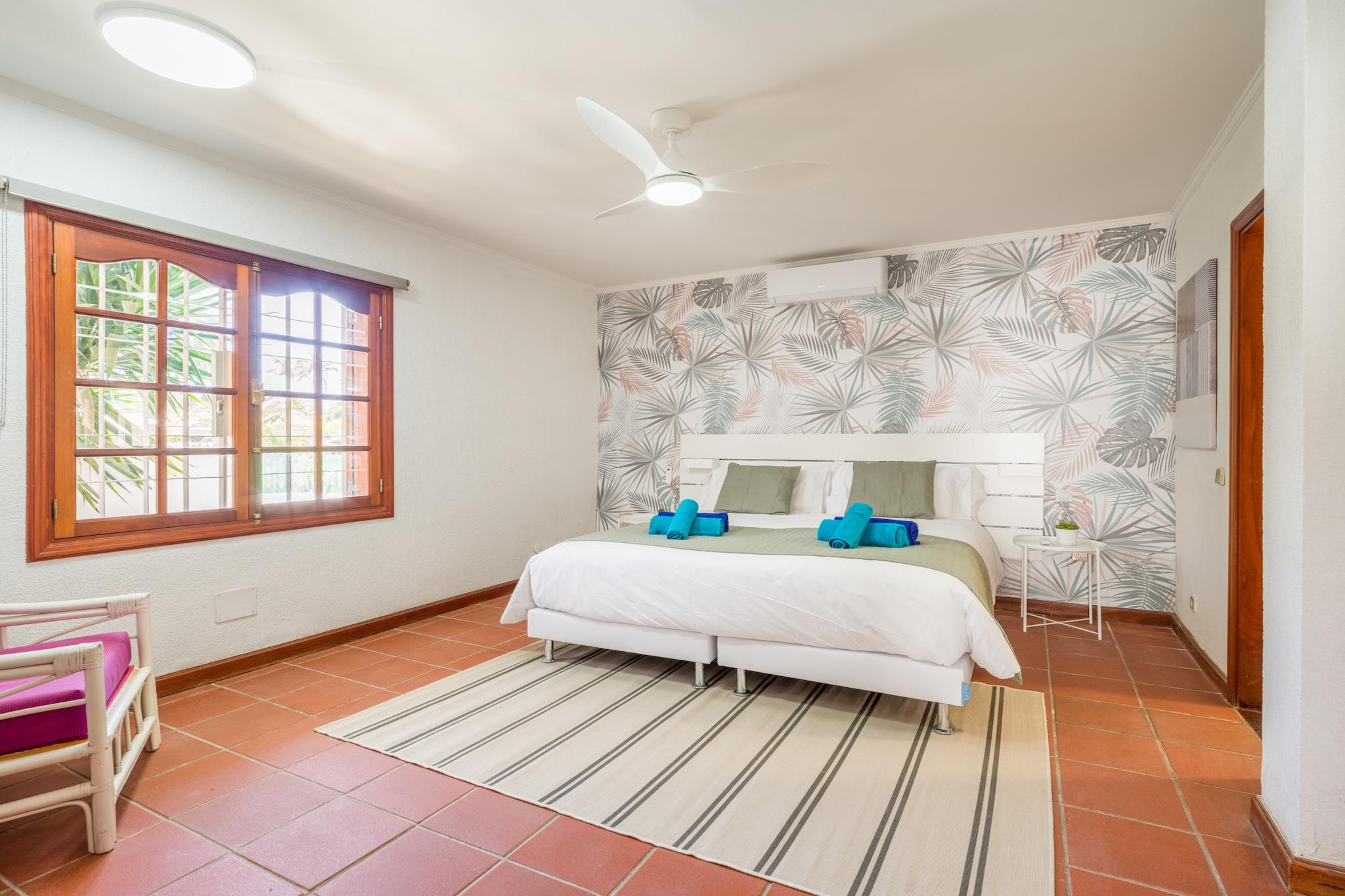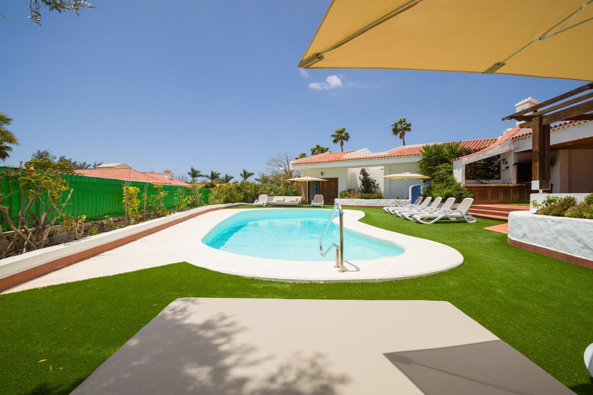 Denne fantastiske, nyligt renoverede hytte tilbyder det ultimative tilflugtssted for store familier eller grupper, der søger privatliv og ro på Gran Canaria. Med en rummelig planløsning omfatter ejendommen fem soveværelser, der kan rumme op til 13 gæster. Det store soveværelse har en king-size seng, mens de andre værelser tilbyder en blanding af enkelt- og dobbeltsenge, alle med aircondition og en-suite badeværelser. Stuen er udstyret med komfortable sofaer og et 65" smart-tv med internationale kanaler. Gæsterne kan nyde den store opvarmede pool, udendørs siddepladser og et spillerum med pool, bordtennis, bordfodbold, et fitnesscenter og en legeplads. Kæledyr er tilladt efter anmodning mod et tillægsgebyr, og huset ligger i et fredeligt boligområde. Ejendommen er ideelt beliggende i Maspalomas, kun en kort køretur fra den berømte Maspalomas-strand og Playa del Inglés. Det er også tæt på lokale supermarkeder, restauranter og butikker. Med 2 minutters kørsel til det nærmeste supermarked og nem adgang til store attraktioner, kombinerer beliggenheden bekvemmelighed og sindsro. Ejendommen ligger kun 7 minutter i bil fra Maspalomas Strand, og tilbyder gæsterne en perfekt balance mellem afslapning og udforskning. Det fuldt udstyrede køkken omfatter elektrisk kogeplade, ovn, køleskab, blender, brødrister og både Nespresso- og filterkaffemaskiner. For ekstra bekvemmelighed er der et spisekammer med et stort køleskab, ekstra fryser i garagen og en rummelig terrasse med to udendørs spiseborde. Den store, opvarmede pool (valgfri service) sikrer, at gæsterne kan nyde solbadning året rundt.