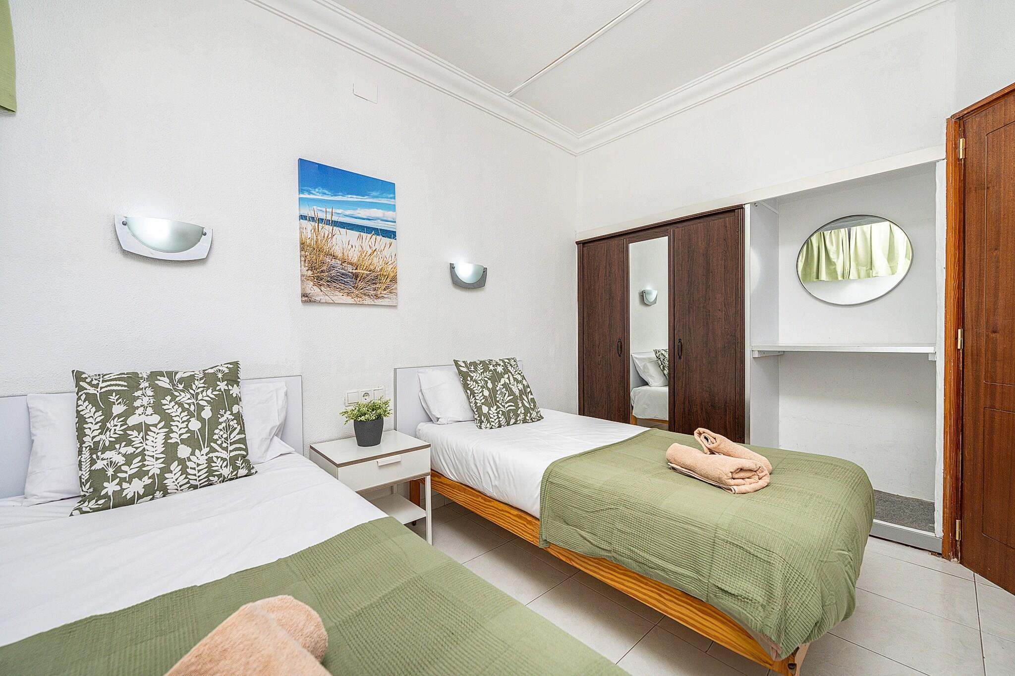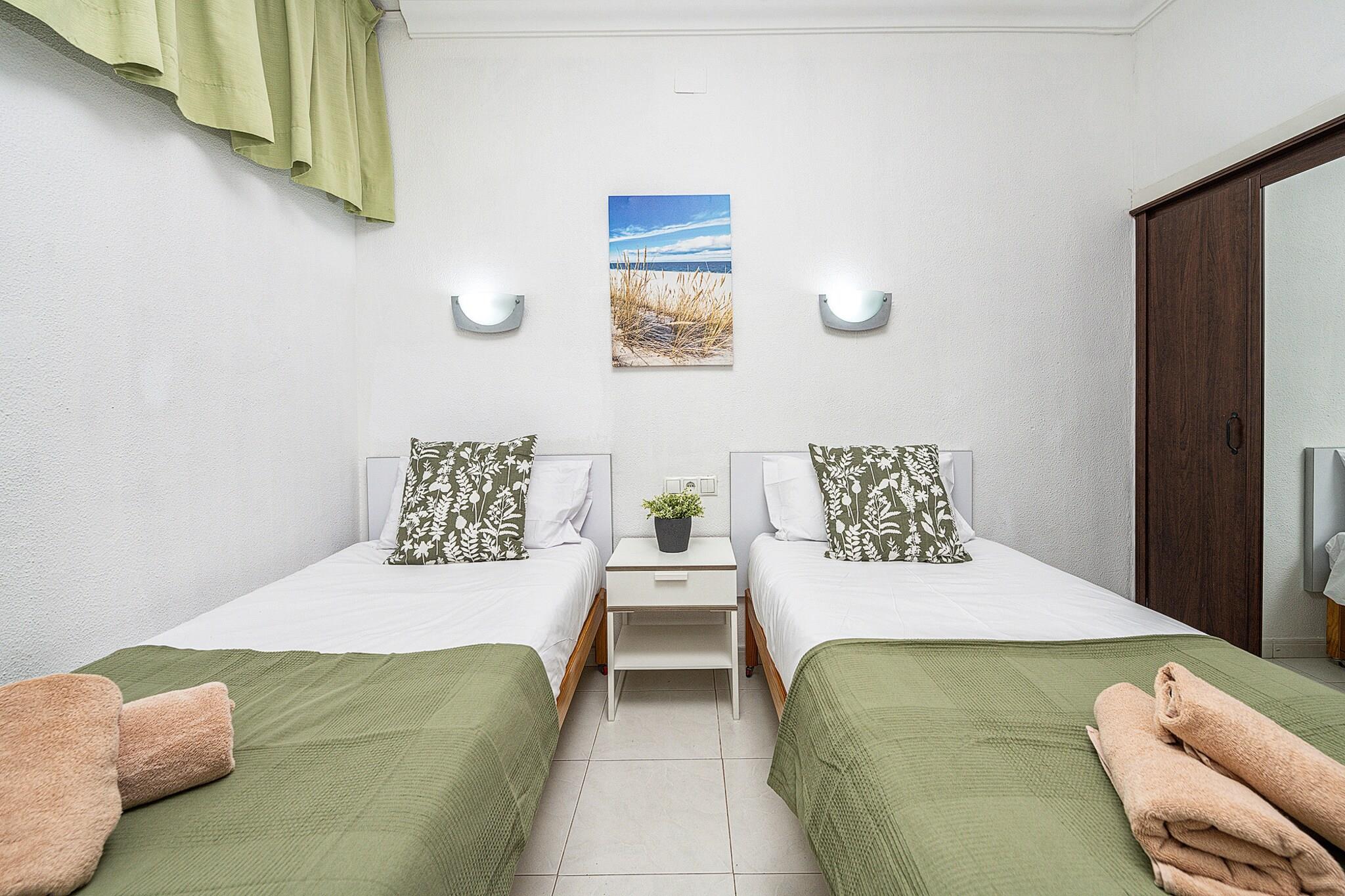 Velkommen til dit charmerende kysttilflugtssted i Playa del Inglés, San Bartolomé de Tirajana! Dette stilfulde 1-værelses feriehus er perfekt til to gæster og tilbyder et hyggeligt og moderne interiør på 40 m² designet til komfort og afslapning. Beliggende i et roligt område kun 300 meter fra sandstranden, er det ideelt for strandelskere og dem, der søger fredelige omgivelser. Lejligheden har et lyst køkken i åbent plan med alt hvad du behøver: køleskab, mikroovn, kaffemaskine, juicer og meget mere. Nyd bekvemmeligheden ved en vaskemaskine, strygejern, hårtørrer og gratis højhastigheds-Wi-Fi. Træd ud på balkonen for at nyde havbrisen, eller tag en dukkert i den fælles swimmingpool for at køle af efter en solrig dag på stranden. Beliggende nær det spektakulære Maspalomas Dunes Nature Reserve og kun få minutter fra lokale supermarkeder, restauranter og shoppingområder som Yumbo, er dette hjem den perfekte base for at udforske det pulserende sydlige Gran Canaria. Med nem adgang til vandlande, golfbaner og naturskønne byer som Mogán, er dette en perfekt blanding af afslapning og eventyr.