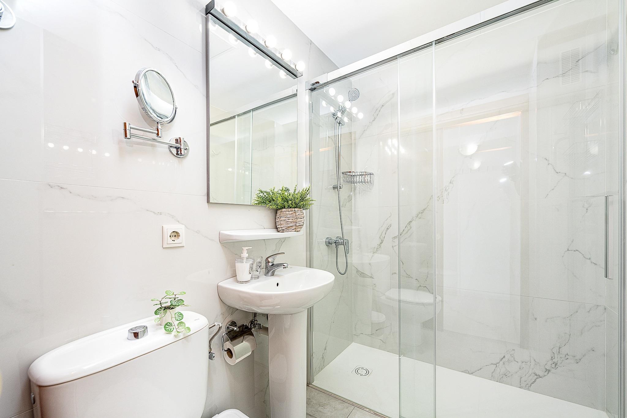 På 5. etage: (Stue(Fjernsyn(fladskærm, Smart-TV), spisebord, sofahjørne), åbent køkken(elkedel, brødrister, kaffemaskine, mikrobølgeovn, køle-fryseskab, Saftpresser, elektriske kogeplader, , Wine glasses), soveværelse(enkeltseng, enkeltseng), badeværelse(bruser, føntørrer)) Internetadgang, Havemøbler, solarium, vaskemaskine, swimmingpool(deles med andre gæster, udendørs), elevator, strygejern, ,
