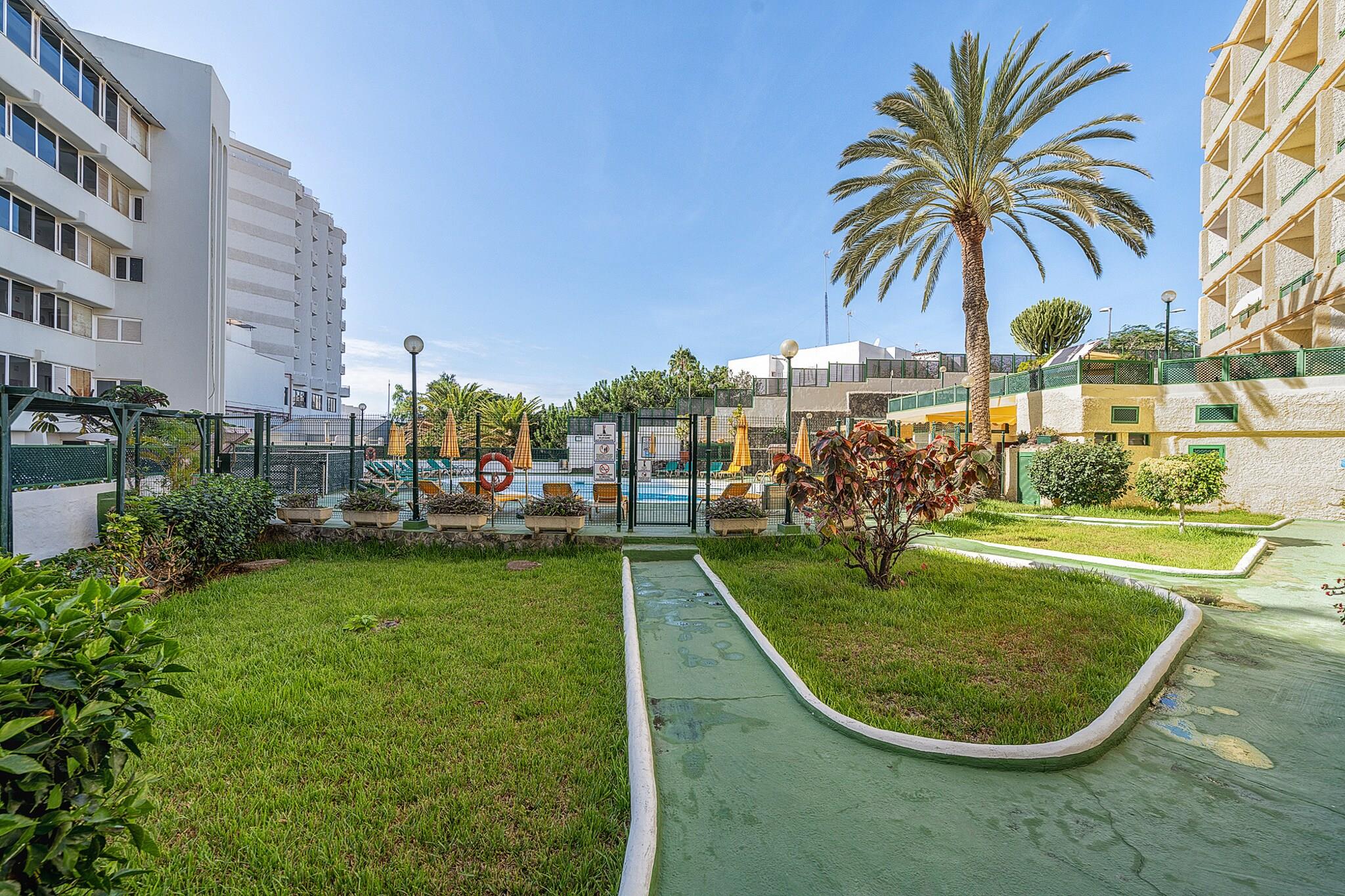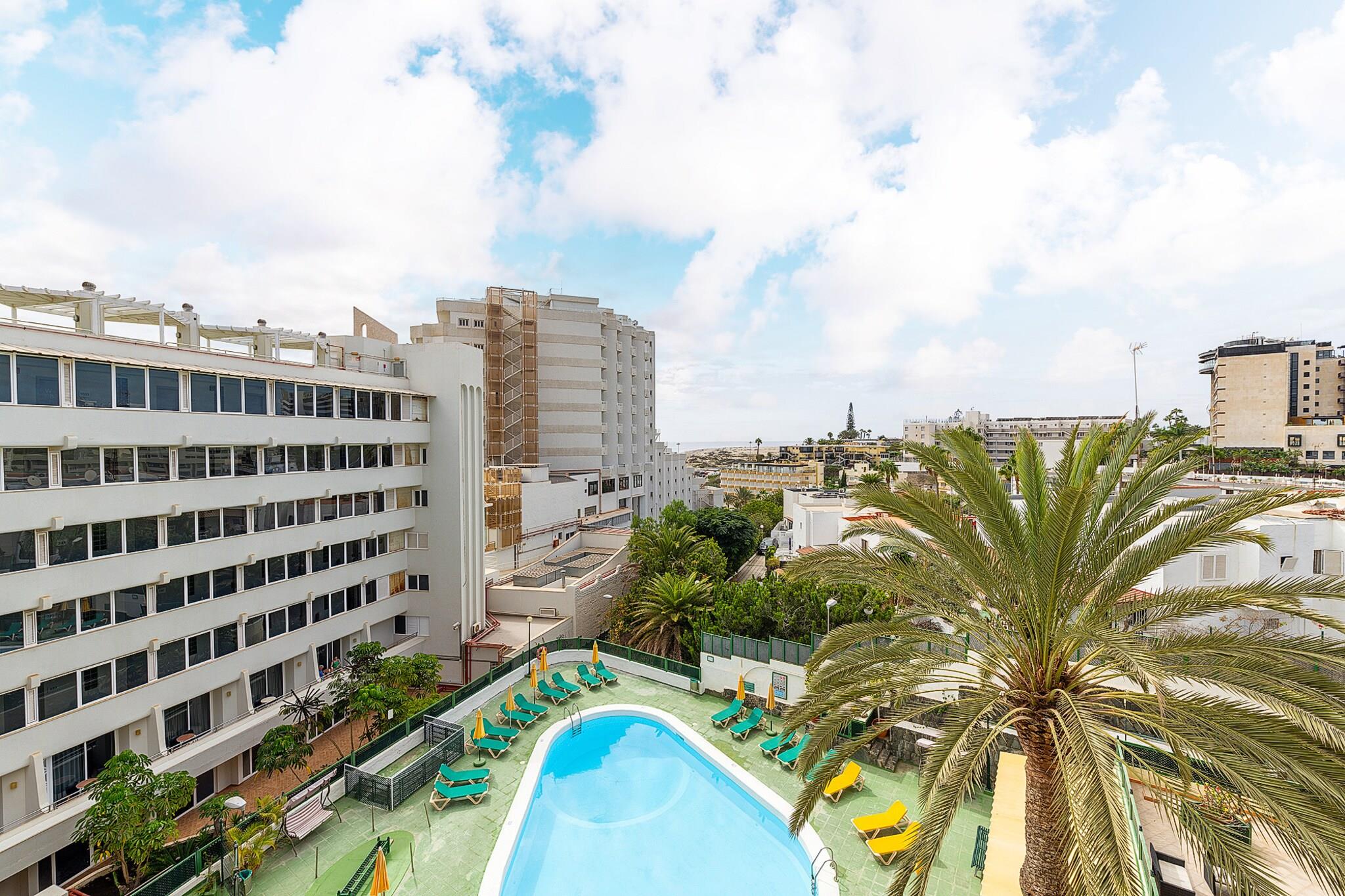 Kun 300 meter fra det ikoniske Playa del Inglés tilbyder denne hyggelige lejlighed en fantastisk base for par eller solorejsende, der ønsker at slappe af i hjertet af San Bartolomé de Tirajana. Dens førsteklasses beliggenhed placerer dig få skridt fra det gyldne sand, pulserende indkøbscentre og den naturlige skønhed i Maspalomas klitter._x000D_ _x000D_ Lejligheden har et fuldt udstyret køkken, perfekt til at tilberede lette måltider eller romantiske middage derhjemme. Træd ud på den private balkon med udsigt over den fælles pool - et fredfyldt sted at slappe af med morgenkaffe eller en aftendrink._x000D_ _x000D_ Indeni byder den omhyggeligt møblerede opholdsstue og soveværelse en varm, indbydende følelse. Nyd moderne bekvemmeligheder, herunder aircondition, højhastigheds-Wi-Fi og et fladskærms-tv for et afslappende og bekvemt ophold._x000D_ _x000D_ Uanset om du er her for fritid eller forretning, vil du elske at være tæt på restauranter, butikker og attraktioner såsom indkøbscentrene El Yumbo, Cita og Plaza. De verdensberømte klitter i Maspalomas ligger kun 1 km væk - perfekt til gåture i solnedgangen og en uforglemmelig udsigt._x000D_ _x000D_ Denne bolig lover komfort, privatliv og en solrig flugt kun få øjeblikke fra alt, hvad du behøver for en perfekt ferie._x000D_
