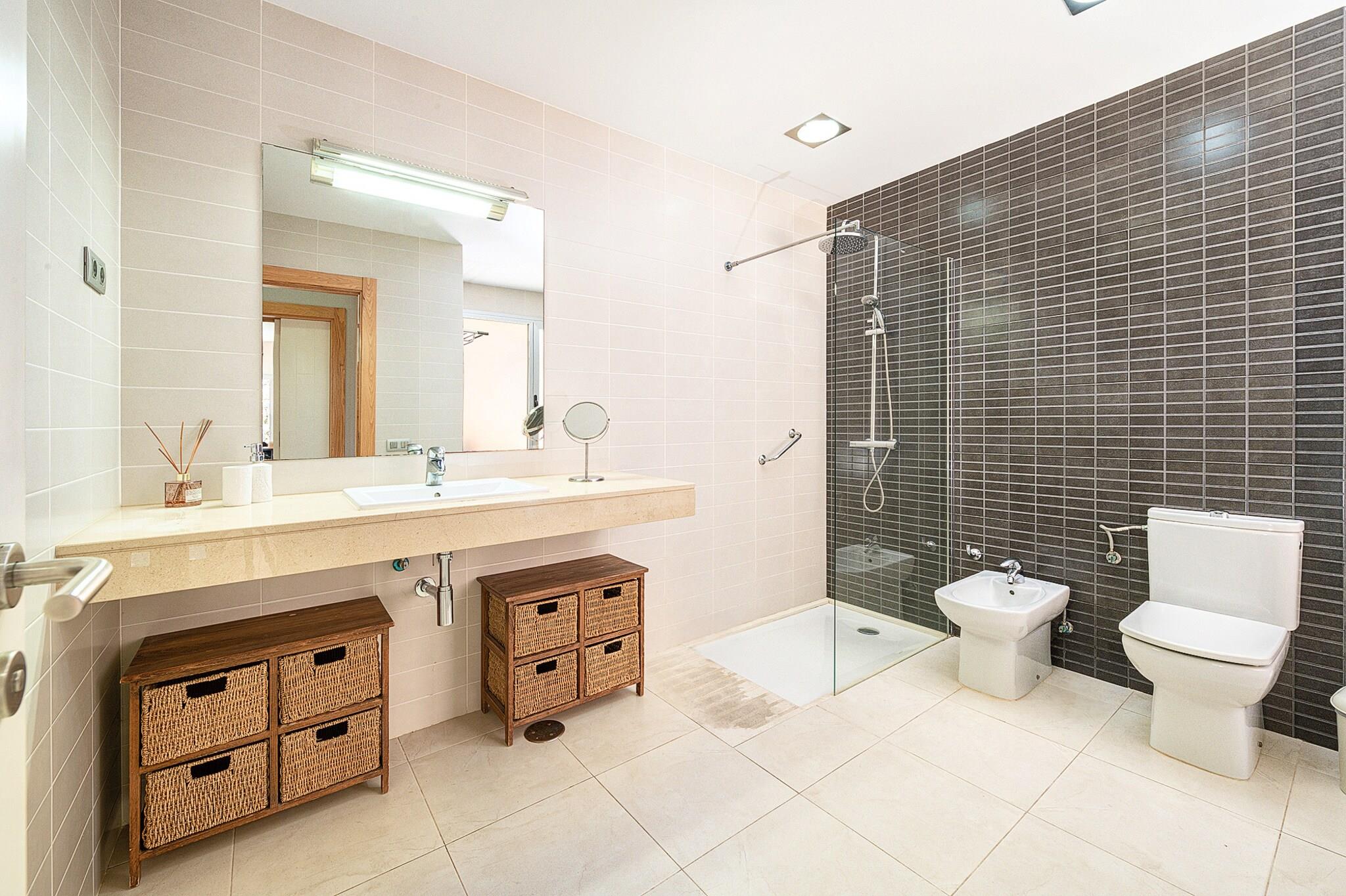 Stue(Fjernsyn(fladskærm, parabol, digital, Smart-TV), spisebord, sofahjørne, radio), åbent køkken(elkedel, brødrister, kaffemaskine, ovn, mikrobølgeovn, opvaskemaskine , køle-fryseskab, elektriske kogeplader, ), soveværelse(enkeltseng, enkeltseng, Fjernsyn(fladskærm, parabol, digital, Smart-TV)), soveværelse(enkeltseng, enkeltseng, Fjernsyn(fladskærm, parabol, digital, Smart-TV)), badeværelse(bruser, føntørrer), badeværelse(badekar), Internetadgang, Havemøbler, solarium, vaskemaskine, balkon, patio, terrasse, have(indhegnet), grill, parkering, swimmingpool(privat, udendørs, opvarmet), strygejern, ,