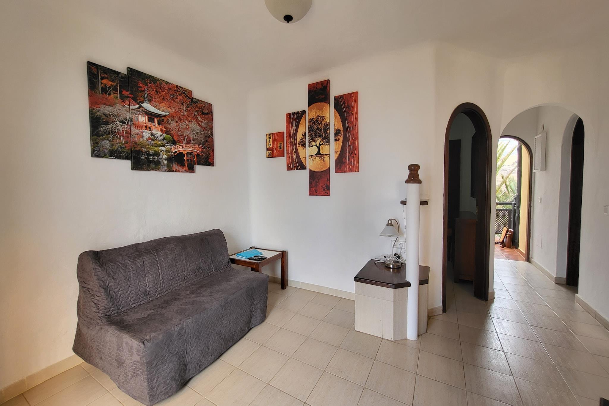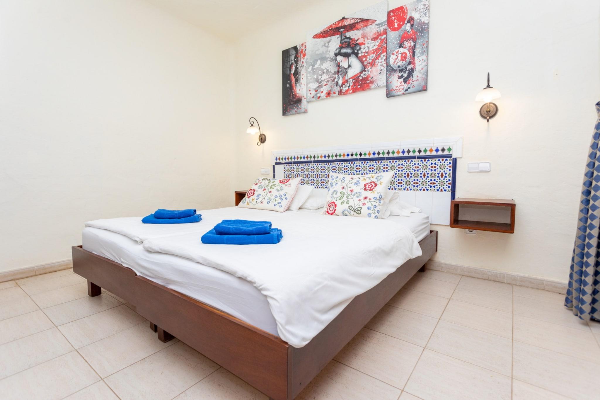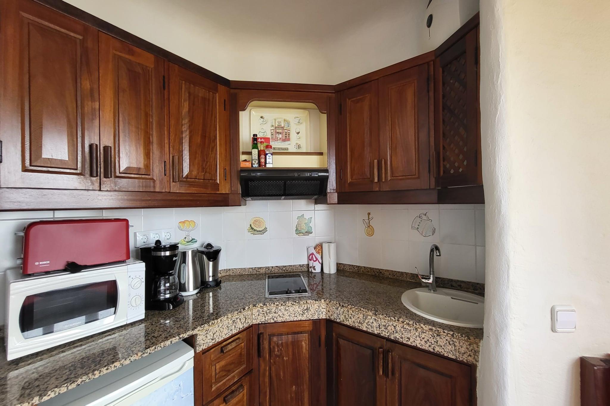 Dette lyse og indbydende hus ved vandet i San Bartolomé de Tirajana er det perfekte kysttilflugtssted for to. Med 45 m² hjemlig komfort tilbyder det direkte adgang til Playa del Águila - kun 30 meter væk - hvilket gør det til et fremragende valg for strandelskere. Ejendommen ligger i et fredeligt, familievenligt område, ideelt til at slappe af ved havet, mens du stadig er tæt på lokale faciliteter og offentlig transport. Huset har et solbelyst interiør med et hyggeligt opholdsrum, en privat terrasse på 4 m² og en charmerende balkon, hvor du kan nyde havbrisen. Moderne bekvemmeligheder inkluderer Wi-Fi, et tv med satellitkanaler på spansk og tysk og et fuldt udstyret åbent køkken med keramisk kogeplade, køleskab, mikroovn og meget mere. En vaskemaskine, strygejern og hårtørrer tilføjer til bekvemmeligheden for et bekymringsfrit ophold. Gæsterne har også adgang til en fælles swimmingpool - inklusive en opvarmet mulighed - perfekt til at slappe af efter en dag med udforskning af nærliggende attraktioner såsom Playa del Inglés, Holidayworld Maspalomas og Aqualand. Placeringen giver også nem adgang til restauranter, supermarkeder, golfbaner og naturskønne destinationer som Roque Nublo og Tejeda. Uanset om du planlægger en romantisk ferie eller en rolig flugt, har dette gemmested ved havet alt, hvad du behøver.