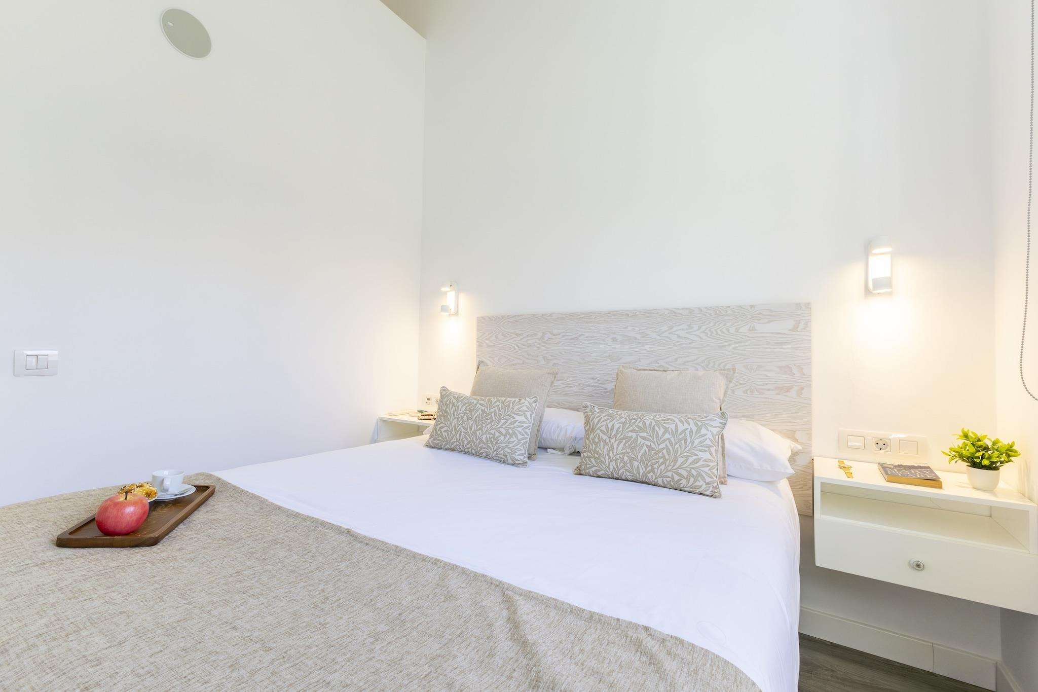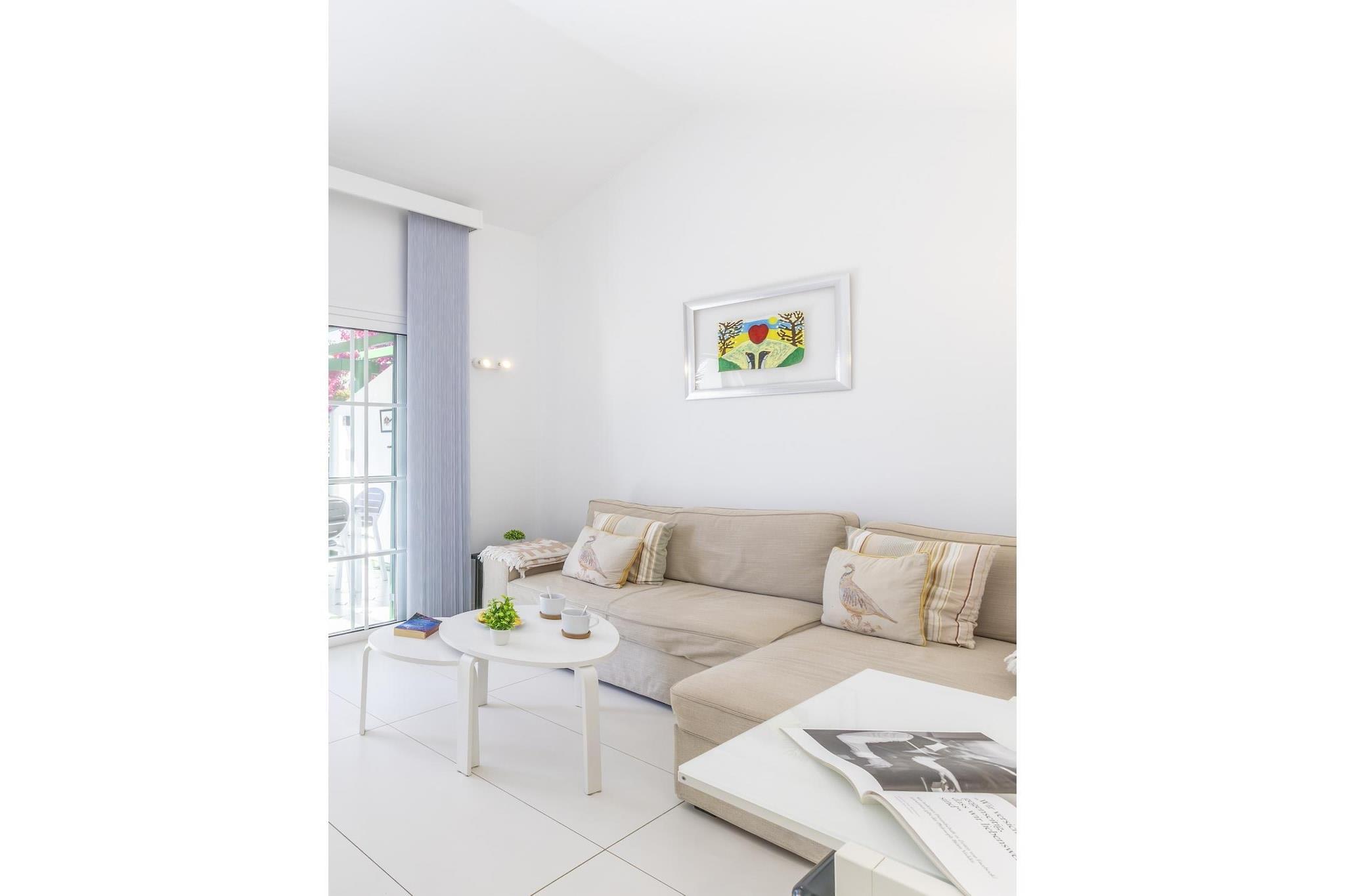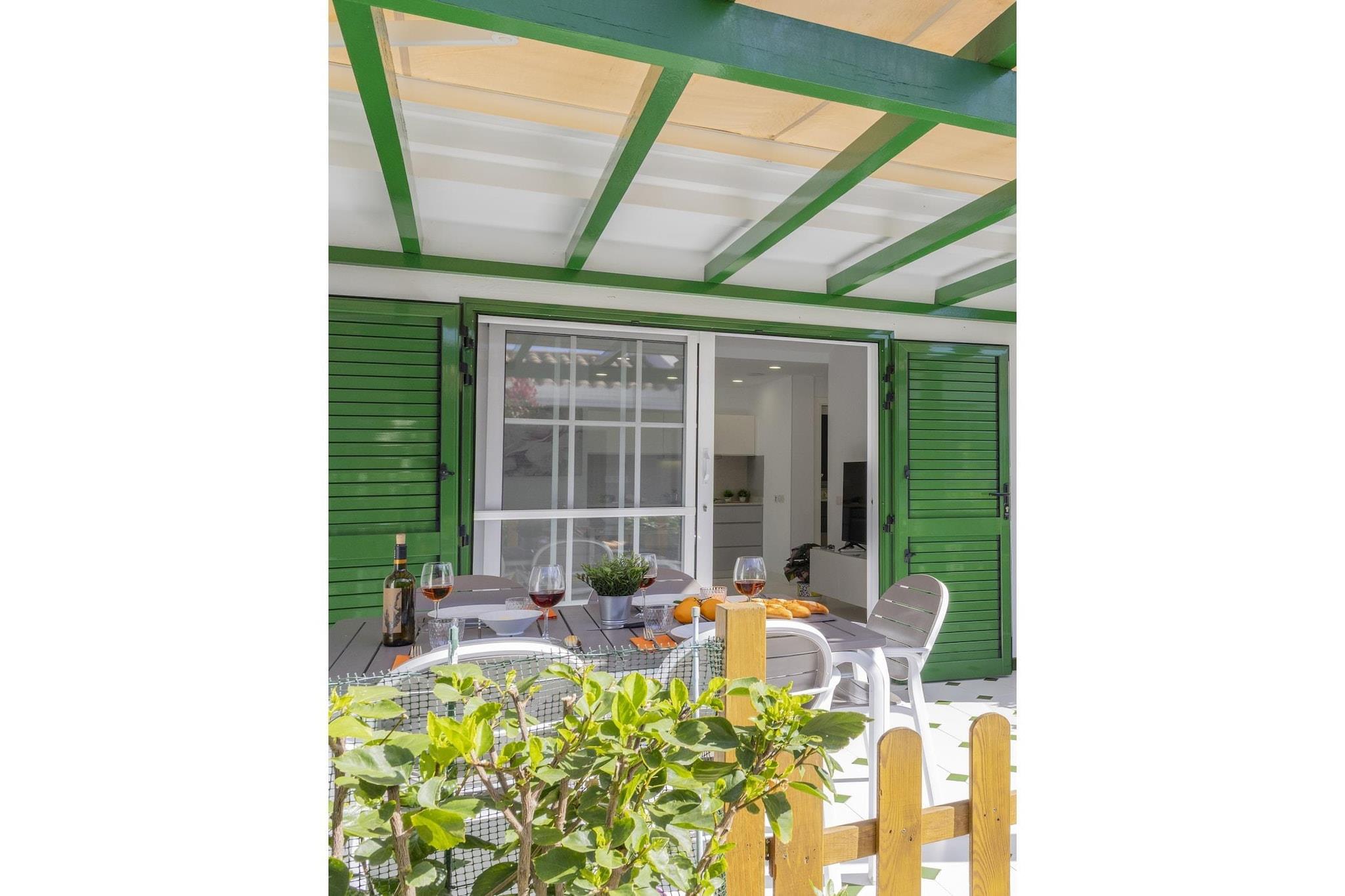 Stue(dobbeltsovesofa, Fjernsyn(Smart-TV), klimaanlæg), åbent køkken(kogeplade, elkedel, brødrister, kaffemaskine(espresso), ovn, mikrobølgeovn, opvaskemaskine , køleskab, fryser, , ), soveværelse(dobbeltseng, klimaanlæg), badeværelse(bruser, håndvask, toilet, føntørrer), Internetadgang, tremmeseng, vaskemaskine, balkon eller terrasse, patio, klimaanlæg, have(deles med andre gæster), havemøbler, swimmingpool(deles med andre gæster), barnestol, strygebræt, strygejern