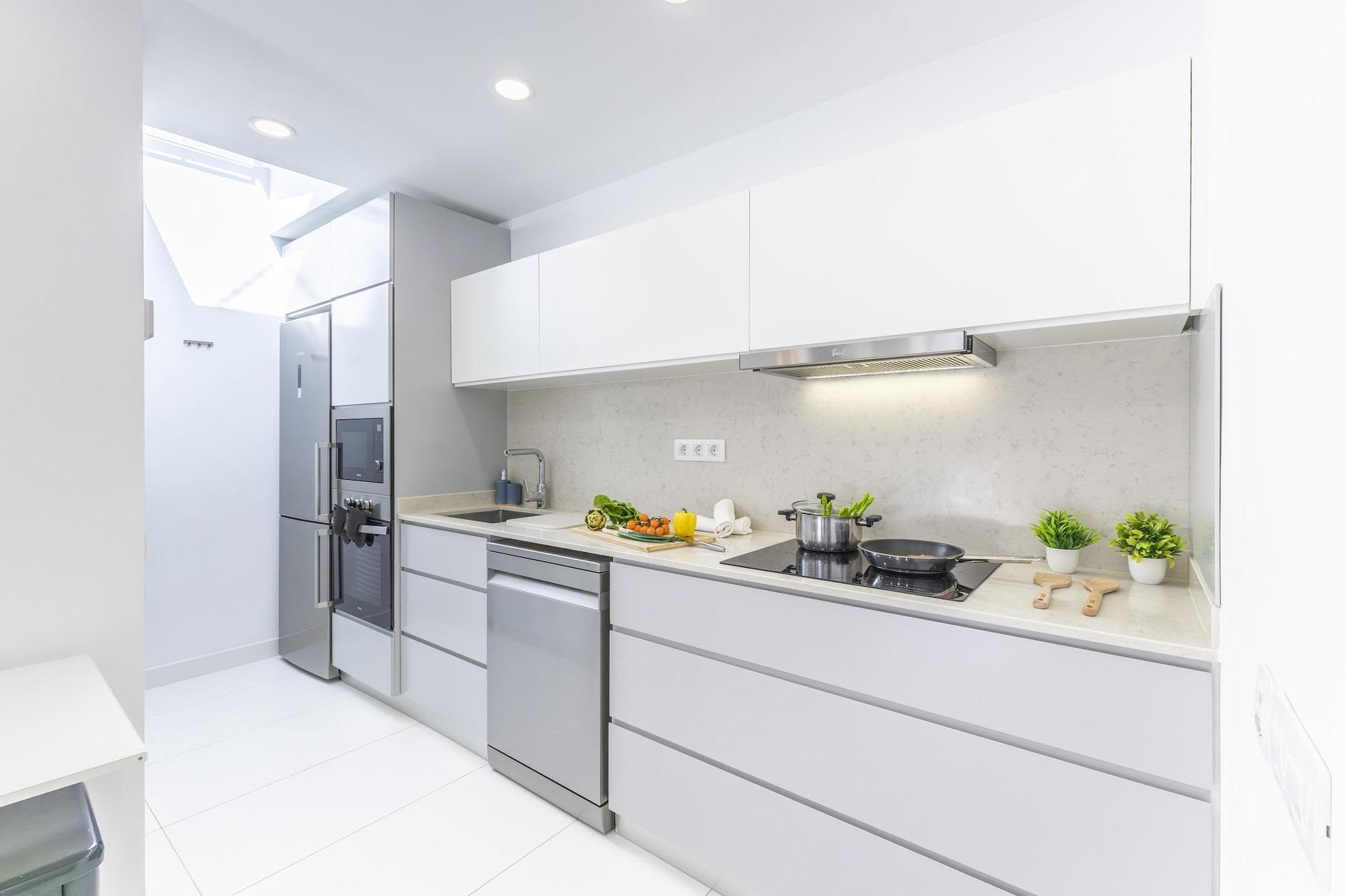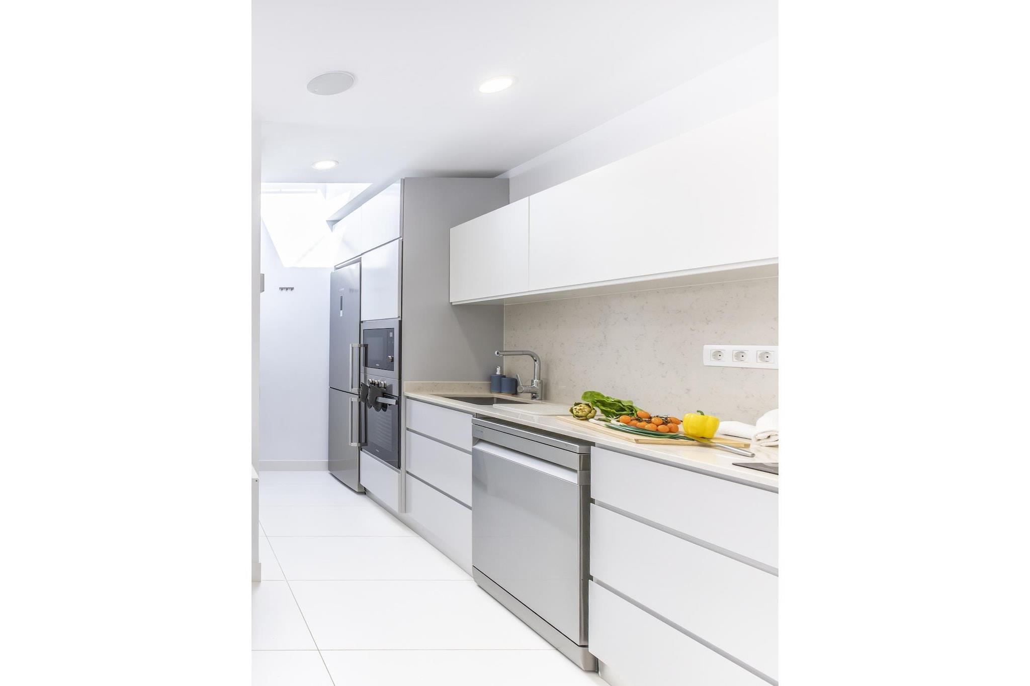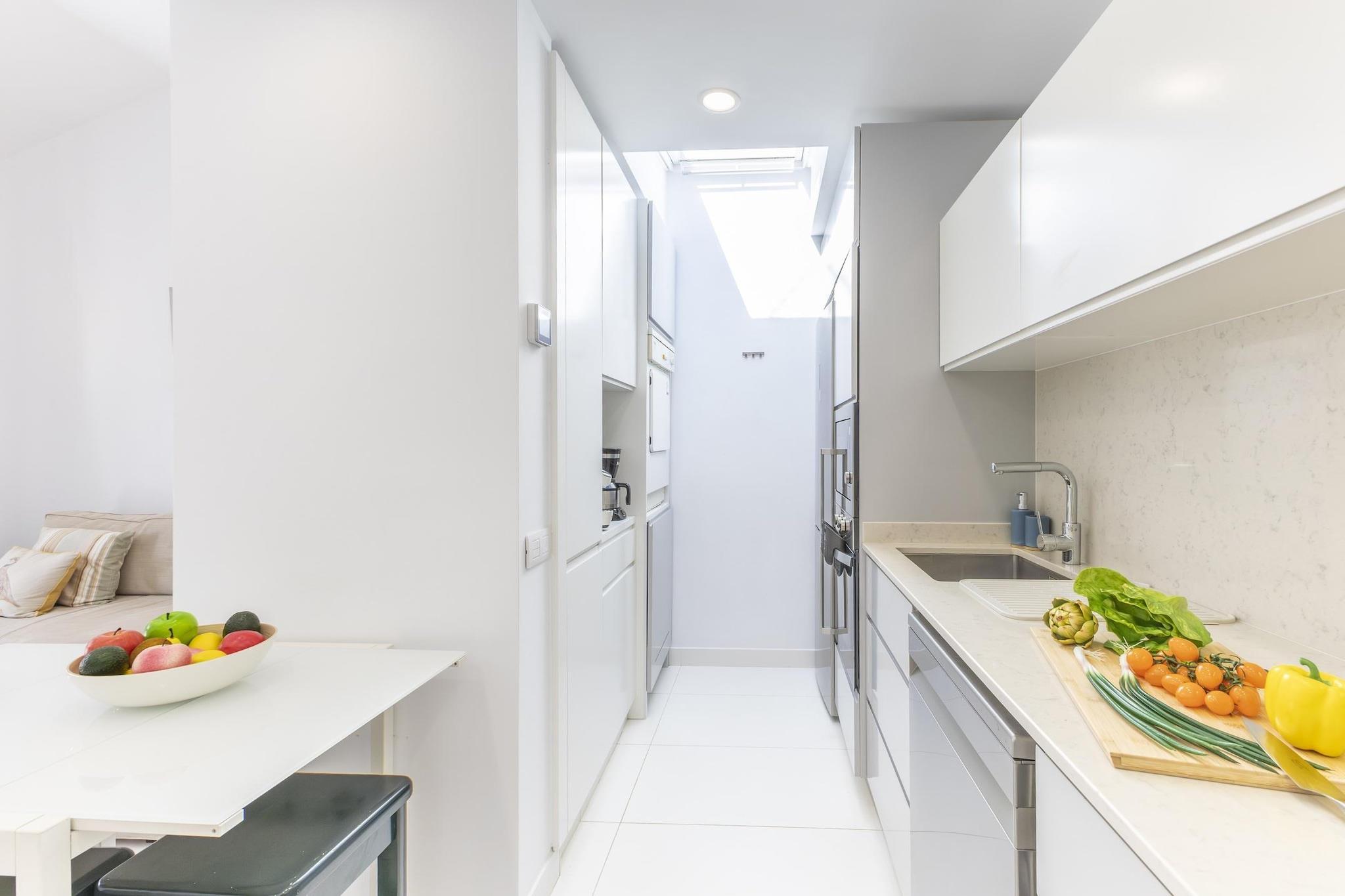 Stue(dobbeltsovesofa, Fjernsyn(Smart-TV), klimaanlæg), åbent køkken(kogeplade, elkedel, brødrister, kaffemaskine(espresso), ovn, mikrobølgeovn, opvaskemaskine , køleskab, fryser, , ), soveværelse(dobbeltseng, klimaanlæg), badeværelse(bruser, håndvask, toilet, føntørrer), Internetadgang, tremmeseng, vaskemaskine, balkon eller terrasse, patio, klimaanlæg, have(deles med andre gæster), havemøbler, swimmingpool(deles med andre gæster), barnestol, strygebræt, strygejern
