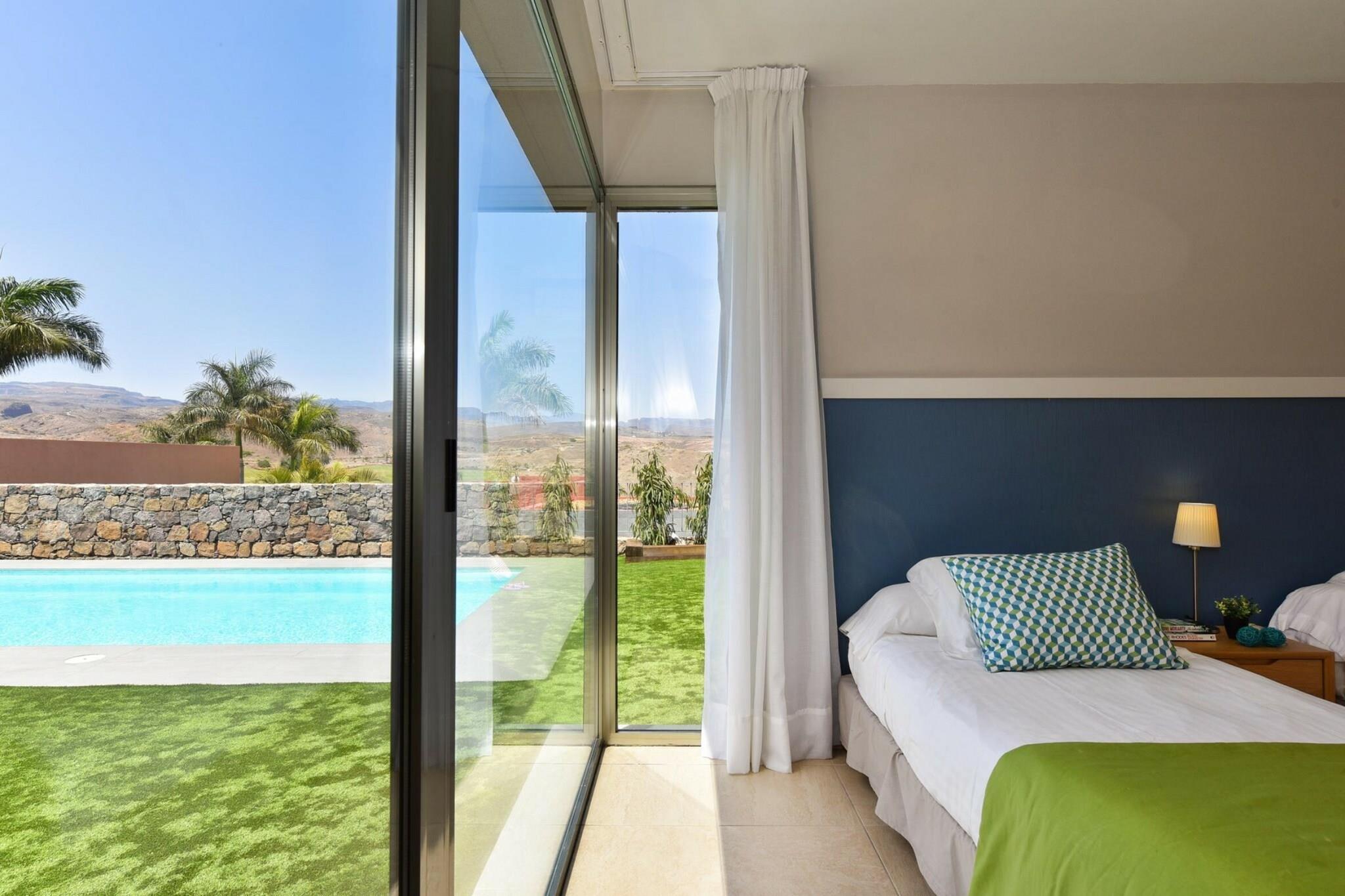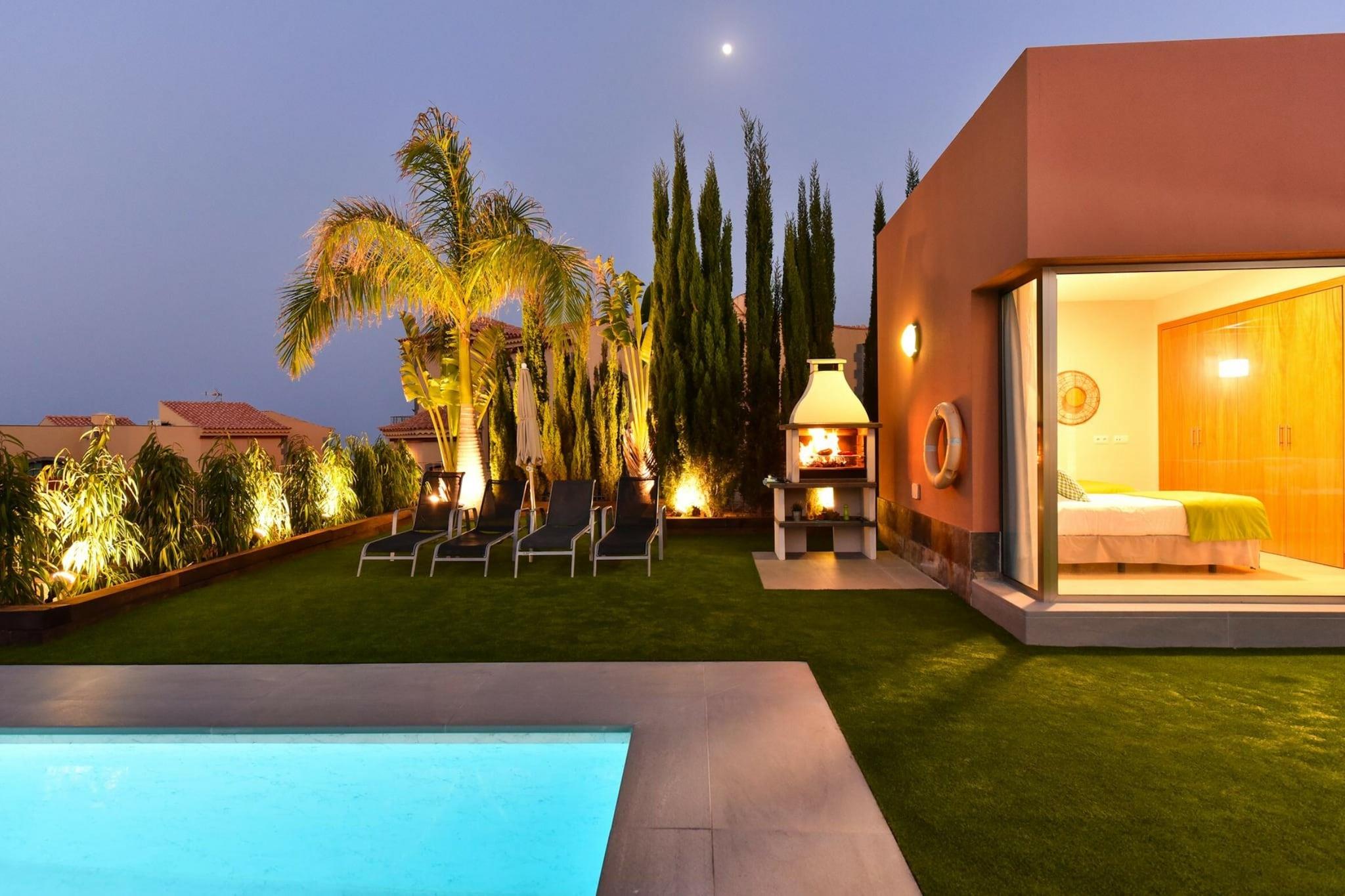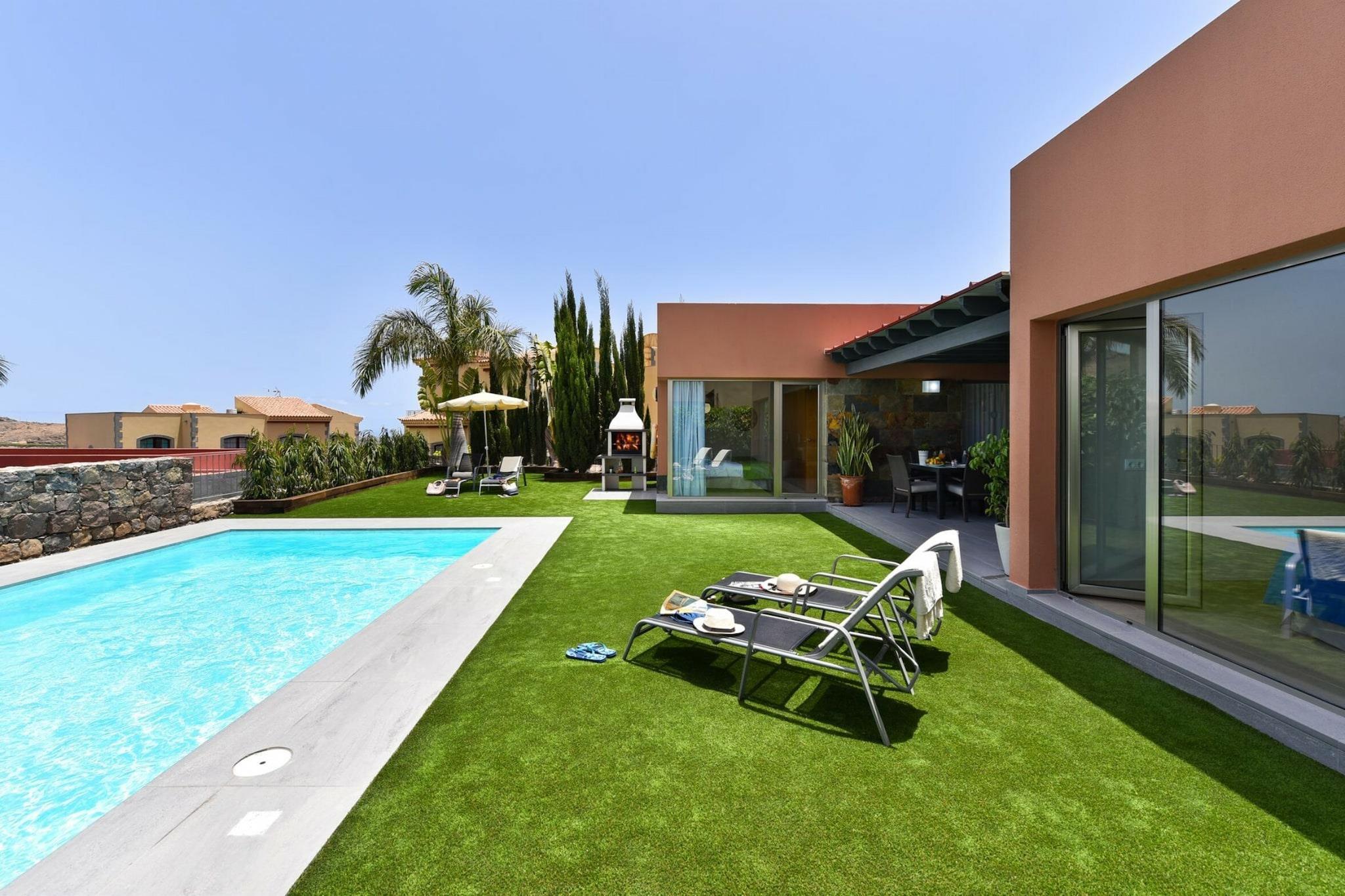 Denne villa er beliggende i et eksklusivt boligkompleks i Salobre Golf Resort. Et vidunderligt, fredeligt sted, der er perfekt til afslapning og nyde omgivelserne. En af de bedste steder i denne villa er den store terrasse med fantastisk udsigt over Salobre Resort og dens omgivelser. Selv om vinteren er det dejligt at være der, der er en terrassevarmer. I haven finder du din private swimmingpool (kan opvarmes mod et gebyr), om aftenen kan du tænde belysningen for lidt ekstra sjov. Den stue / spisestue er rummelig og forbundet med køkkenet og terrassen. Værelserne er komfortabelt og smukt indrettede. , de store panoramavinduer gør det også godt og let. Det veludstyrede køkken har adgang til terrassen og soveværelserne til haven. Du er kun fem minutters kørsel fra centrum af Maspalomas med mange butikker, barer og natteliv og godt restauranter. Også her er den smukke brede strand, hvor du sandsynligvis vil tilbringe flere timer, men også tage en tur rundt på øen, det er smukt!