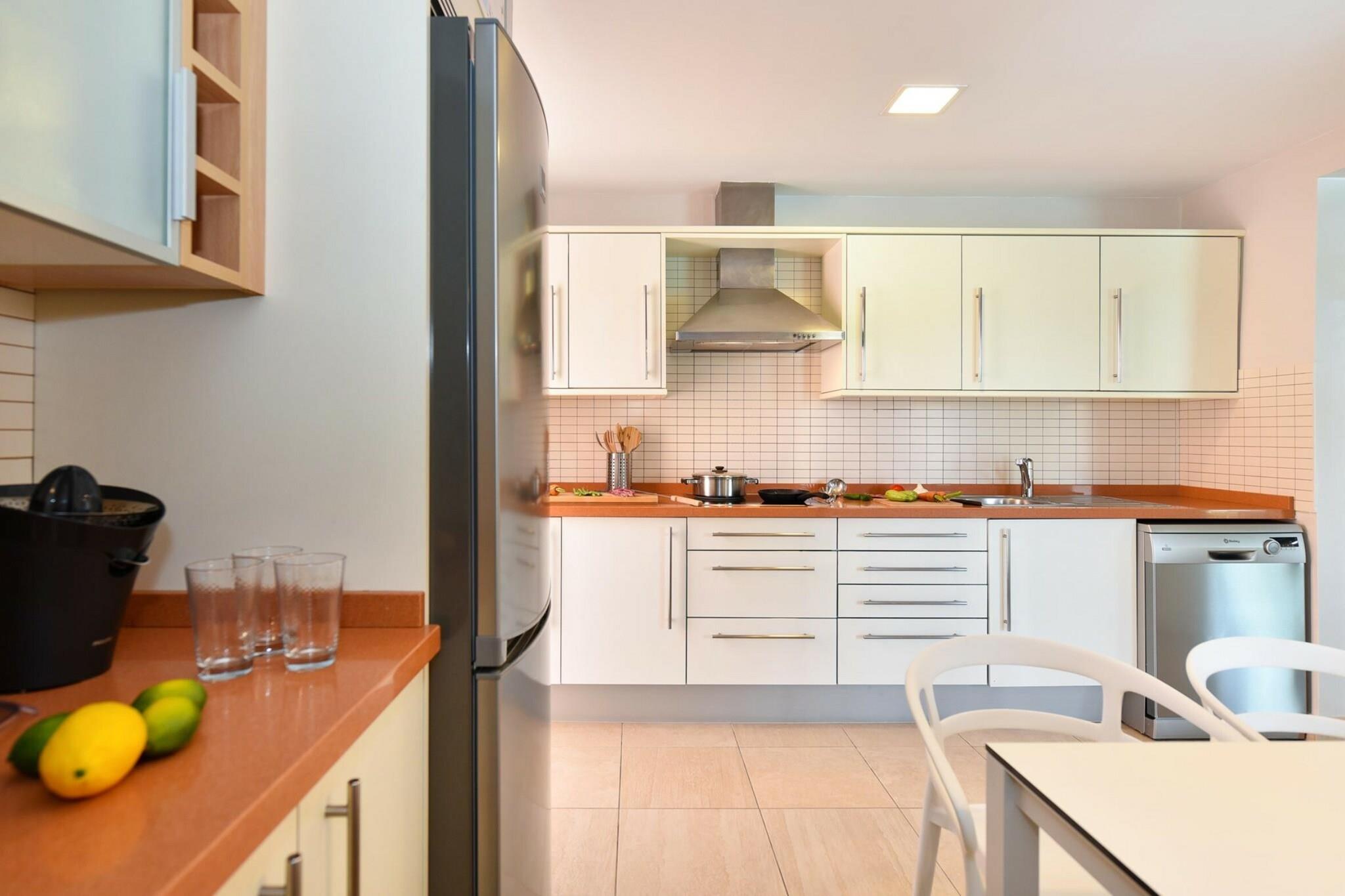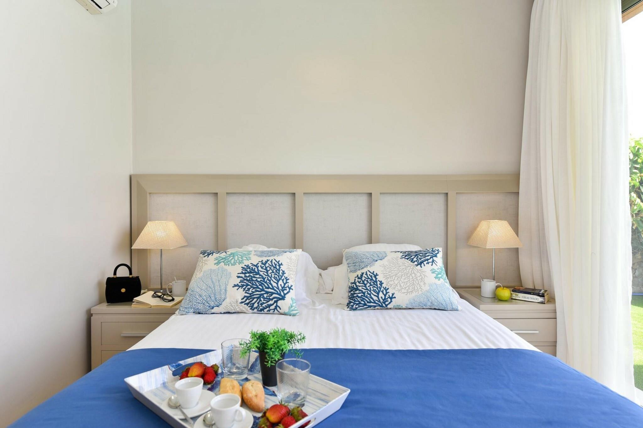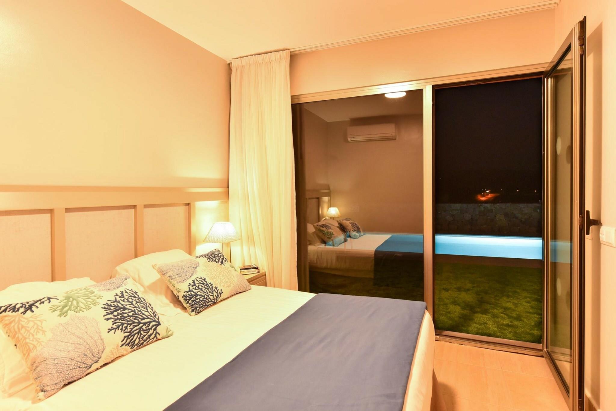 Stueetage: (sofastue(Fjernsyn(parabol, Internationale TV-kanaler), sofahjørne, DVD-afspiller, klimaanlæg), åbent køkken(elkedel, komfur(Komfur med fire kogeplader, glaskeramisk), kaffemaskine, ovn, mikrobølgeovn, opvaskemaskine , fryser, køle-fryseskab, klimaanlæg), soveværelse(2x enkeltseng(90 x 200 cm)), Soveværelse med badeværelse(dobbeltseng(160 x 200 cm), bruser, håndvask, toilet, bidet, klimaanlæg), badeværelse(bruser, håndvask, toilet), bryggers(vaskemaskine), havestue/veranda) varme, terrasse(privat), have(privat), havemøbler, grill, parkering, swimmingpool(privat, opvarmes, 8 x 4 m.), barneseng, barnestol