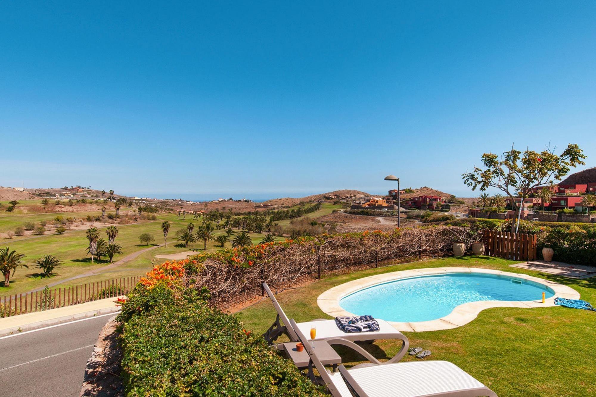 Denne eksklusive villa med privat pool giver dig mulighed for at lære øen at kende fra et unikt perspektiv. Den vidunderligt fredelige atmosfære, udstyr af høj kvalitet og frem for alt den storslåede udsigt over bjergene til havet garanterer en uforglemmelig ferie. Med den overdækkede terrasse og de lyse rum gennem gulv-til-loft vinduer, bliver du mødt af en særlig atmosfære, hvor du kan føle dig hjemme. Uanset om du kommer til Gran Canaria for første gang eller har været på øen flere gange, kommer du næppe nogensinde til at bo så afsondret et sted og samtidig tæt nok på turistcentret i Maspalomas. Et strejf af luksus omgiver hele resortet, der ligner en grøn oase. Omkring 300 meter over havets overflade, midt i bjergene foran Maspalomas, blev det idylliske Salobre Golf Resort bygget for noget tid siden. Udover et førsteklasses hotel er der flere arkitektonisk attraktive villaer samlet omkring de to golfbaner.Villaernes gæster får rabat på greenfee. Der er et lille supermarked i nærheden til dine daglige behov, og en restaurant vil forkæle dig, hvis du ikke vil lave mad selv ind imellem.