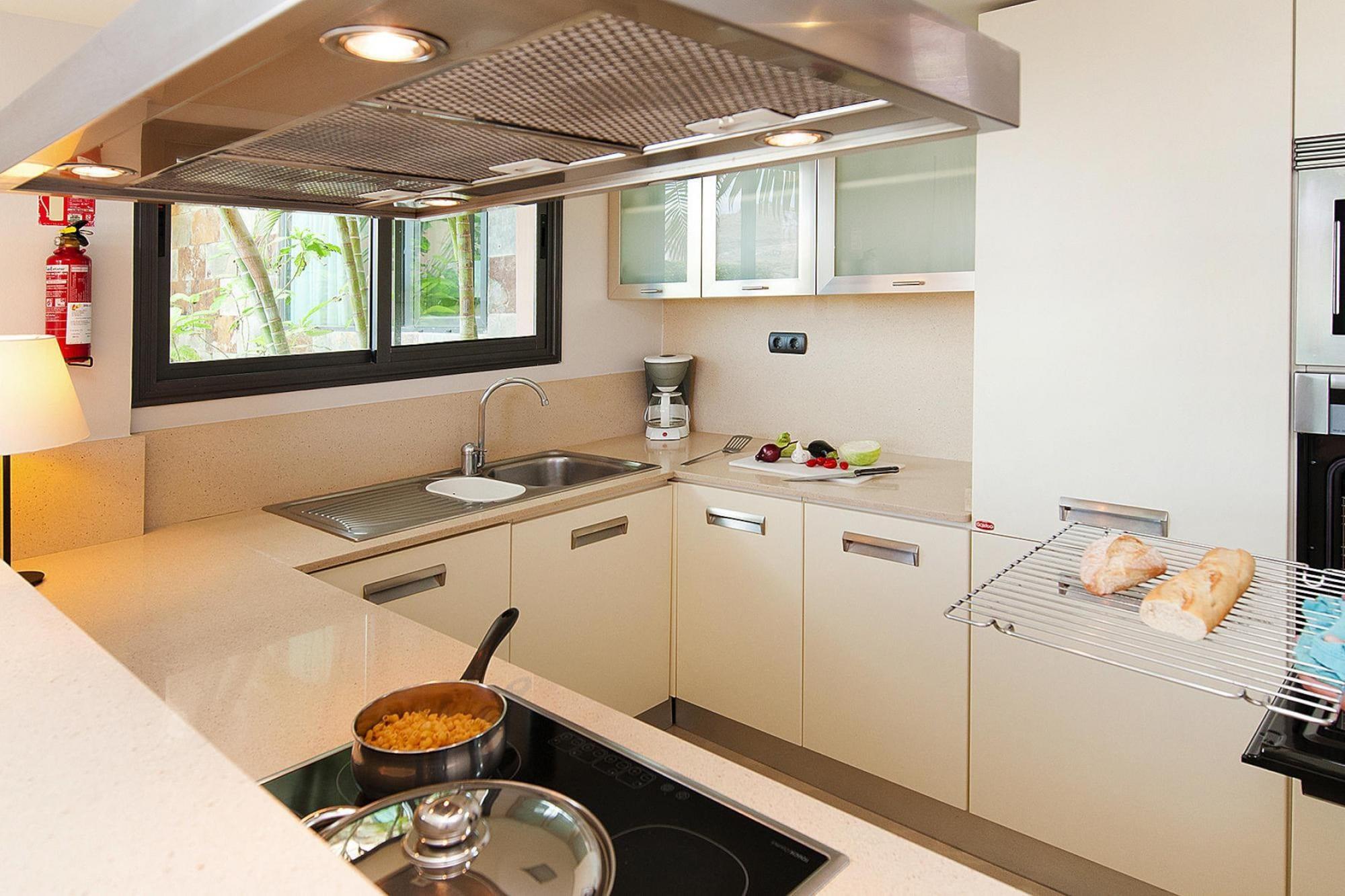 Stueetage: (åbent køkken(elkedel, brødrister, komfur(glaskeramisk), kaffemaskine, ovn, mikrobølgeovn, køle-fryseskab), stue / spisestue(Fjernsyn(parabol, Tyske TV-kanaler), DVD-afspiller)) På 1. etage: (Soveværelse med badeværelse(dobbeltseng, badekar, toilet), Soveværelse med badeværelse(enkeltseng, enkeltseng, bruser, toilet)) grill, bruser(udendørs), vaskemaskine, balkon, klimaanlæg, terrasse, have, havemøbler, solstole, parkering, swimmingpool(privat, udendørs, opvarmes), barnestol, baby crib(free)