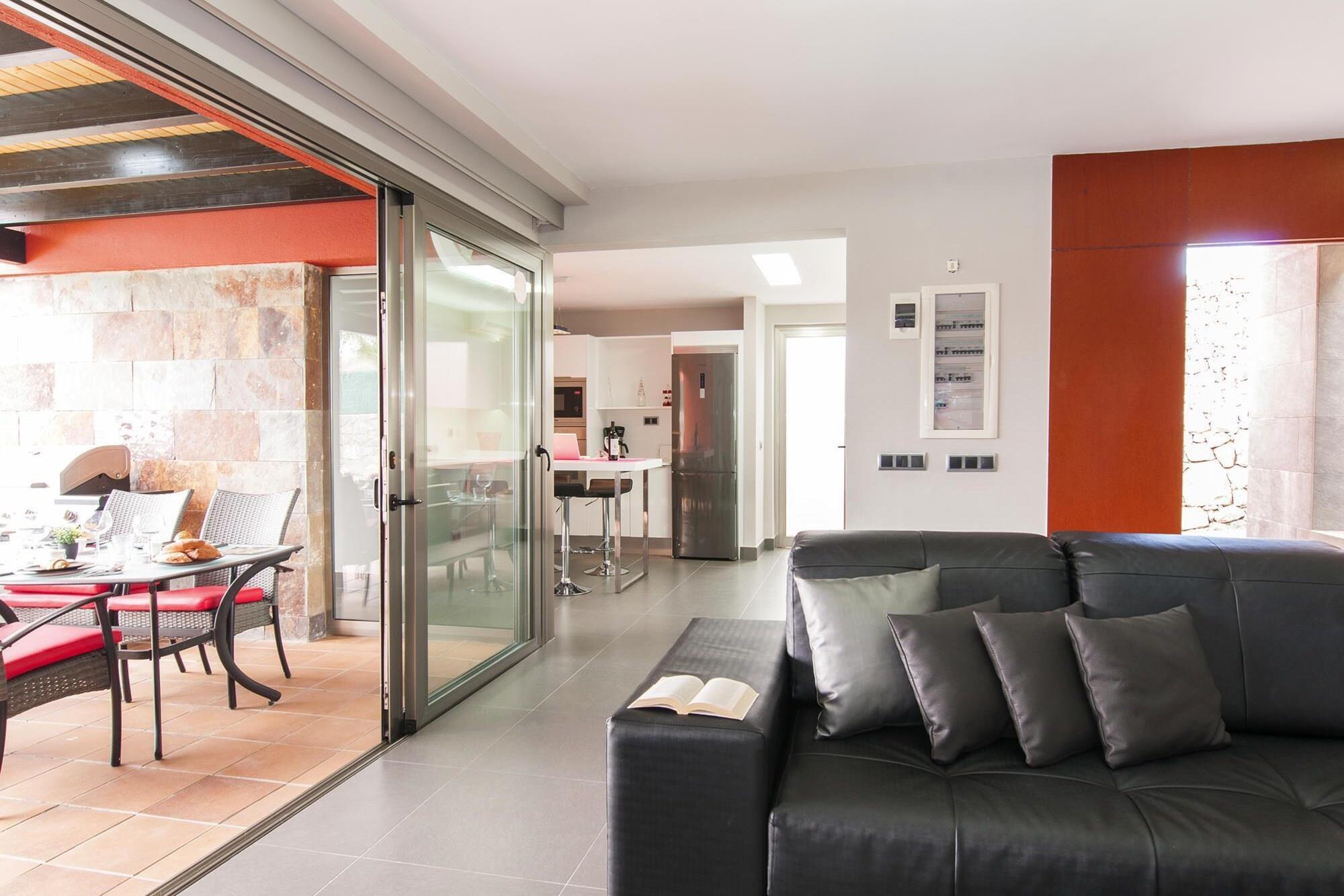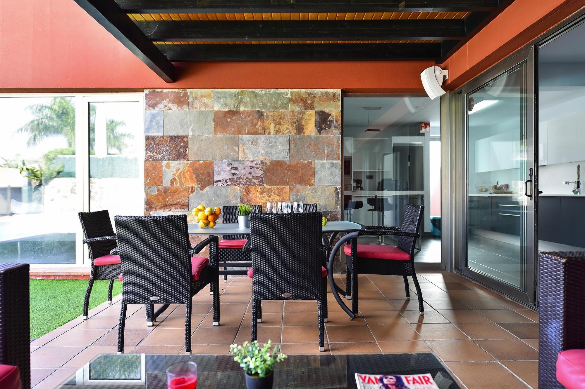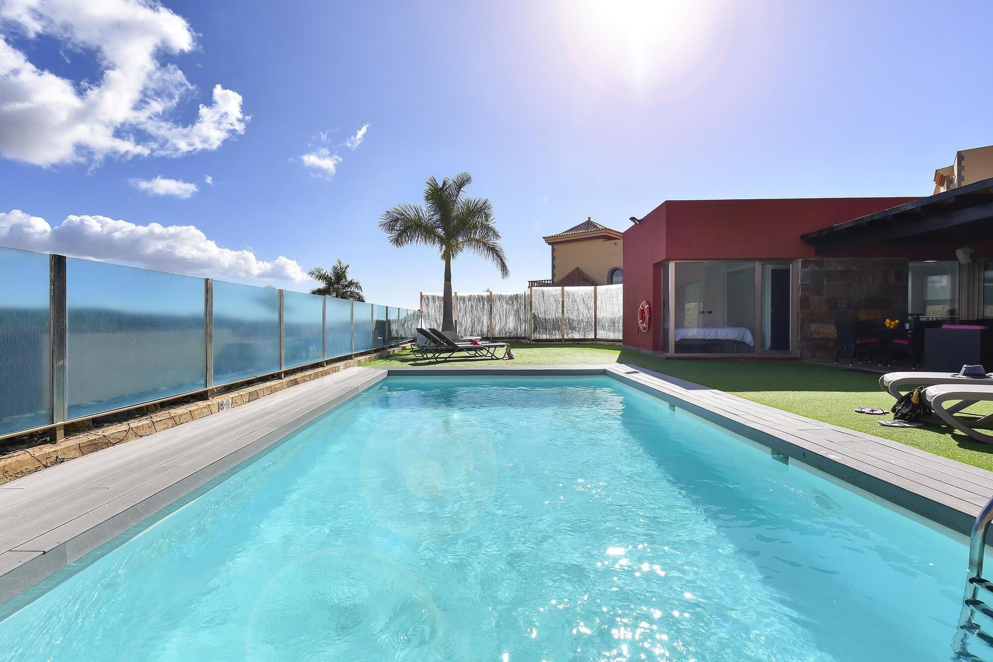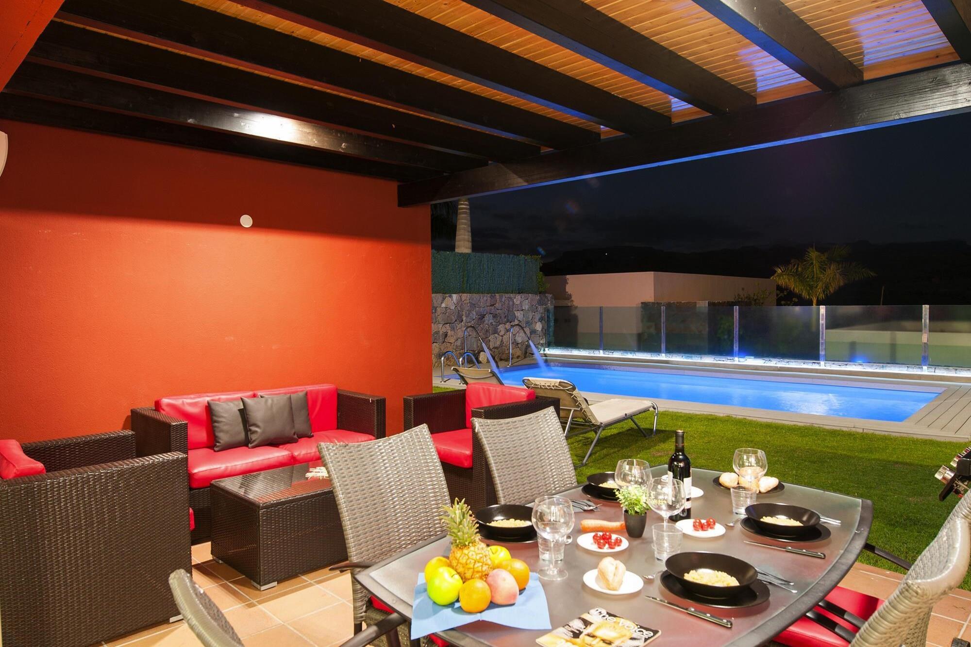 Stueetagen imponerer med sin moderne tærskel og en smuk have med en fantastisk udsigt. Der er ingen tvivl om, at en helt særlig ferie på Gran Canaria er garanteret. Nyd solen ved poolen eller på terrassen. Aircondition og satellit-tv, så intet står i vejen for et ubekymret ophold. Dette eksklusive boligkompleks i udkanten af golfresortet kommer i et unikt landskab i Maspalomas-bjergene. I umiddelbar nærhed kan du dagligt handle i supermarkedet, og i en restaurant vil du blive forkælet med kulinariske lækkerier. De populære turistcentre Maspalomas og Playa del Ingles kan nås på mindre end ti minutter i bil. Gæsterne i villaerne kan benytte de nordlige og sydlige golfbaner. Den sydlige golfbane (18 huller) er et par på 71 slag over 6.112 meter, den nordlige (18 huller) golfbane er 5.524 meter lang og har et par på 72 slag. Ekstra inkluderet: forbrugsbaserede energiomkostninger, sengelinned, håndklæder, slutrengøring og mellemrengøring, velkomstpakke, brødservice, 15 % reduktion af greenfee. Mobilitet: Ikke egnet til personer med begrænset mobilitet