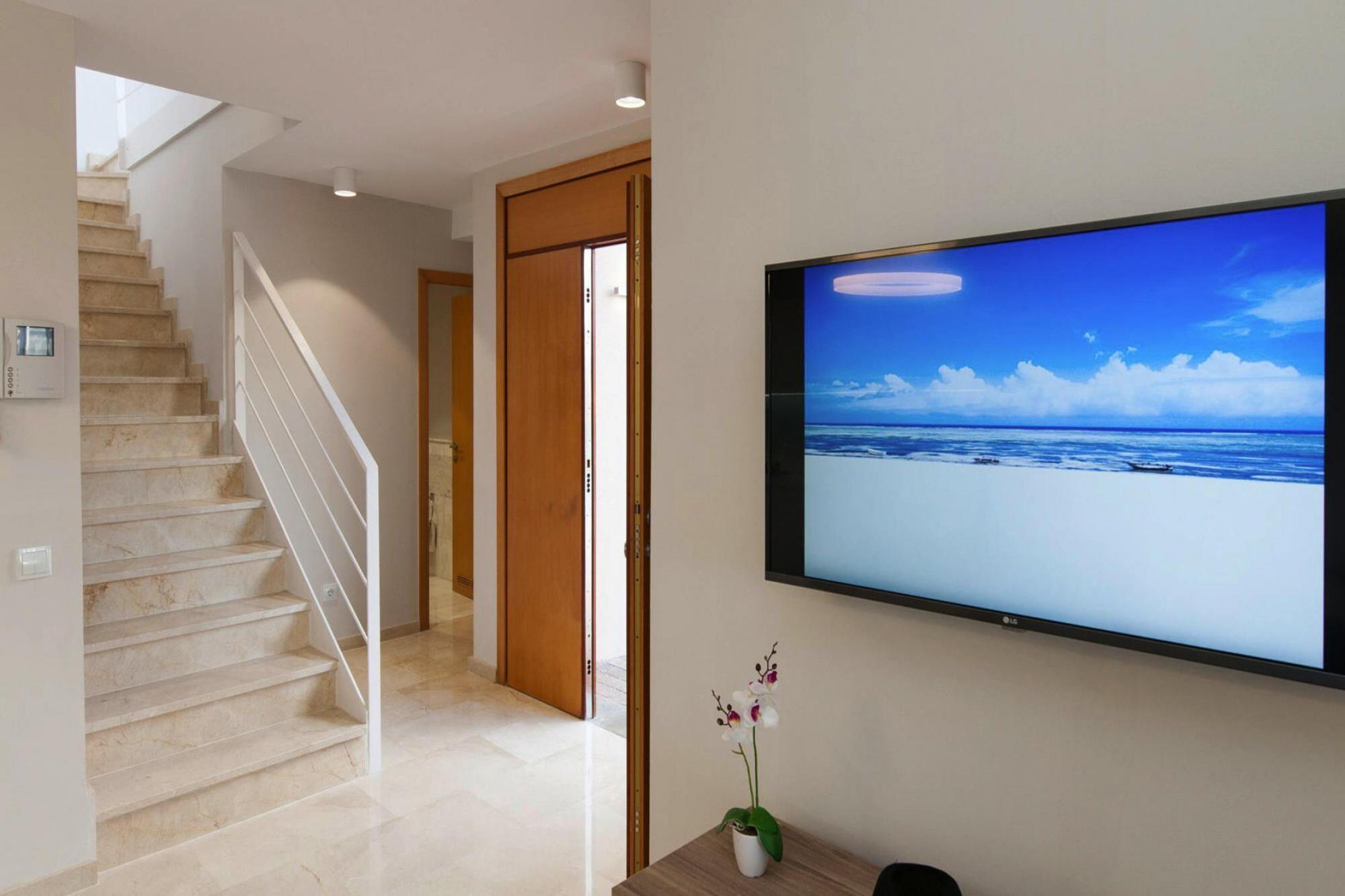 Åbent køkken(elkedel, komfur, kaffemaskine, ovn, mikrobølgeovn, opvaskemaskine , køle-fryseskab), stue / spisestue(Fjernsyn(parabol), DVD-afspiller), Soveværelse med badeværelse(dobbeltseng, badekar, toilet, føntørrer), Soveværelse med badeværelse(enkeltseng, enkeltseng, badekar, toilet, bidet, føntørrer), tørretumbler, vaskemaskine, varme, klimaanlæg, terrasse(overdækket), havemøbler, parkering, liggestole, swimmingpool(privat, udendørs, opvarmes), barnestol, baby crib(free)