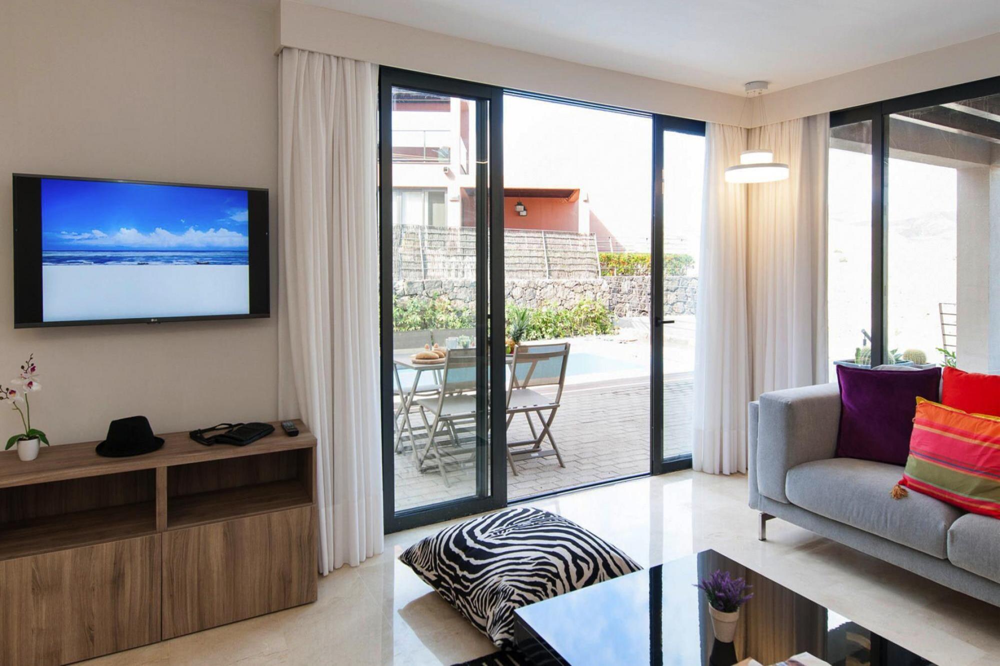 Dette feriehus med privat udendørs pool (opvarmet) byder på en storslået udsigt over golfbanen og ligger kun 15 minutters kørsel fra stranden. Nyd din ferie på Gran Canaria i den perfekt udstyrede villa og slap af på den overdækkede terrasse. Nyd den daglige brødleveringsservice. Dette eksklusive boligkompleks i udkanten af golfresortet kommer i et unikt landskab i Maspalomas-bjergene. I umiddelbar nærhed kan du dagligt handle i supermarkedet, og i en restaurant vil du blive forkælet med kulinariske lækkerier. De populære turistcentre Maspalomas og Playa del Ingles kan nås på mindre end ti minutter i bil. Gæsterne i villaerne kan benytte de nordlige og sydlige golfbaner. Den sydlige golfbane (18 huller) er et par på 71 slag over 6.112 meter, den nordlige (18 huller) golfbane er 5.524 meter lang og har et par på 72 slag. Villagæster får rabat på greenfee Ekstra inkluderet: slutrengøring og mellemrengøring (ugentlig), vaskeripakke, forbrugsbaserede energiomkostninger, levering af rundstykker, 15% rabat på greenfee, velkomstpakke.