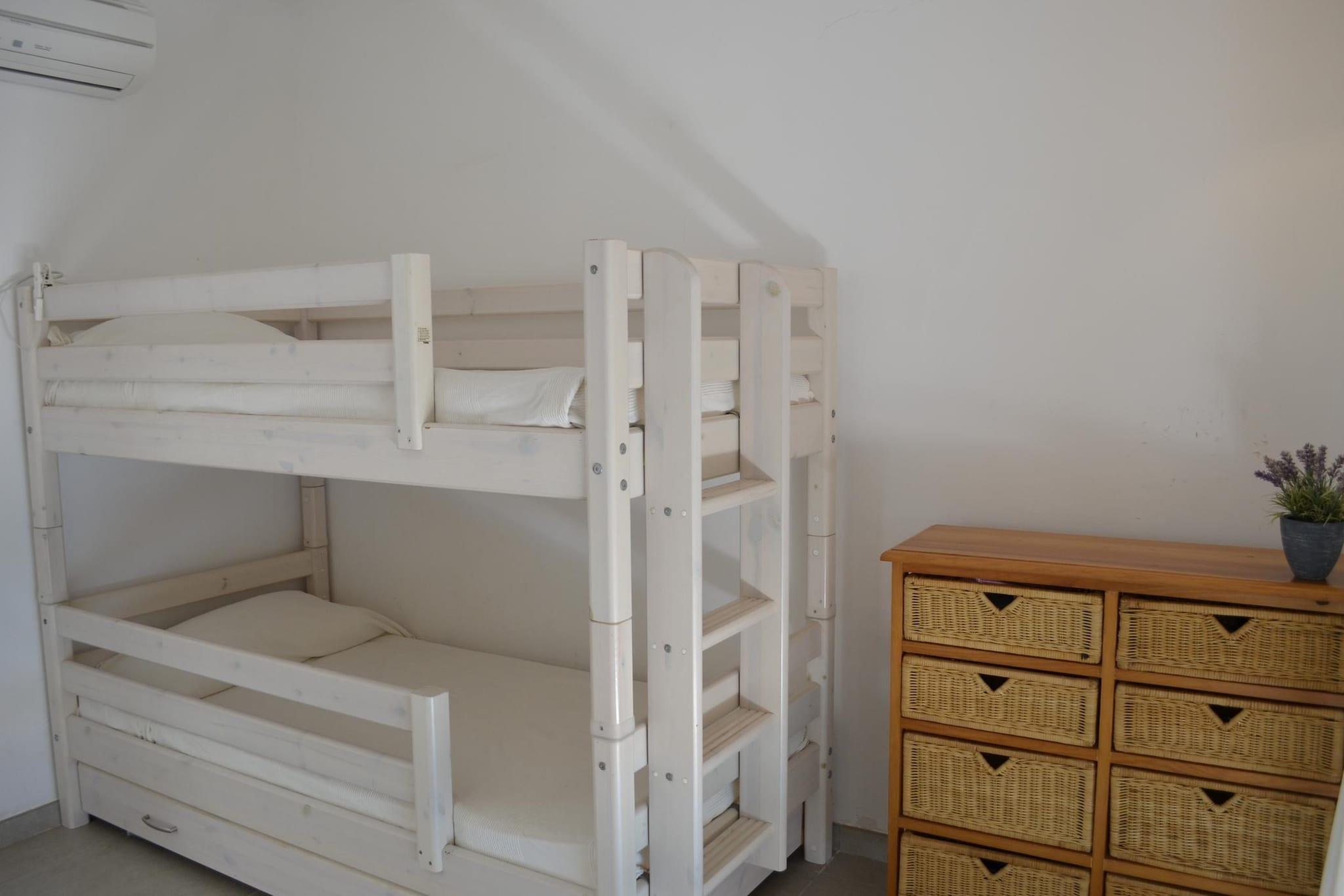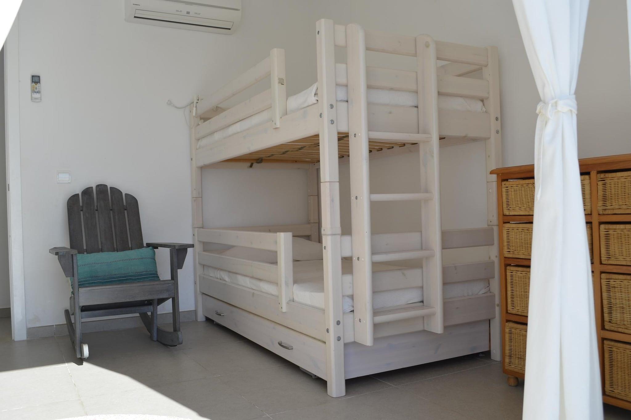 Stueetage: (Stue(Fjernsyn, sofahjørne, klimaanlæg), spisestue(spisebord), Køkken(komfur, emhætte, ovn, opvaskemaskine , køleskab), soveværelse(dobbeltseng), soveværelse(2x enkeltseng), soveværelse(køjeseng), badeværelse(bruser), badeværelse(bruser), badeværelse(bruser)) spisebord, terrasse, tagterrasse, grill, liggestole, swimmingpool(privat)