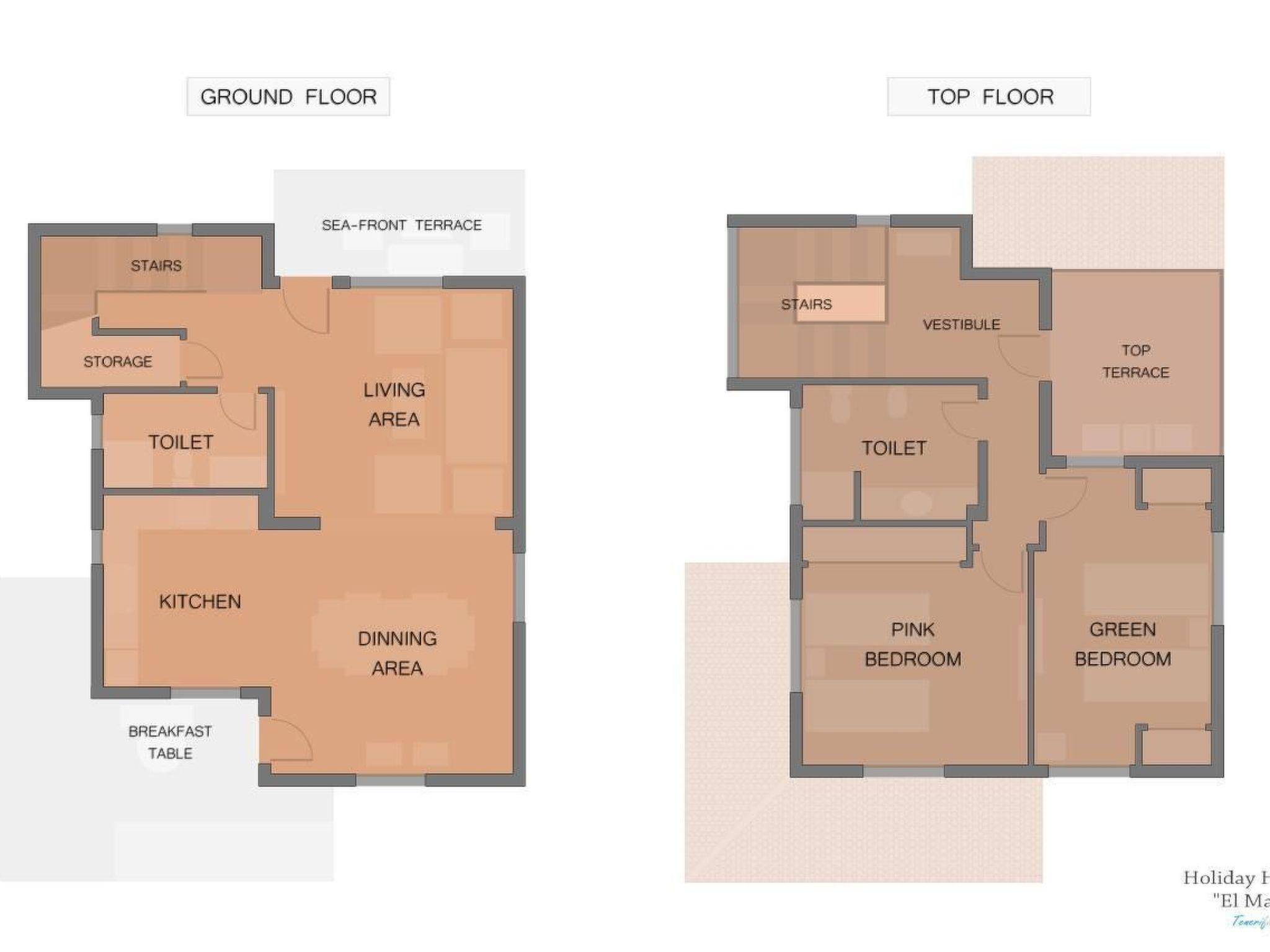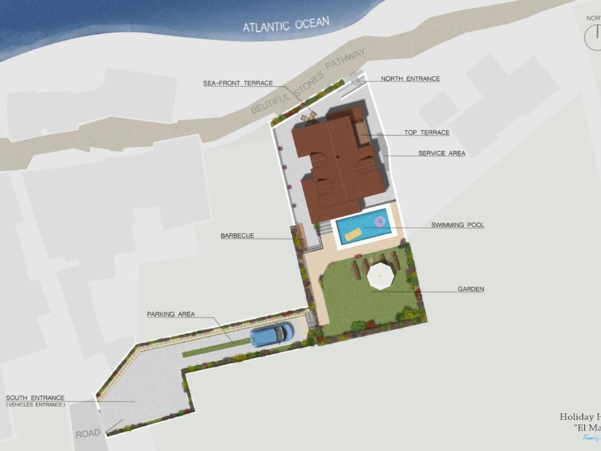 It has 2 floors. Upstairs. 2 bedrooms with 2 beds each one and 1 cradle, 1 bathroom and 1 terrace with views to the sea Downstairs. Open kitchen - Dinning room - Living room totally furnished and bathroom. It is surrounded by a wide terrace with views to the sea and to the mountains. It has barbacue, tennis table, swimming pool (24m2), garden (100m2) and parking (100m2) Habitable surface: 130m2 Total surface: 500m2 Equipment .4 individual beds, 1 extra bed and 1 crib for babe. Linen including. .Bidet, hairdryer, fan. Kitchen (vitro), oven, fridge with freezer, coffe maker, kettle, toastes, microwave. .Table and chair for babe, flat screen TV 32" cable/satellite, Washing machine, Ironing board with iron, hoover. Barbacue, garden furniture, sun loungers, sun umberella, garden shower.Privat swimming-pool, privat parking. .Internet Connection . wifi zone Additional services Sheets provided, Towels provided, Airport transport upon request. Extras This pretty Villa was built in August 2006. . A car is recommended. Between the Villa and the sea there is a gorgeous footpath of 2.5 kms. which borders the coast. 200 meters away you will find an area to swimg and at 1500 meters there is a beach called "Las Aguas", where there is a public swimming pool and restaurants serving fish, meat, rice, salads... It is located in the northern zone of the island on the sea coast in the district of LA RAMBLA a 3 kms. from the villaje San Juan de la Rambla, 15 kms. from Puerto de la Cruz, 35 kms. from Tenerife North airport and 85 kms. from the South airport. The district of El Rosario has about 150 inhabitants. It is in an agricultural pretected zone and is very quiet with pretty views of the sea and mountains. It is sonny 80 percent of the year.Short descriptionOther : Non-smoking houseShort description 1Number of kitchens : 1Other rooms : Kitchen, dining room and living room unitedLiving room 1Other living room features : Flat-screen TV 32 inchSurroundingNearby sports facilities : FishingGarden and outdoorGarden facilities : GrillOn-site leisure facilities : Swimming poolService benefitsService facilities (may incur additional costs) : Transfer service (airport etc)