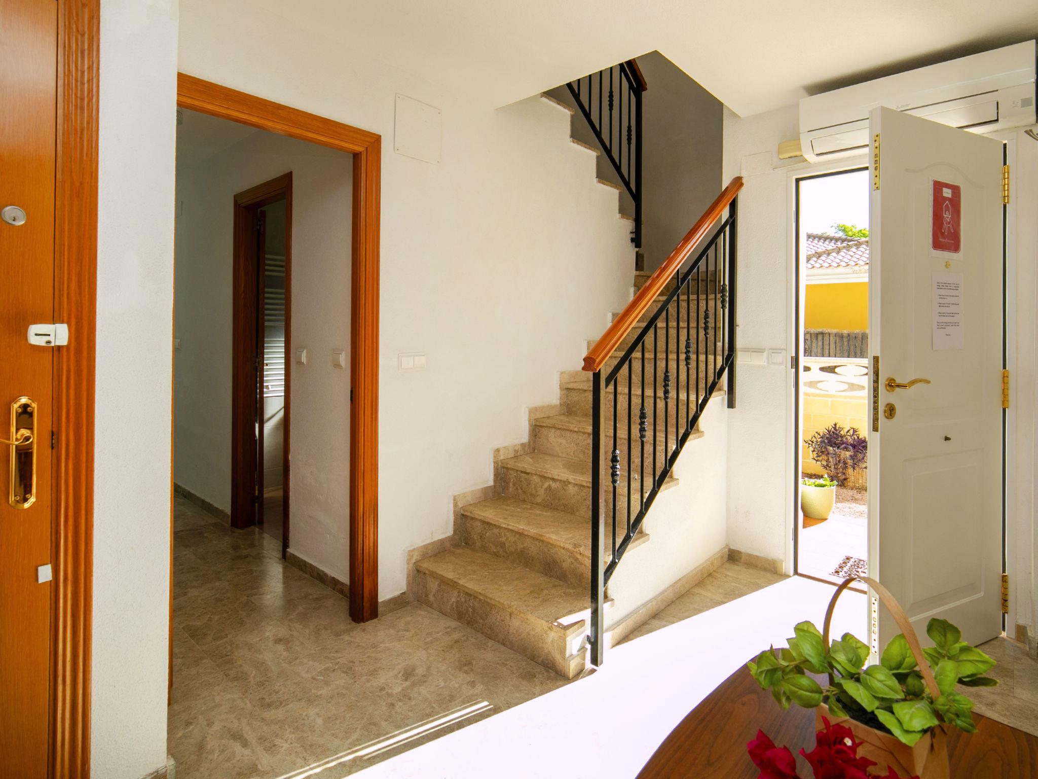 "Bonalba Golf, Urb. Los Naranjos", 4-room house 168 m2 on 2 levels. Spacious and bright, very comfortable and tasteful furnishings: living/dining room 31 m2 with open-hearth fireplace, digital TV, DVD, electric heating, gas heating, air conditioning and forced-air heating. Exit to the patio, to the swimming pool. Open kitchen 10 m2 (4 hot plates, dishwasher, toaster, kettle, microwave, freezer, electric coffee machine). Exit to the patio, to the swimming pool. Shower/WC. Boiler (50 litres). On the lower ground floor: 1 room 9 m2 with 2 beds (90 cm, length 200 cm), shower/WC. 2 rooms 8 m2, each room with 2 beds (90 cm, length 190 cm). 2 showers/WC. Electric heating. Balcony 6 m2, large patio 30 m2, large patio 120 m2, garden, lawn 34 m2. Terrace furniture, deck chairs (6). View of the garden, the countryside and golf course. Facilities: washing machine, safe, iron, hair dryer. Internet (WiFi, free). Parking. Maximum 2 pets/ dogs allowed. EGVT-593-A. AT-439801-A // Reg. Nr.: ESFCTU00000302400073367300000000000000000AT-439801-A5