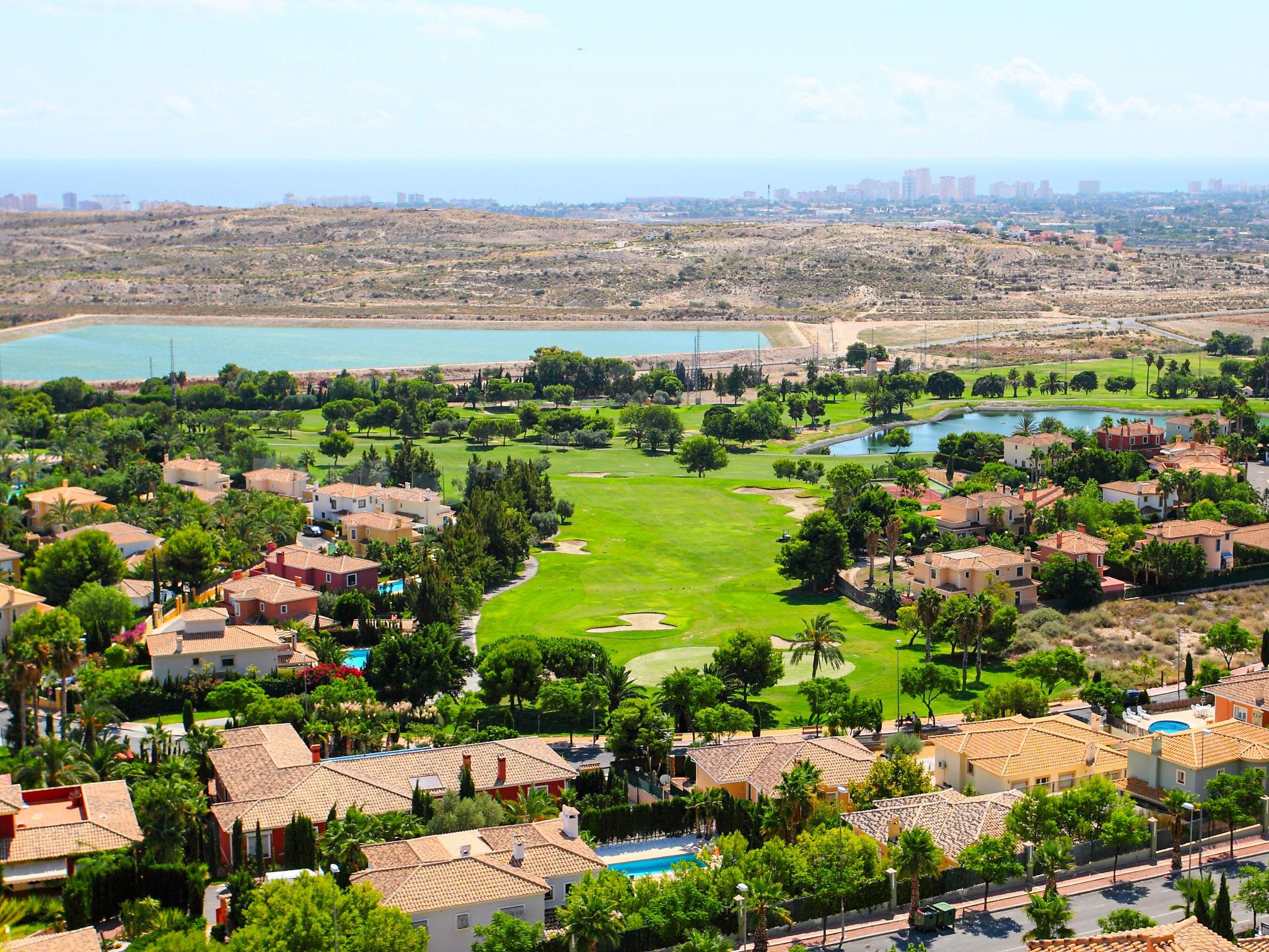 Campo de Golf Bonalba: Large, modern, comfortable resort "Bonalba Golf, Urb Los Naranjos", 2 storeys. On the outskirts, 5 km from the centre of San Juan-Campello, in the district Bonalba Golf, in a quiet, sunny position, 5 km from the sea, 5 km from the beach, on the golf course. For shared use: property (fenced), large garden with lawn 35 m2, swimming pool (4 x 7 m, depth 110 - 190 cm, seasonal availability: 01.Jun. and 30.Sep.). Tennis (extra). Private: beautiful garden 450 m2 (fenced), swimming pool (seasonal availability: 01.Jan. - 31.Dec.). Outdoor shower, patio, pergola, garden furniture, barbecue. In the complex: restaurant, bar, WiFi, spa area (all extra), shopping facilities. Parking at the house. Shop, grocery, restaurant 300 m, bus stop 300 m, railway station "Alicante" 10 km, sandy beach "San Juan/El Campello" 5 km. Sports harbour 10 km, golf course (18 hole), tennis 100 m. Nearby attractions: Terra Mitica 38 km, Terra Natura 38 km, Aqualandia 38 km, Alicante 19 km, Benidorm Palace 38 km, Aeropuerto de Alicante 30 km. Please note: car recommended. The complex has night security. Additional accommodations can be booked. Property ref. ES9749.303.1 is situated on the same property.