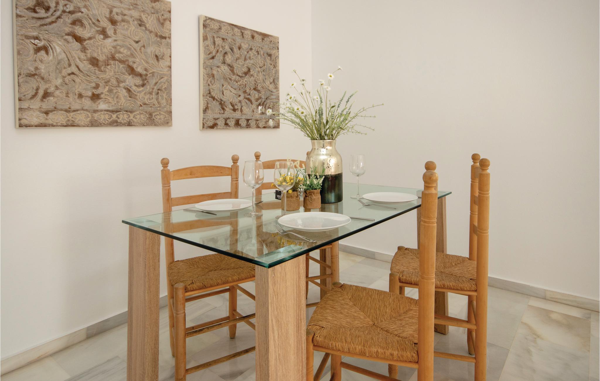 Denne moderne toværelses ferielejlighed ligger i Jardines de Sabinillas komplekset i Manilva, centralt beliggende i byen og i gåafstand fra stranden og alle faciliteter i området. Lejligheden ligger på 4. sal i en ejendom med elevator. Den består af en stilfuld stue spisebord og stole, 2 sofaer og udgang til sydvestvendt terrasse. Det moderne køkken er fuldt udstyret. I boligen er der Wi-Fi og aircondition i stuen og soveværelserne. I det store soveværelse er der en dobbeltseng og indbyggede garderobeskabe og udgang til en privat terrasse. Det andet soveværelse har 2 enkeltsenge og garderobeskabe. Begge soveværelser indgang til badeværelse med badekar med bruser. Costa del Sols vestside er et godt udgangspunkt for sightseeingture til Gibraltar og Sotogrande. I Duquesa er der en smuk havn, og ved Algeciras kan du dyrke vandsport på de smukke Tarifastrande.