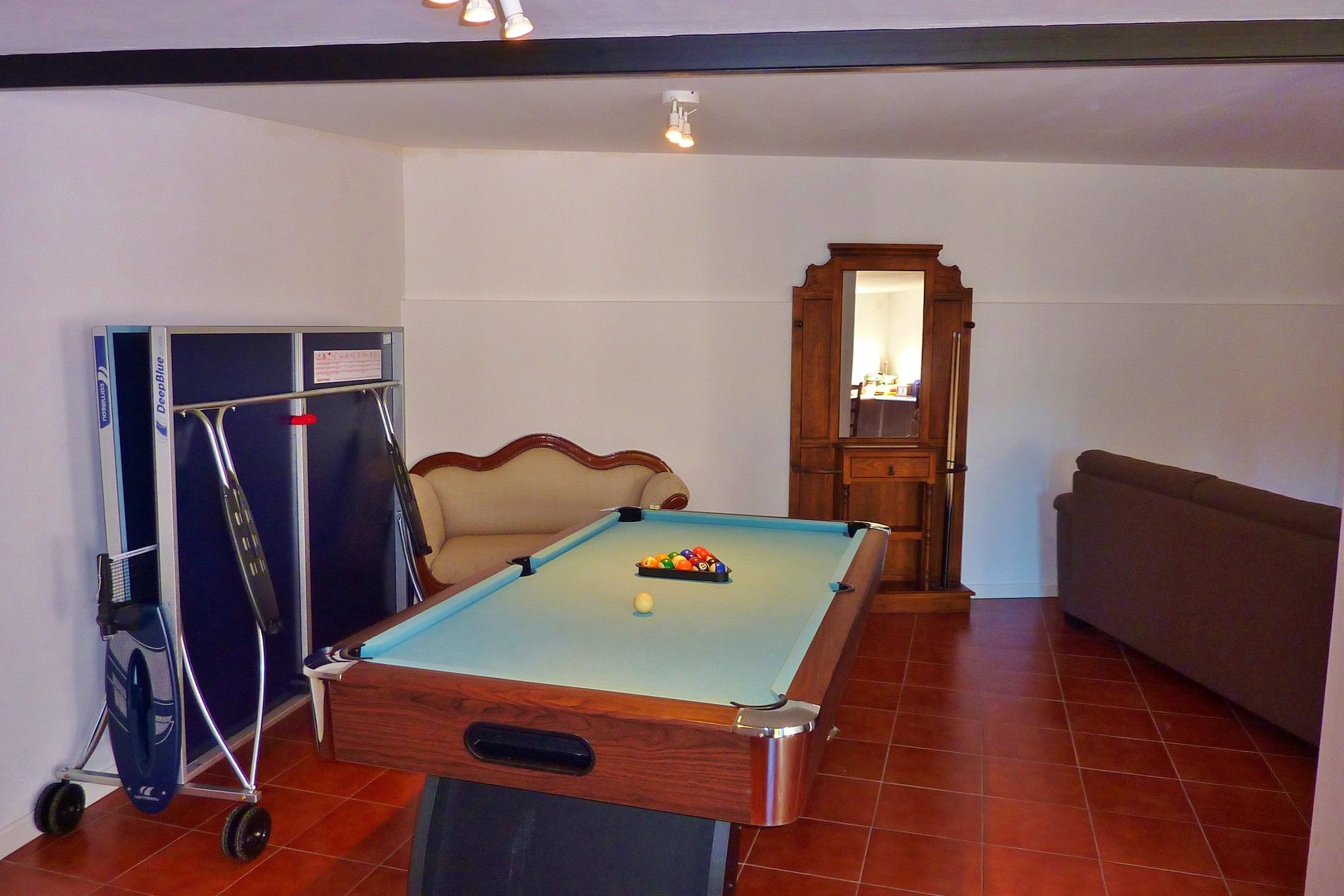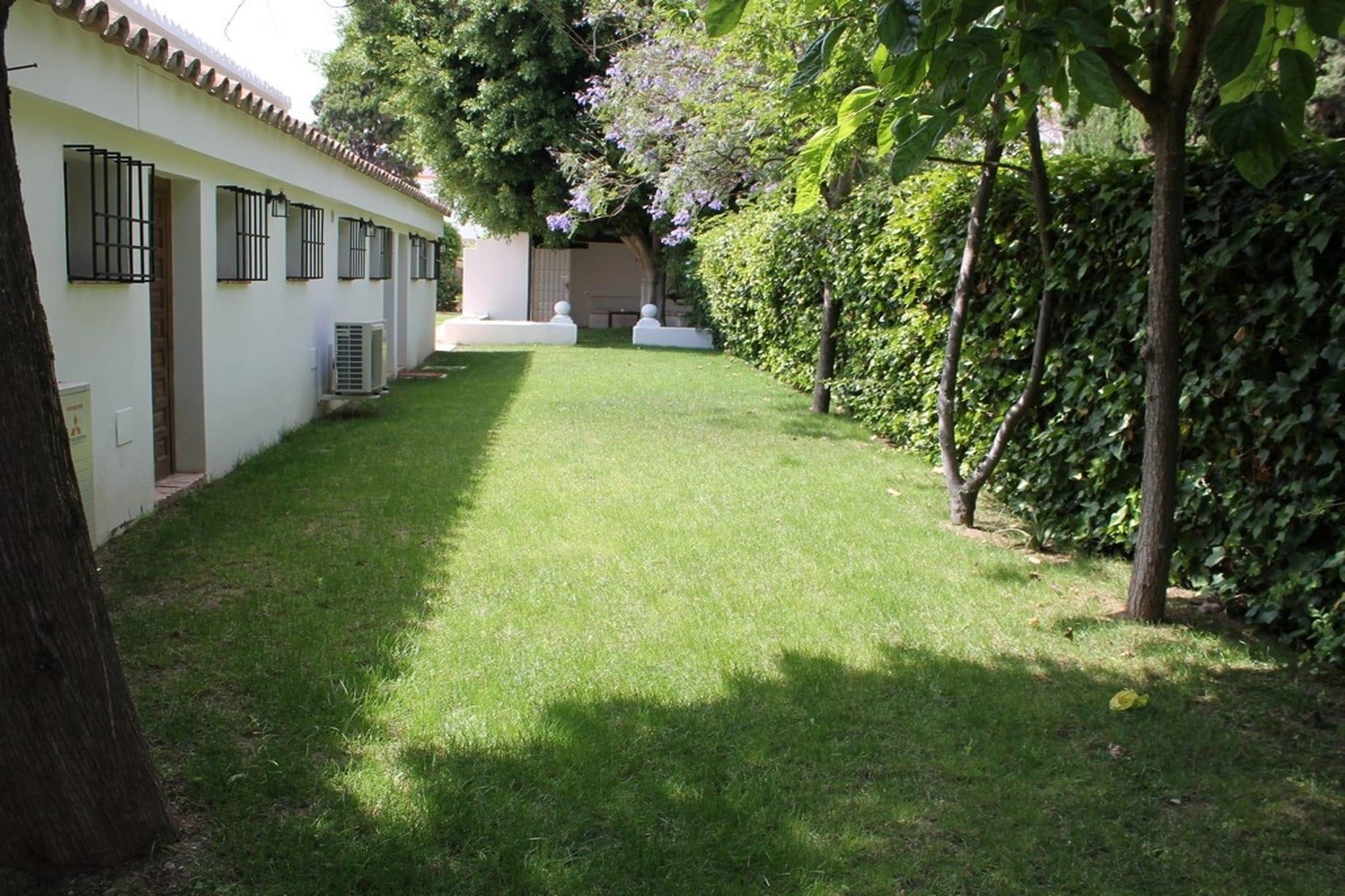 Rummelig familievilla Denne andalusiske villa i San Pedro de Alcántara har komfortabel plads til op til 15 gæster fordelt på 8 soveværelser, hvilket gør den ideel til store familier eller grupper. Ejendommen har en opvarmet, overdækket privat pool, en indhegnet have med grillfaciliteter og et spillerum med pool og bordtennis. Mange sammenhængende værelser skaber et perfekt miljø til familiesammenkomster, mens aircondition og gulvvarme sikrer komfort året rundt. Overdækkede terrasser tilbyder skyggefuld afslapning og udsigt over det omkringliggende Costa del Sol-landskab. Adgang til strand og aktiviteter Villaen ligger kun 800 meter fra stranden og 2,7 km fra Puerto Banús og tilbyder nem adgang til kystaktiviteter, lige fra solbadning og svømning til vandsport. Golfentusiaster kan nyde nærliggende golfbaner, og villaens beliggenhed giver også mulighed for naturskønne kystture eller dagsture til Marbellas centrum, kun 10 km væk. Bekvemmeligheder i nærheden Restauranter og caféer ligger 200 meter væk, mens supermarkeder og dagligvarer ligger inden for 500 meter. Motorvej A7 ligger kun 400 meter væk, og Málaga Lufthavn ligger 60 km væk for problemfri ankomst. Praktiske faciliteter inkluderer flere køkkener, terrasser, et legerum og rigelig parkering.