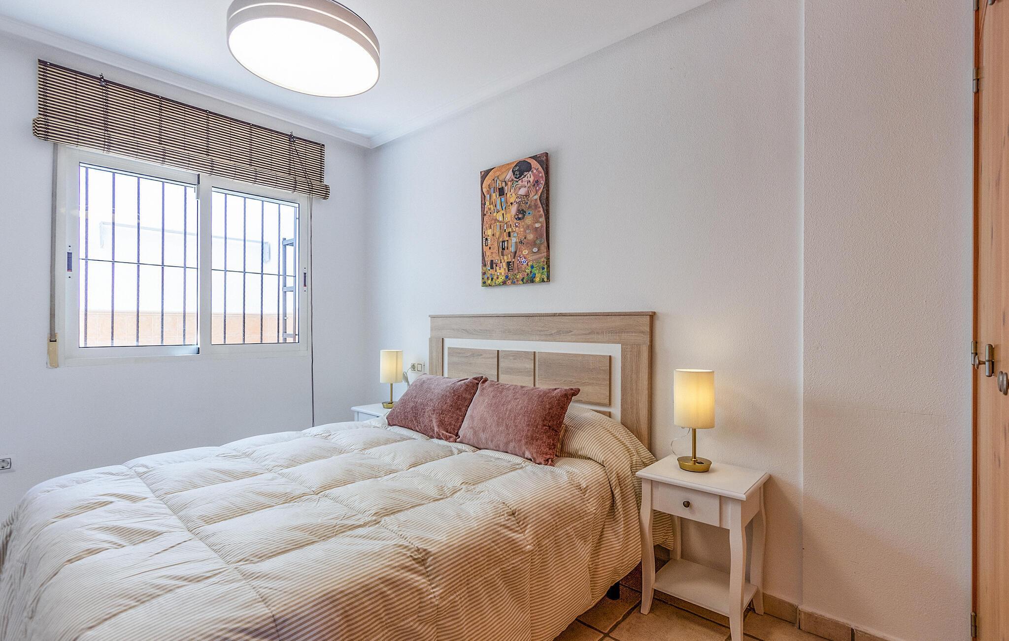 Ikke langt fra berømte Mar Menor venter dette komfortable rækkehus på jer til et uforglemmeligt ophold i Spanien. Den flotte indretning og den vidunderlige udsigt fra verandaen lægger op til masser af afslappende stunder. Nyd morgenmaden rundt om spisebordet i opholdsstuen eller udendørs. Det hyggelige sofahjørne giver jer et godt sted at læne jer tilbage efter dagens program, mens den indbydende fællespool sørger for sjov og afslapning til familien hele dagen.
