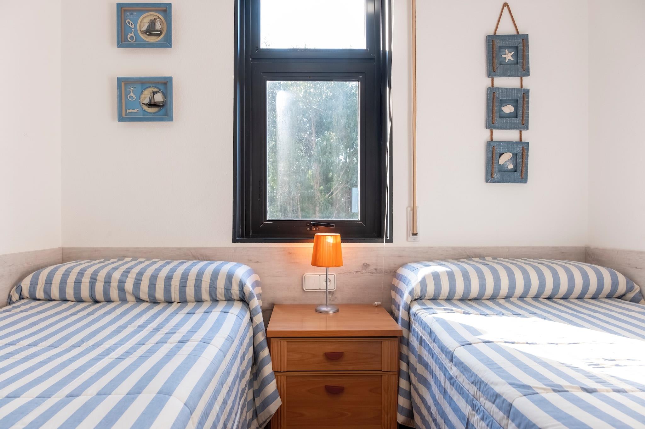 Dette feriehus i Pedras Negras-kvarteret har terrasse og udsigt til haven med den fælles swimmingpool. Det er ideelt til solferier med familie eller venner. Denne bolig ligger 500 m fra A Barrosa og 23 km fra basilikaen Santa María. Du kan tage smukke billeder til dine konti på sociale medier. Ved Praia Pedras Negras (500 m), Praia Buraca da Alondra (600 m) og Praia da Lanzada (4 km) kan du tilbringe dagen afslappet på stranden. Et besøg på Isla de la toja (10 km) er også meget værd. Feriehuset er udstyret med et tv og et fuldt udstyret køkken. Parkering er tilgængelig, og du kan slappe af på den komfortable private terrasse. Poolen (åben fra begyndelsen af juni til begyndelsen af september) Tennisbanen og børnenes legeredskaber er til fælles brug.