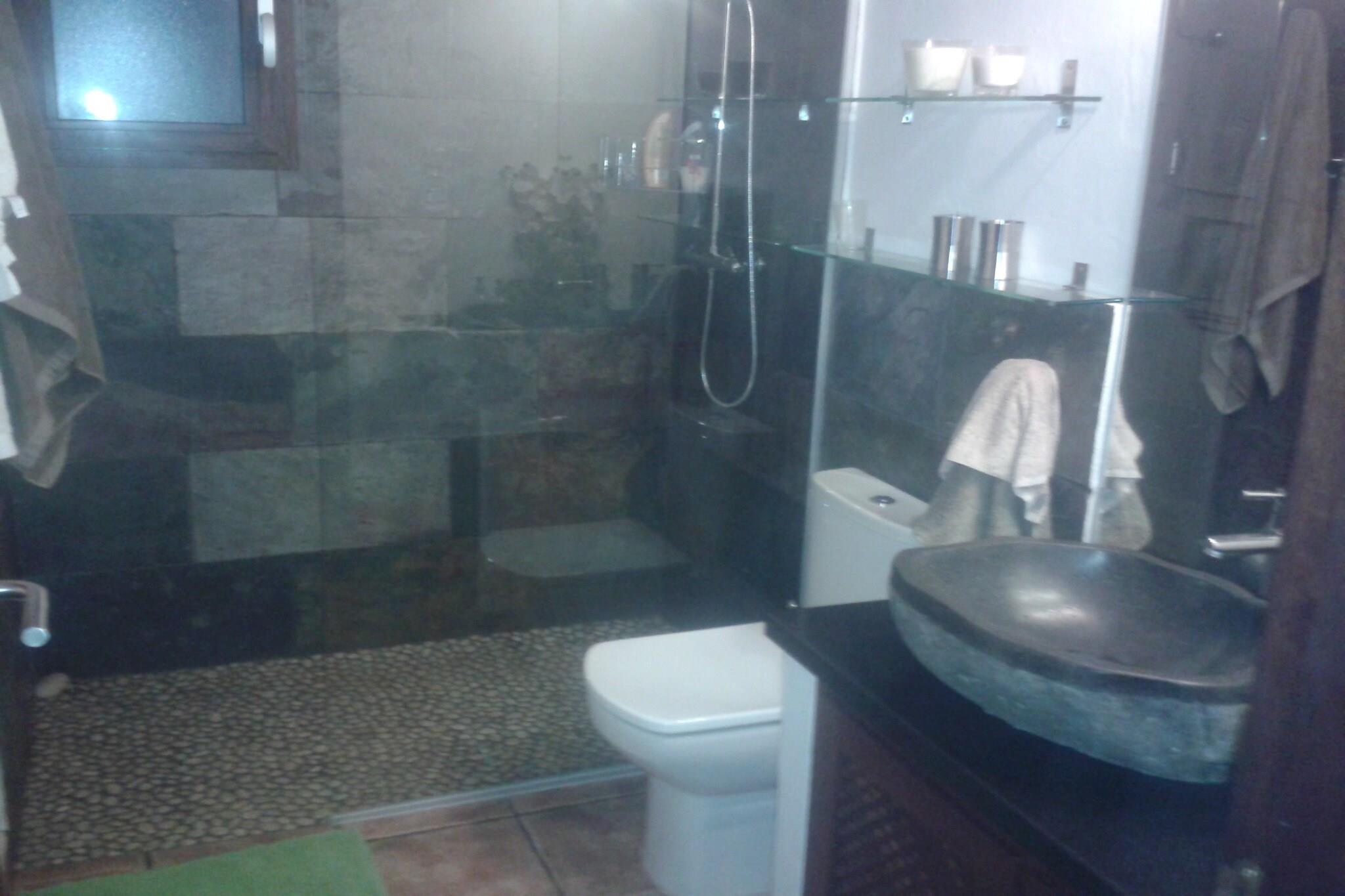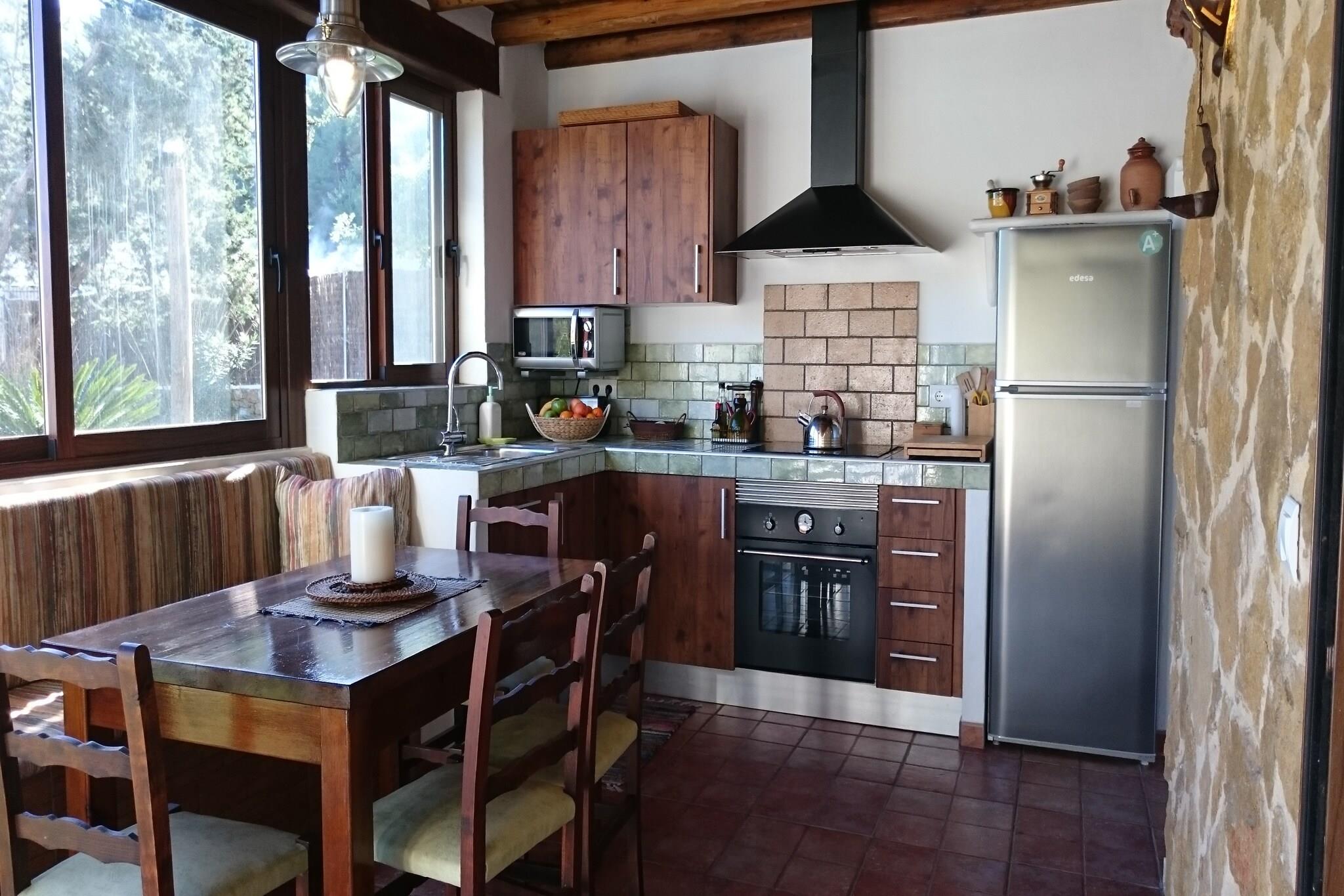 Stue(Fjernsyn(parabol), sofahjørne), Køkken(ovn, mikrobølgeovn, opvaskemaskine ), soveværelse(dobbeltseng(160 x 200 cm), klimaanlæg), badeværelse(bruser, toilet), vaskemaskine, have(indhegnet), grill, swimmingpool(privat, 9 x 4 m.)