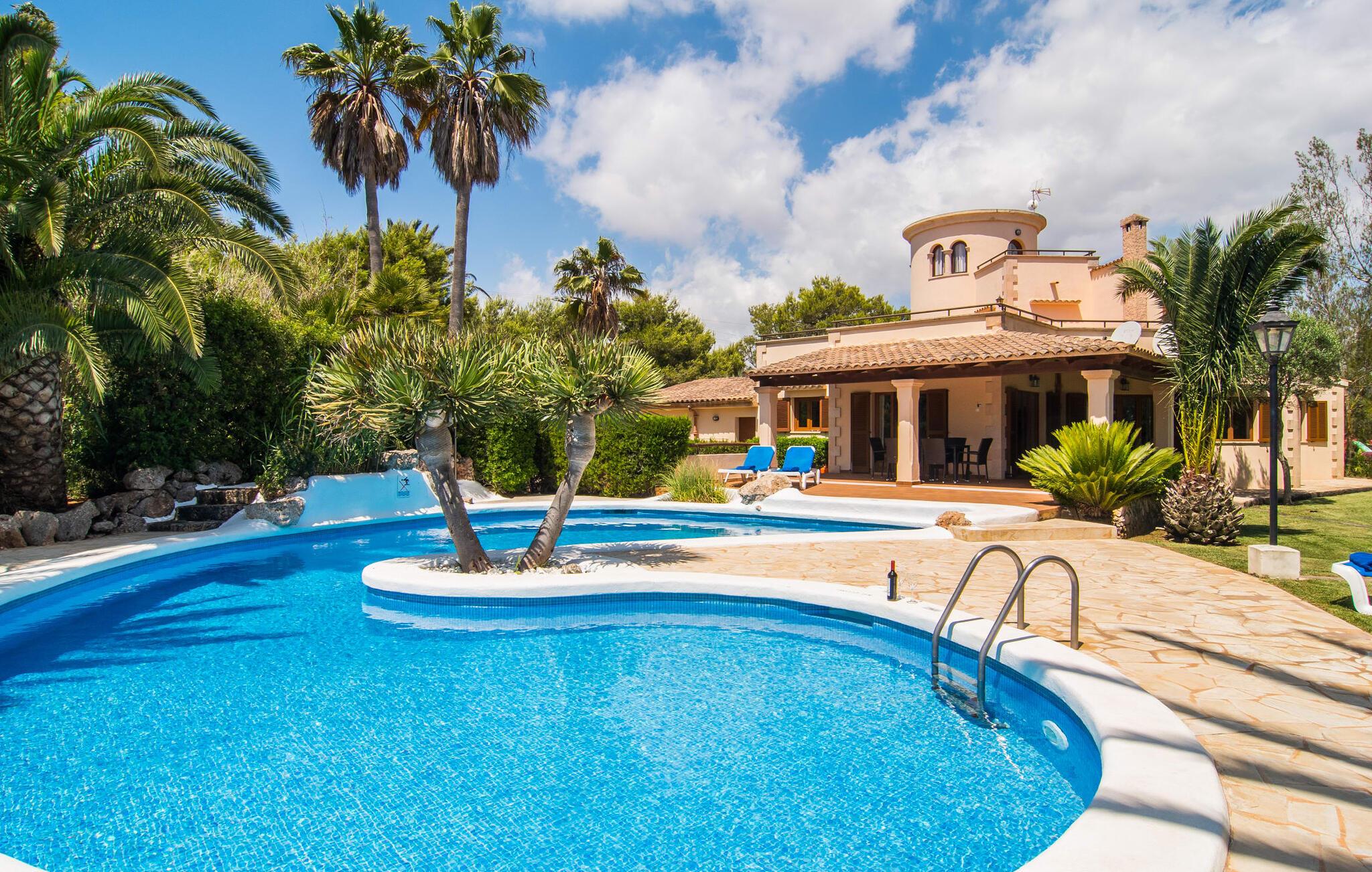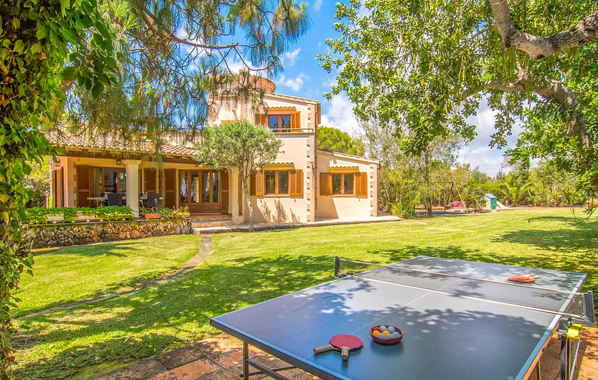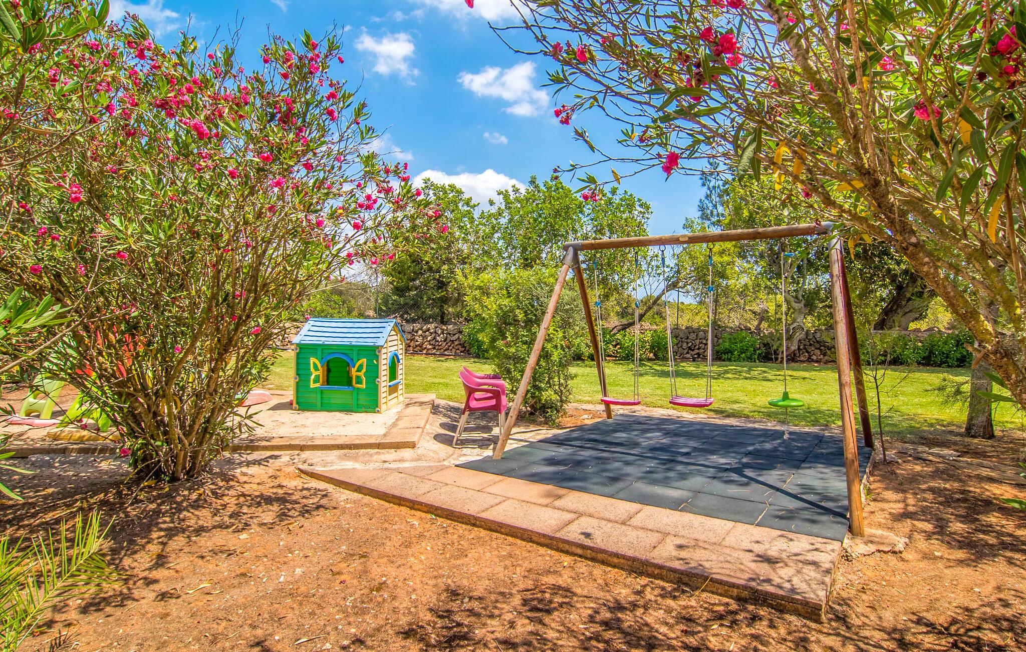 Mallorca er mere end bare en solrig ø i Middelhavet. Mallorca er en livsstil, som I hurtigt vil opdage i denne rustikke, charmerende stenvilla nær S'Horta. Den idylliske have byder jer velkommen med en lille palmeoase, der straks vil løfte jeres humør. Poolen ligner en bølge og er omgivet af terracotta-fliser og sandsten - snup jeres yndlingsdrink og svæv bare gennem dagen. Haven er så smukt anlagt, at I hurtigt kan slappe af og genoplade jeres solenergi på en af poolterrasserne. Børn kan lege på gyngen eller spille en lille bordtenniskamp, som selvfølgelig også vil bringe minder frem for nogle voksne. Under den overdækkede terrasse kan I nyde frisk frugt eller lækker fisk, mens I tager en siesta og føle jer nærmest som en rigtig øboer. De søde træskodder gør deres bedste for at udstråle en naturlig spansk flair. I vil føle jer hjemme, så snart I træder ind i villaen. Træbjælkerne i loftet og den rustikke indretningsstil vil vinde jeres hjerte på ingen tid. Alt her er, som det skal være i en rigtig villa. Naturmaterialer af høj kvalitet i subtile naturlige toner kendetegner husets stærke karakter. I stueetagen, lige ved siden af spisestuen, er der køkken med langbord, som er et godt sted for lange samtaler. Nyder I aftenen foran den knitrende ild efter middagen, har I gjort alt rigtigt. Et af soveværelserne er placeret direkte i det lille tårn, der rejser sig over villaen. To badeværelser og to ekstra soveværelser er også i stueetagen. Takket være den optimale rumindretning har op til ti gæster plads nok til at slappe af, selv når huset er fyldt. På øverste etage, som også har en separat indgang, er der yderligere to soveværelser og et badeværelse. I umiddelbar nærhed af denne helt rolige villa, med parkering lige ved siden af huset, vil I opleve en vidunderlig, uberørt natur og det krystalklare hav, som kan nås til fods på ingen tid. Hvorfor ikke tage en afstikker til det ugentlige marked i Santanyí, ca. 15 km væk - også muligt på cykel. En lang historie giver denne by en følelse af magi og eventyr med sine gyldne sandstensbygninger. Hvis I ønsker at forbedre jeres handicap, skal I blot besøge golfbanen, kun 7 km væk. I kan opleve romantiske øjeblikke på stranden i Cala D'Or, på sandstranden omkranset af fyrretræer, mens I nyder den endeløse vidde og lyden af havet. I slutningen af jeres ferie vil I indse, at I har lært Mallorcas autentiske og originale sjæl at kende. Den typiske mallorcanske villa "Sanau D'Or" har valgt et smukt lille sted på øen Mallorca. Det ligger i sydøst - hvor masseturismen er langt væk, og hvor autentiske restauranter smelter sammen med indbydende barer. Cala D'Or-bugten ligger mindre end 1 km væk, hvilket gør den fyrretræsklædte gåtur til stranden til en ren sansefornøjelse. Bemærk venligst, at denne ejendom ikke accepterer ungdomsgrupper eller polterabender. En ungdomsgruppe på denne ejendom består af personer på 25 år eller derunder. Book ikke denne ejendom, hvis I er en ungdomsgruppe eller polterabend, da jeres reservation vil blive afvist, når den er booket, hvilket også kan være tilfældet ved ankomst til ejendommen eller under jeres ophold, og I vil ikke modtage en refusion. Aircondition er inkluderet i denne ejendom mellem 8:00 og 8:00. I vintermånederne er varme inkluderet i prisen for 10 timer pr. Gebyret afregnes herefter kontant på stedet.