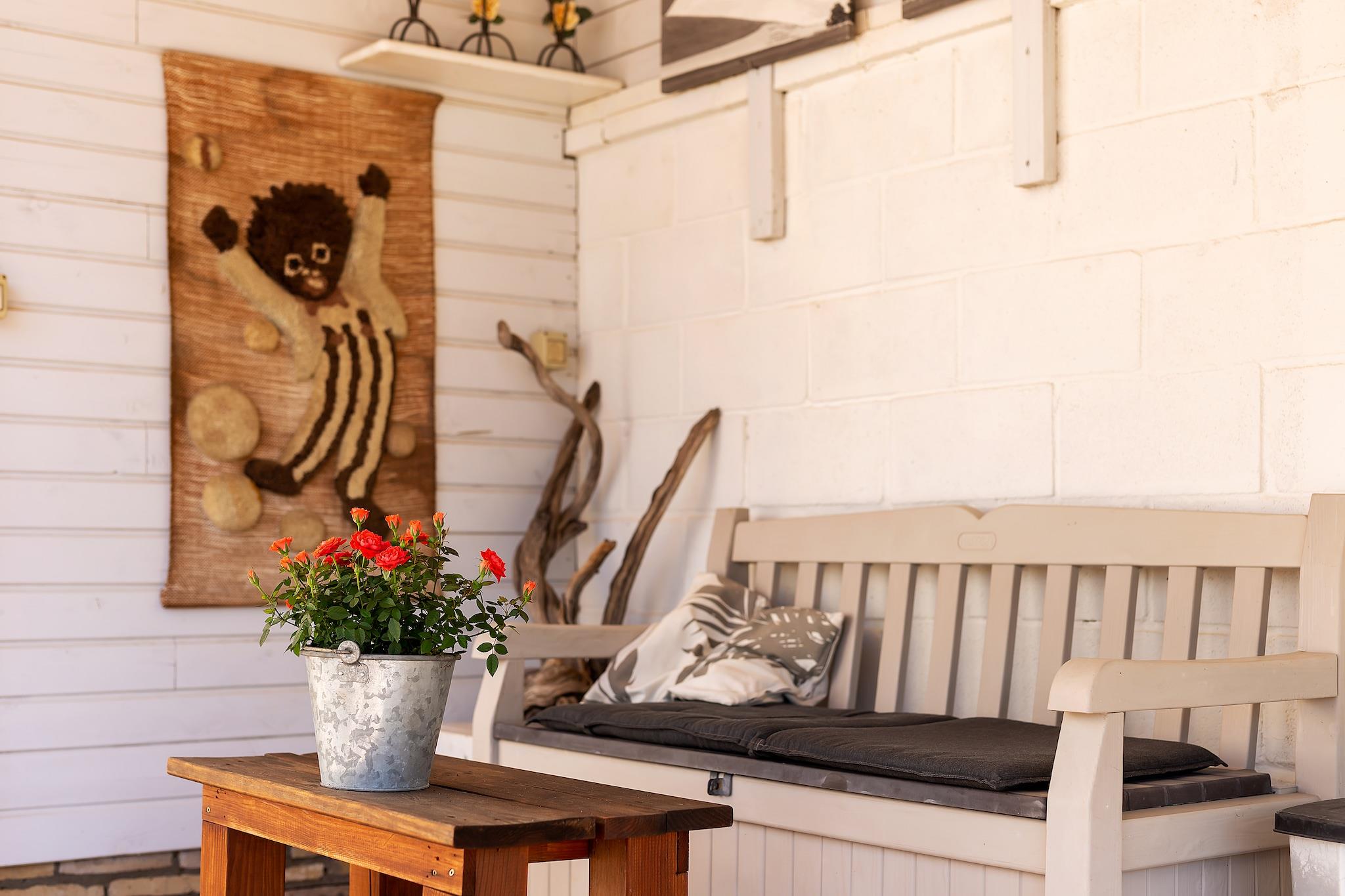 Stueetage: (åbent køkken(komfur(Komfur med fire kogeplader, glaskeramisk), mikrobølgeovn, opvaskemaskine , køle-fryseskab), stue / spisestue(Fjernsyn(parabol, Hollandske TV-kanaler, Internationale TV-kanaler), terrasse), soveværelse(enkeltseng(80 x 200 cm)), soveværelse(dobbeltseng(160 x 200 cm), badekar med bruser, håndvask, toilet, bidet), soveværelse(dobbeltseng(160 x 200 cm)), badeværelse(bruser, håndvask, toilet, bidet)) bruser(udendørs), vaskemaskine, varme, terrasse(privat), havemøbler, grill, swimmingpool(privat, 8 x 4 m.), barneseng(på anmodning)
