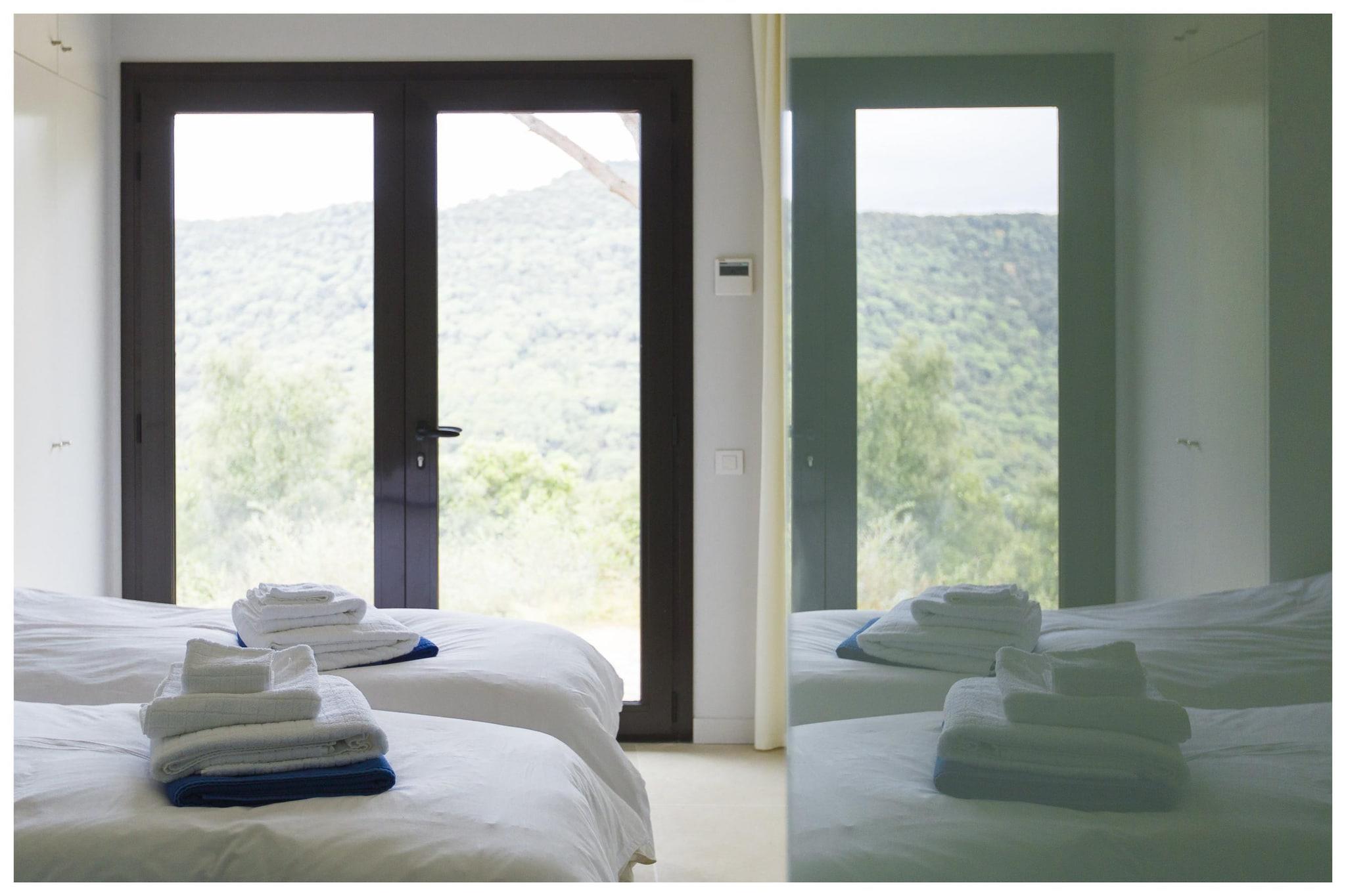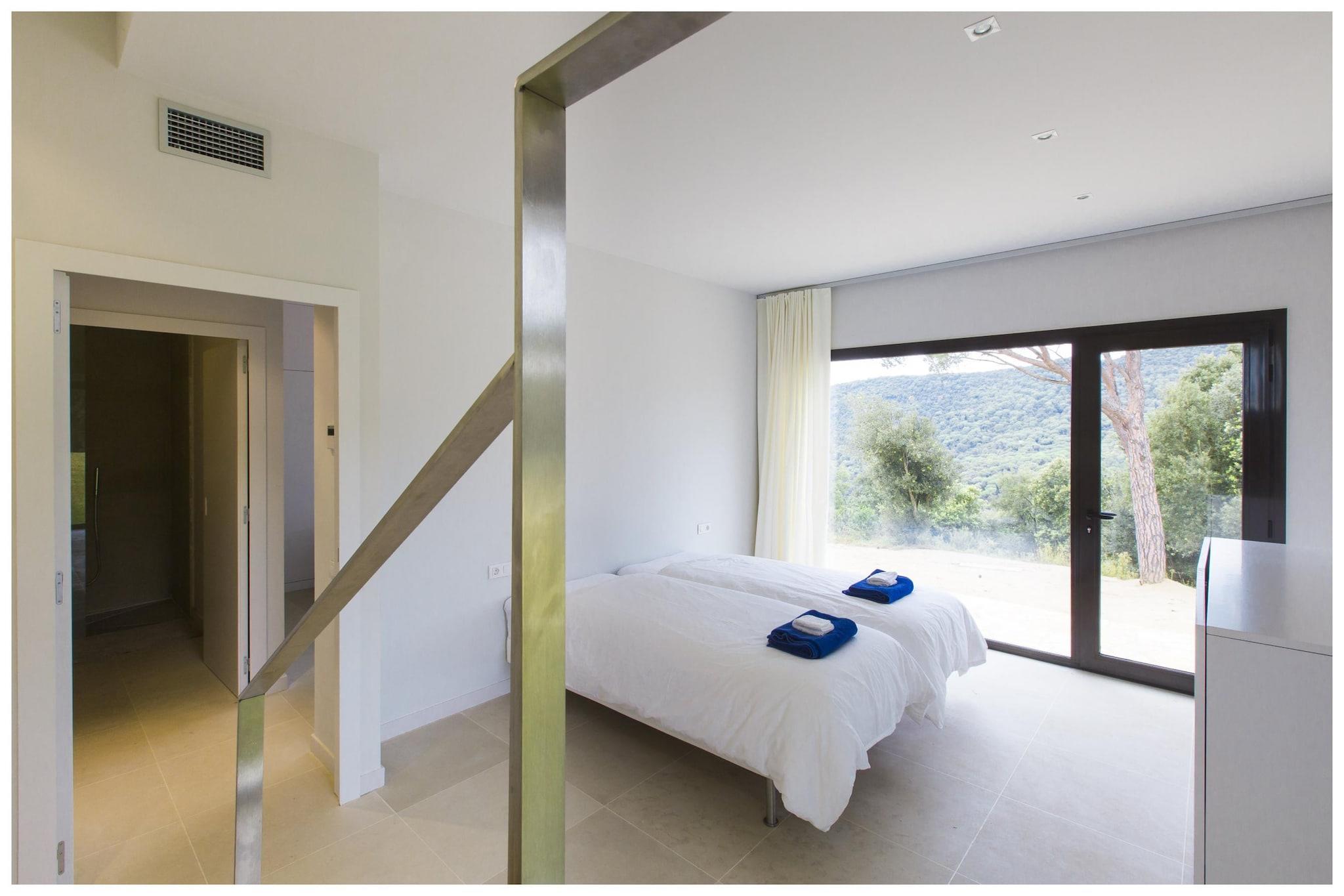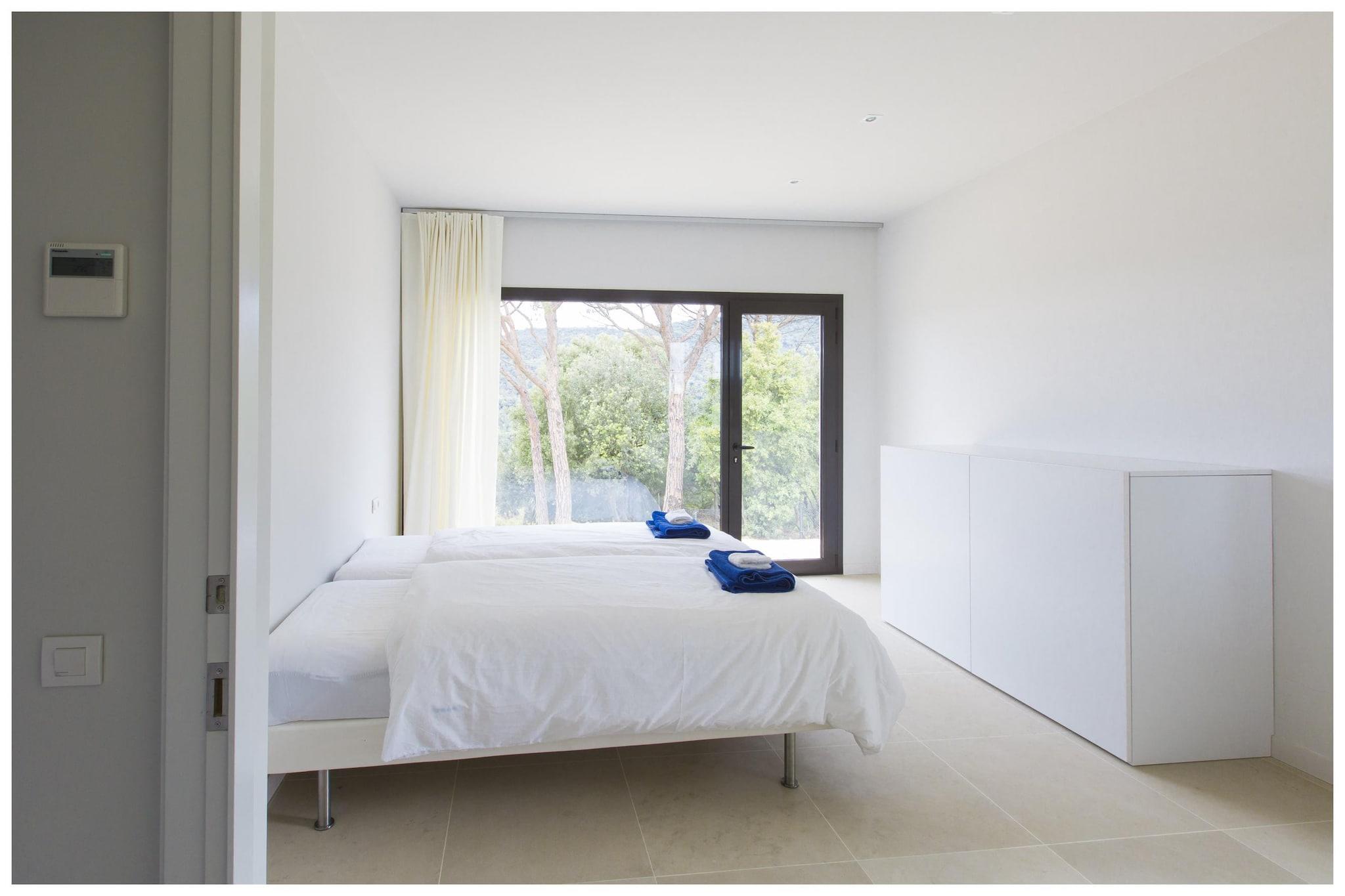 Denne fantastiske ferievilla i Sant Andreu de Llavaneres tilbyder et rummeligt og luksuriøst tilflugtssted for op til 10 gæster. Med fire soveværelser, hver med eget badeværelse og fleksible sovearrangementer (dobbelt- eller enkeltsenge), sikrer det privatliv og komfort for alle. Stueetagen i åbent plan indeholder et moderne køkken med høje hvidevarer, en spiseplads og en hyggelig stue med satellit-tv, dvd-afspiller og stereoanlæg, der åbner til en privat have med udendørsmøbler og grill. Nyd den smukke 14 x 3 m private swimmingpool omgivet af haverum og en terrasse, perfekt til solbadning og afslapning. Yderligere bekvemmeligheder omfatter aircondition overalt, en garage og parkering. Villaen er bekvemt beliggende kun 3 km fra Playa Llavaneras-stranden, 1,5 km fra byens centrum og tæt på naturparker, golfbaner og ridefaciliteter, der tilbyder både ro og nem adgang til lokale faciliteter. Uanset om du nyder fredelige stunder i haven eller udforsker nærliggende Barcelona kystattraktioner, giver denne villa en perfekt blanding af komfort, luksus og beliggenhed for en uforglemmelig ferie.