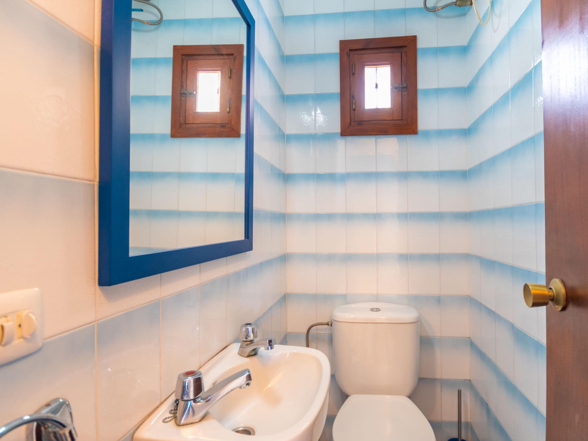 House "Can Fulgencio II". 2.4 km from the centre of Sant Carles, 3 km from the centre of Es Canar, 6 km from the centre of Sta. Eulària del Riu, 2.8 km from the sea. Private: property 75 ha, garden 125 m2 with wildlife garden and trees, swimming pool (4 x 8 m, seasonal availability: 15.Apr. - 30.Oct.). Outdoor shower. Motor access to the house (300 m via unmade road). Grocery 2.4 km, restaurant 2.4 km, bus stop 900 m, sandy beach 2.8 km, outdoor swimming pool 3 km. Tennis 500 m. Nearby attractions: Cala Nova 2.8 km.