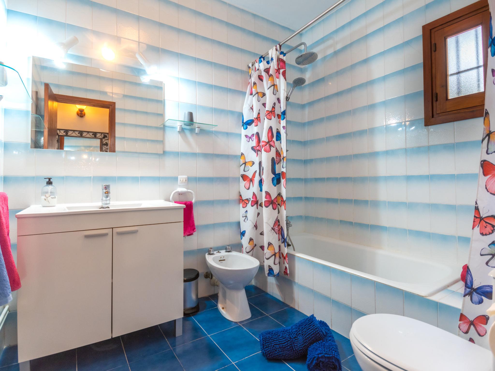 4-room house 112 m2. Simple furnishings: living/dining room 24 m2 with open-hearth fireplace, satellite TV, digital TV, air conditioning and forced-air heating. 1 room with panoramic window with 2 beds, air conditioning and forced-air heating. 1 room with panoramic window with 1 french bed, air conditioning and forced-air heating. 1 room with panoramic window with 1 bed, air conditioning and forced-air heating. Open kitchen (oven, toaster, kettle, freezer). Bath/bidet/WC, sep. WC. Heating. Terrace 21 m2, roofed terrace 100 m2. Terrace furniture, barbecue, deck chairs (6). Distant view of the sea. Facilities: washing machine, safe. Parking, garage. Water boiler with a 50 lt capacity. Cot is 6 euros per day. Bed 9 euros per day. ETV1062E
