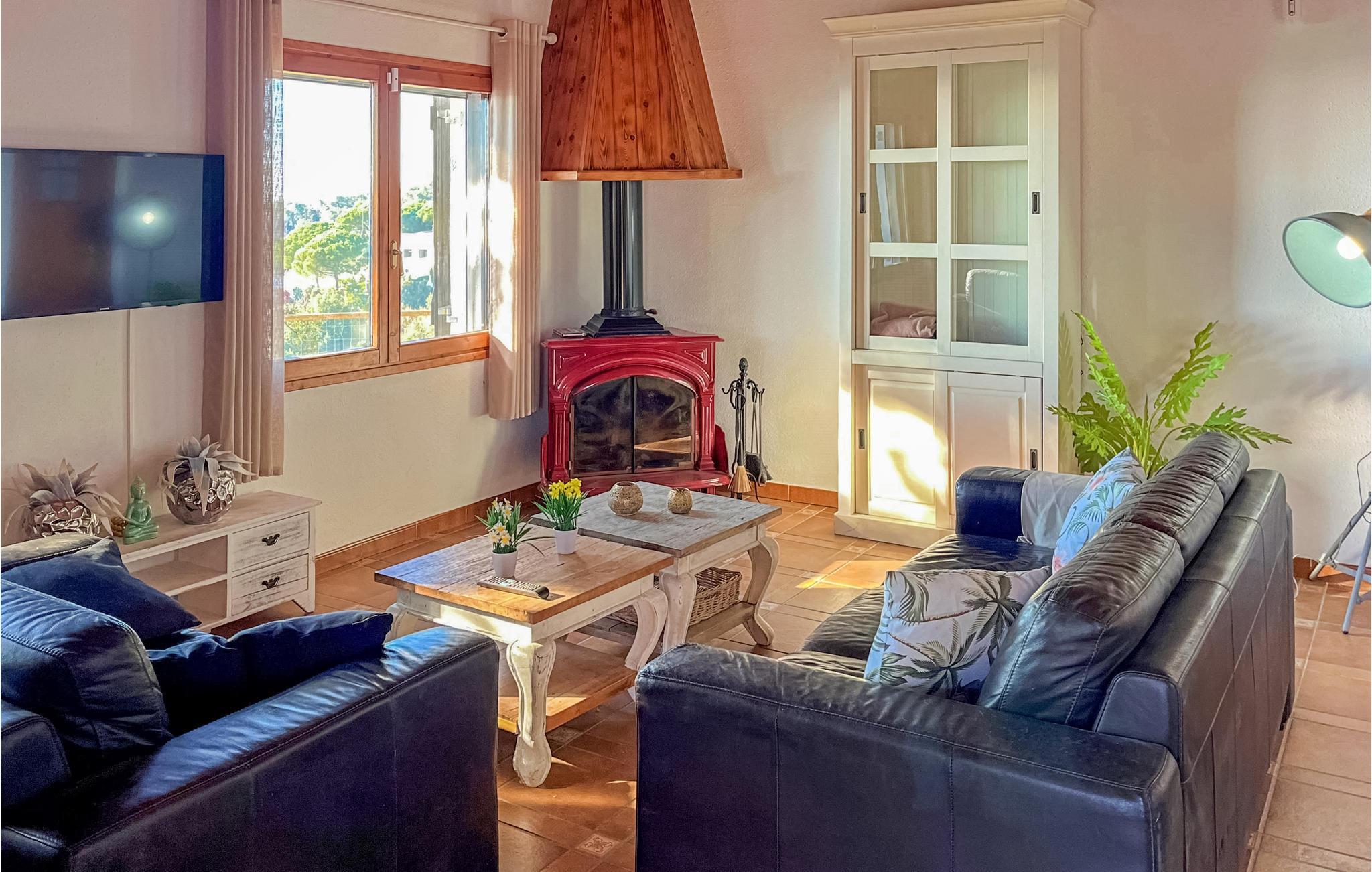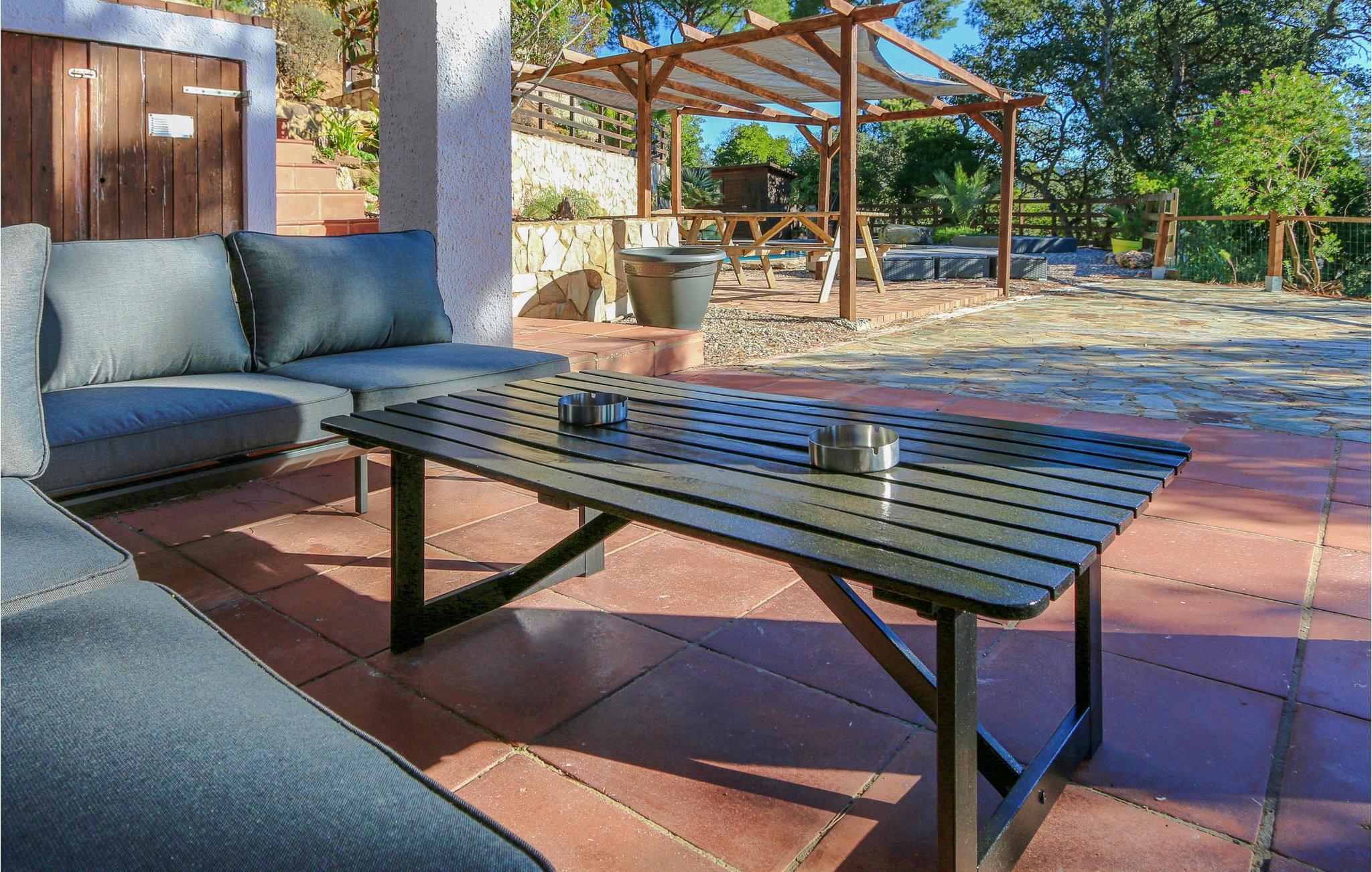 Omgivet af den vidunderlige natur i kystens bagland, lidt uden for Sant Cebrià de Vallalta, tilbyder dette dejlige catalanske hus en base med ro og fred til jeres ferie. Indenfor byder den rummelige feriebolig på en varm rustik atmosfære og smagfuld indretning. Her er plads til den lidt større gruppe, og I finder alletiders køkken til fælles madlavning. Nyd den storslåede udsigt over landskabet, så snart I vågner, og slap af i de indbydende sofaer under de hyggelige loftsbjælker efter en dejlig feriedag. Mærk roen genfinde sig i kroppen i poolens forfriskende vand, spis lækker mad fra den murede grill på terrassen og nyd stemningsfulde aftener med et glas vin i loungekrogen.