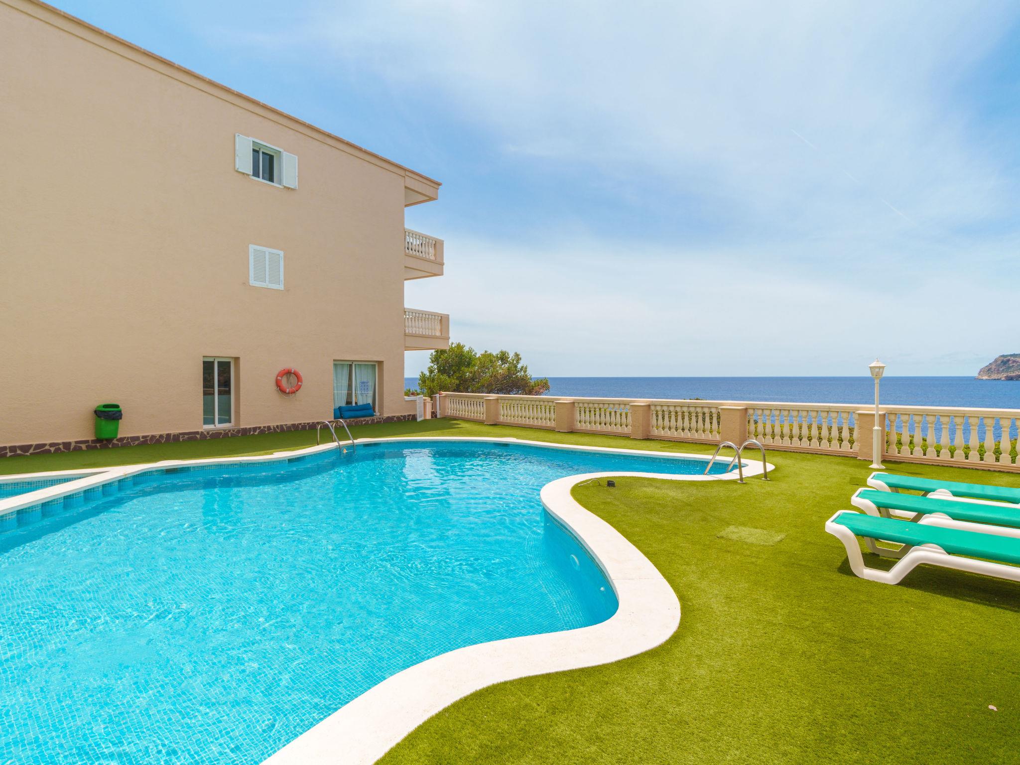 Sant Elm 10 km from Andratx: Beautiful, simple resort "Amores 7". 24 houses in the residence. In the resort 1 km from the centre of San Telmo, on the outskirts, 11 km from the centre of Andratx, 37 km from the centre of Palma, in a sunny position, 100 m from the edge of the forest, 15 m from the sea, direct access to the beach, south-west facing position. For shared use: swimming pool (70 m2, depth 90 - 150 cm, seasonal availability: 15.Mar. - 15.Nov.). Children's pool, outdoor shower, pool maintenance by the owner/gardener. In the complex: bar, WiFi. Parking at the house space n 7. Shop 1 km, grocery 1 km, supermarket 1 km, shopping centre 10 km, restaurant, bar 500 m, bakery 1 km, bus stop 1 km, sandy beach "Playa des Geperut" 1.1 km, rocky beach "Cala s'Algar" 300 m. Sports harbour 10 km, marina 10 km, golf course (18 hole) 30 km, surf school 10 km, sailing school 10 km, tennis 28 km, riding stable 14 km, walking paths from the house 8 km, cycle lane 2 km. Nearby attractions: Galatzó 30 km, Valldemossa 50 km, Sa Dragonera 1 km. Hiking paths: La Trapa 5 km. Please note: car recommended. The owner does not accept any youth groups. Motorway 15 km from the property.