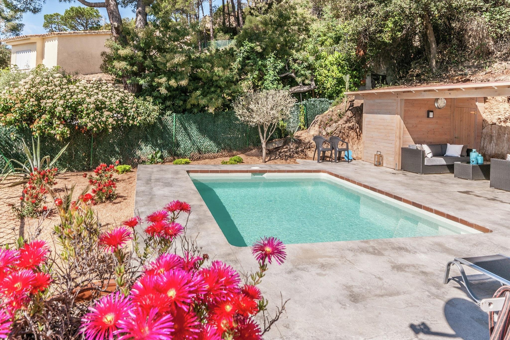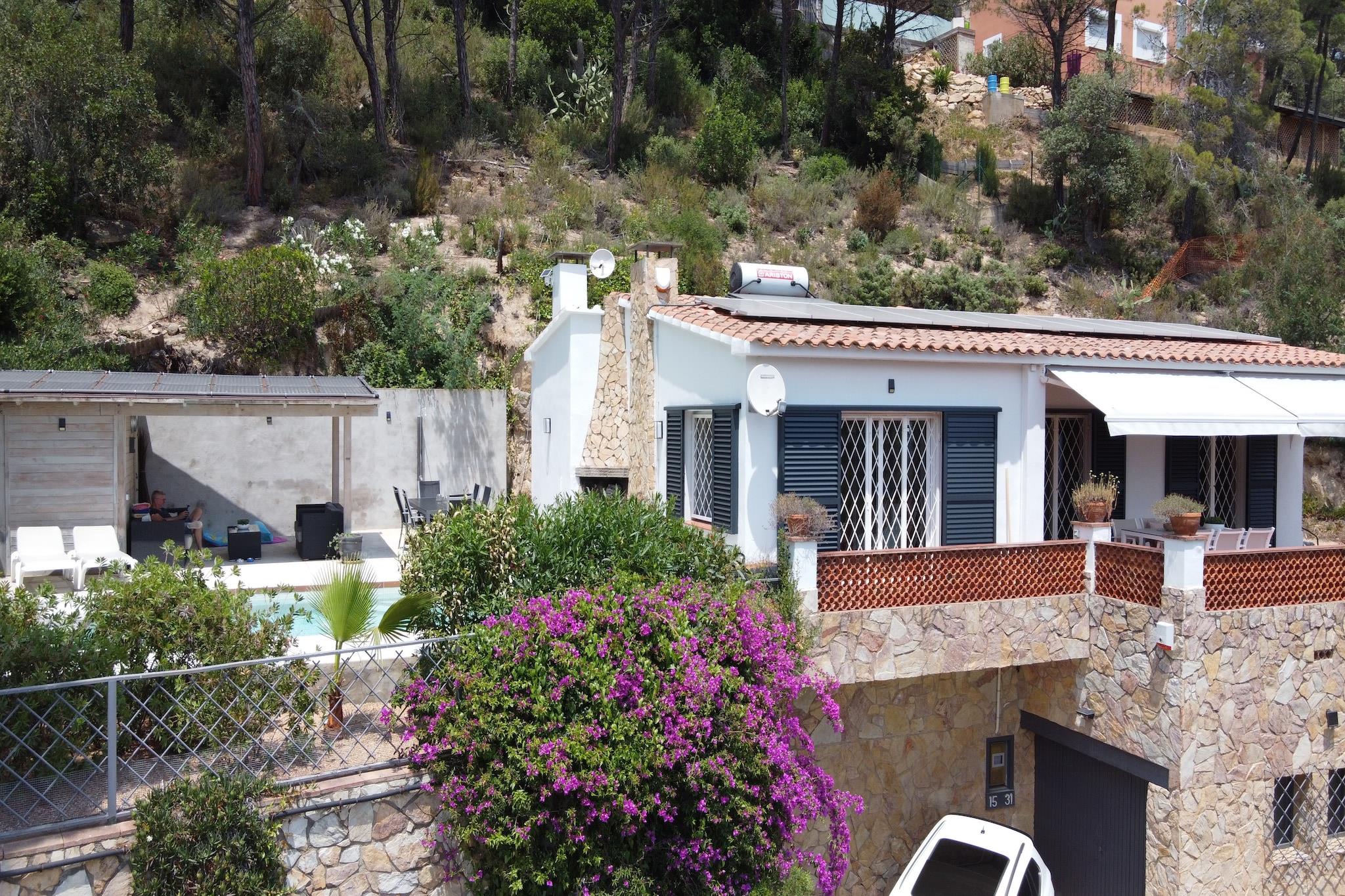 Denne indbydende villa i Sant Feliu de Guíxols tilbyder 3 soveværelser og plads til op til 6 gæster, hvilket gør den ideel til familier eller små grupper. Beliggende på en blid bjergskråning, har et-etagers hjem en privat opvarmet swimmingpool, liggestole og en have med møbler til 6. Indvendigt er den lyse stue udstyret med aircondition, mens soveværelserne har komfortable enkeltsenge og elvarme. Villaens fuldt udstyrede køkken inkluderer moderne apparater til at tilberede måltider til din gruppe, og en grill på terrassen sikrer mindeværdige udendørs middage. Træd udenfor for at nyde den private have, terrasse og opvarmede pool, eller gør brug af villaens solbruser og udendørs bruser. Kæledyr er velkomne, og de nærliggende vandrestier gør det nemt at udforske med din lodne ven. Villaen tilbyder også en privat tennisbane til aktive dage, sammen med havemøbler og parasoller til at slappe af under middelhavssolen. Børn vil nyde de sikre udendørs områder, og voksne kan slappe af med en bog eller en forfriskende dukkert i poolen. Villaen ligger kun 2,3 km fra stranden og 2 km fra supermarkeder og restauranter, hvilket giver dig det bedste fra Costa Brava-køkkenet og lokale smagsoplevelser inden for rækkevidde. Til dagsture er Girona, Figueres og Barcelona tilgængelige inden for en kort køretur. Girona - Costa Brava Lufthavn ligger 32 km væk, hvilket gør dette til et let tilgængeligt feriested.