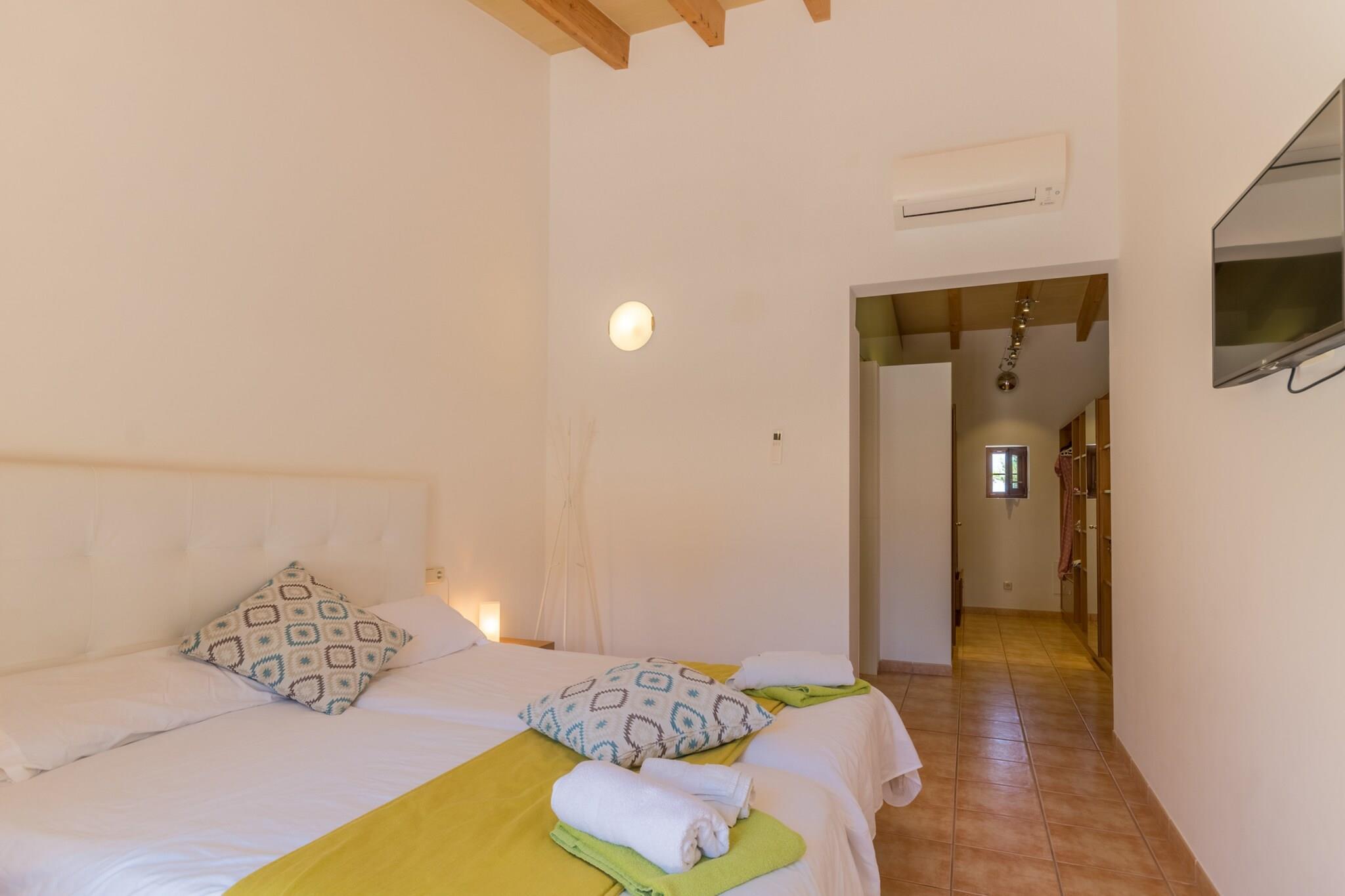 Beliggende i den rolige landsby Vista Sa Tanca i Sant Joan, tilbyder denne charmerende villa den perfekte flugt til det autentiske mallorcanske liv. Ejendommen kan prale af 6 komfortable dobbeltværelser, hver med et moderne en-suite badeværelse, hvilket sikrer maksimal privatliv og komfort for alle gæster. Med faciliteter som aircondition, varme, satellit-tv og gratis trådløs internetadgang giver villaen et indbydende og afslappende miljø under hele dit ophold. Udenfor er højdepunktet den spektakulære infinity-pool på den øverste terrasse, der tilbyder en betagende udsigt over det omkringliggende landskab. Beliggende kun 20 minutter fra den travle by Manacor, giver denne villa dig mulighed for at udforske Mallorcas rige historie og kultur. For dem, der søger øens fantastiske strande, er Son Serra de Marina og Porto Cristo inden for en kort køretur, der tilbyder krystalklart vand perfekt til en forfriskende svømmetur. Villaens strategiske beliggenhed giver nem adgang til øens bedste steder, mens den stadig tilbyder freden og roen i et afsondret tilflugtssted. Villaen er designet til afslapning og underholdning, og byder på en velholdt have omgivet af fyrretræer og farverige blomster. Udekøkkenet og grillpladsen er perfekte til at tilberede lækre måltider, mens bordtennisbordet sikrer, at der er sjov for alle aldre. Indvendigt giver det fuldt udstyrede køkken alt hvad du behøver for at skabe mindeværdige retter, hvilket gør det ideelt til familiesammenkomster eller grupperejser. Med sine fredfyldte omgivelser og moderne bekvemmeligheder er denne villa et sandt tilflugtssted for dem, der søger en blanding af afslapning, eventyr og lokal charme. Lejelicensnummeret er ETV/3832