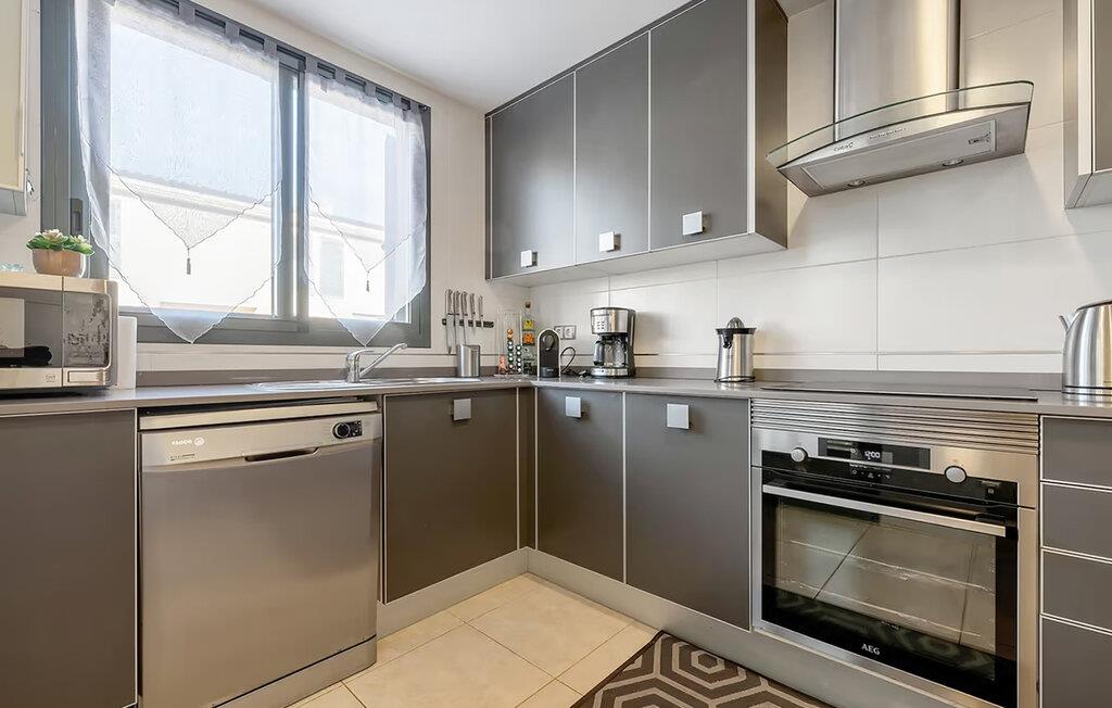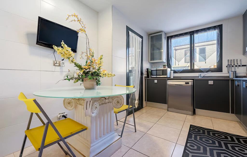 Træd ind i det lyse, stilfuldt møblerede interiør og føl jer straks hjemme. Brug den åbne stue og spisestue til at tilbringe tid sammen og slap af på den behagelige sofa. Nyd det naturlige lys, der strømmer ind gennem de store vinduer, og Begynd dagene i en fredelig atmosfære eller afslut den med en hyggelig filmaften. Spis morgenmad ved det separate bord i det moderne køkken eller nyd jeres måltider ved det elegante spisebord.