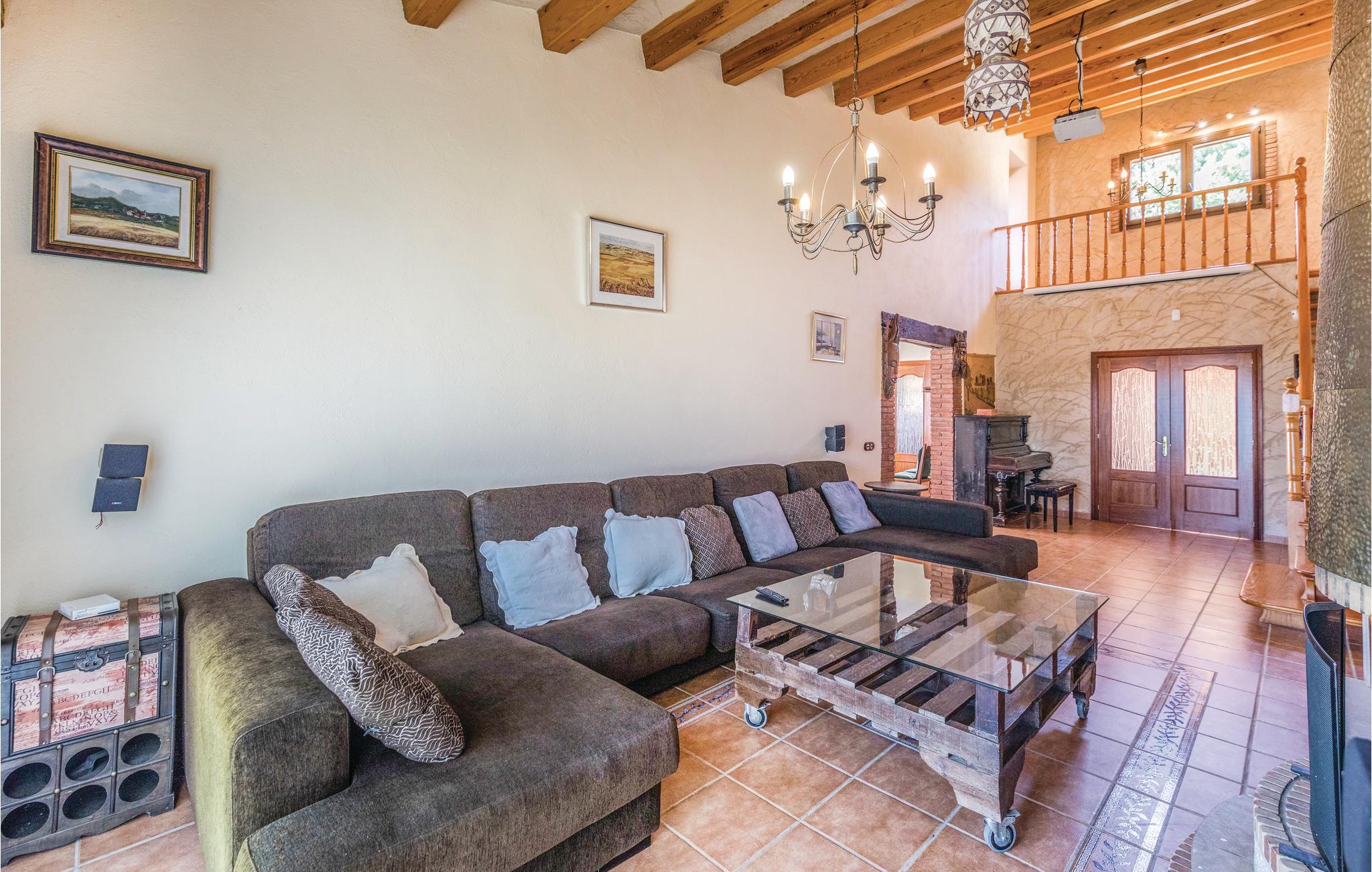 Husets 240 m² giver plads til otte gæster fordelt på fire komfortable soveværelser. Det rummelige indre med høje lofter og frilagte bjælker minder om regionens gamle catalanske bondehuse. Den rustikke stue er smagfuldt og hyggeligt indrettet med kamin og gammelt klaver, det begge er ren dekoration. Fra flere af de lyse rum er der udgang til den fantastiske terrasse og den drømmeskønne have. I et af badeværelserne er der whirlpool til en afslapning og selvforkælelse.